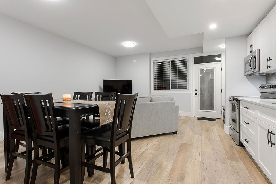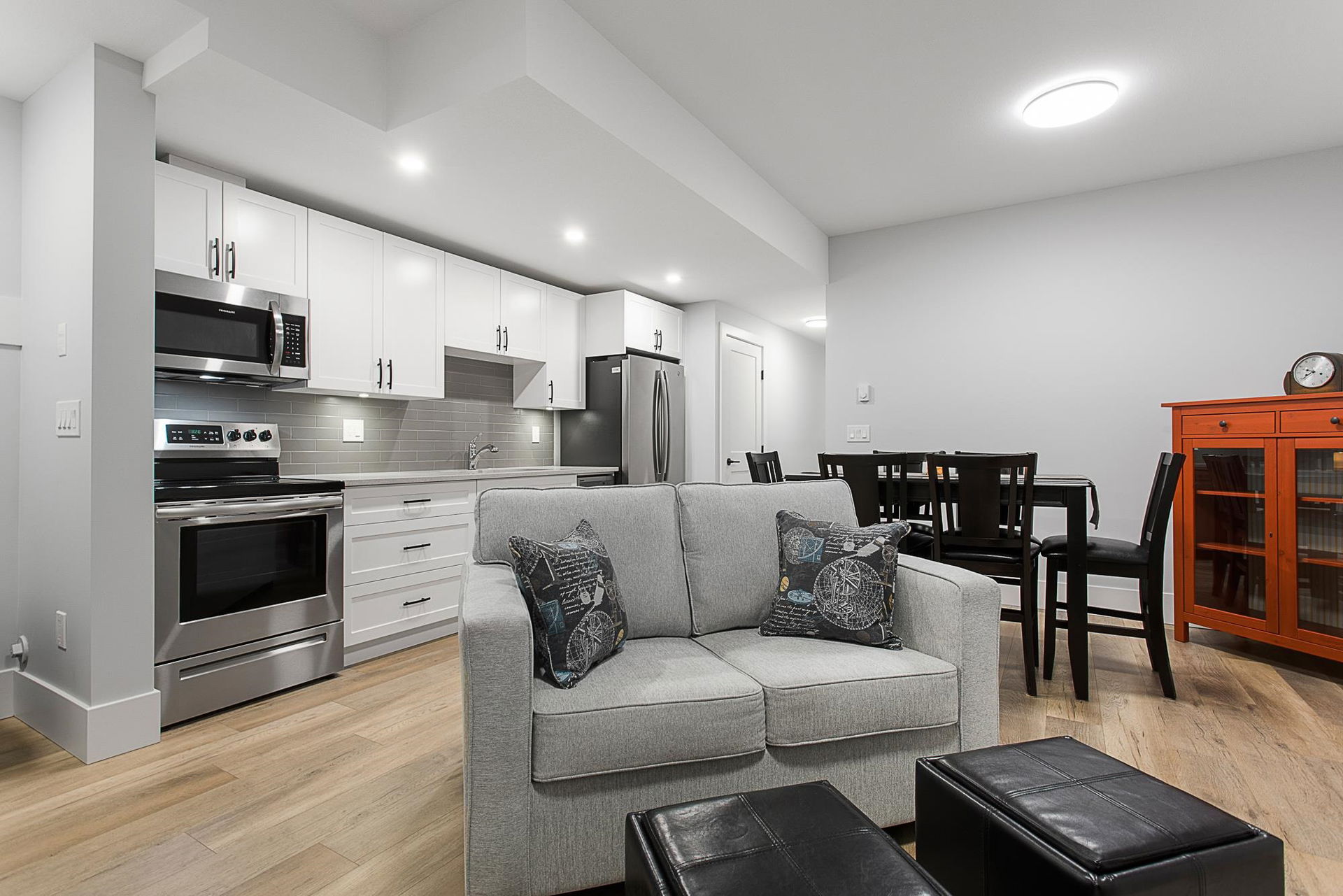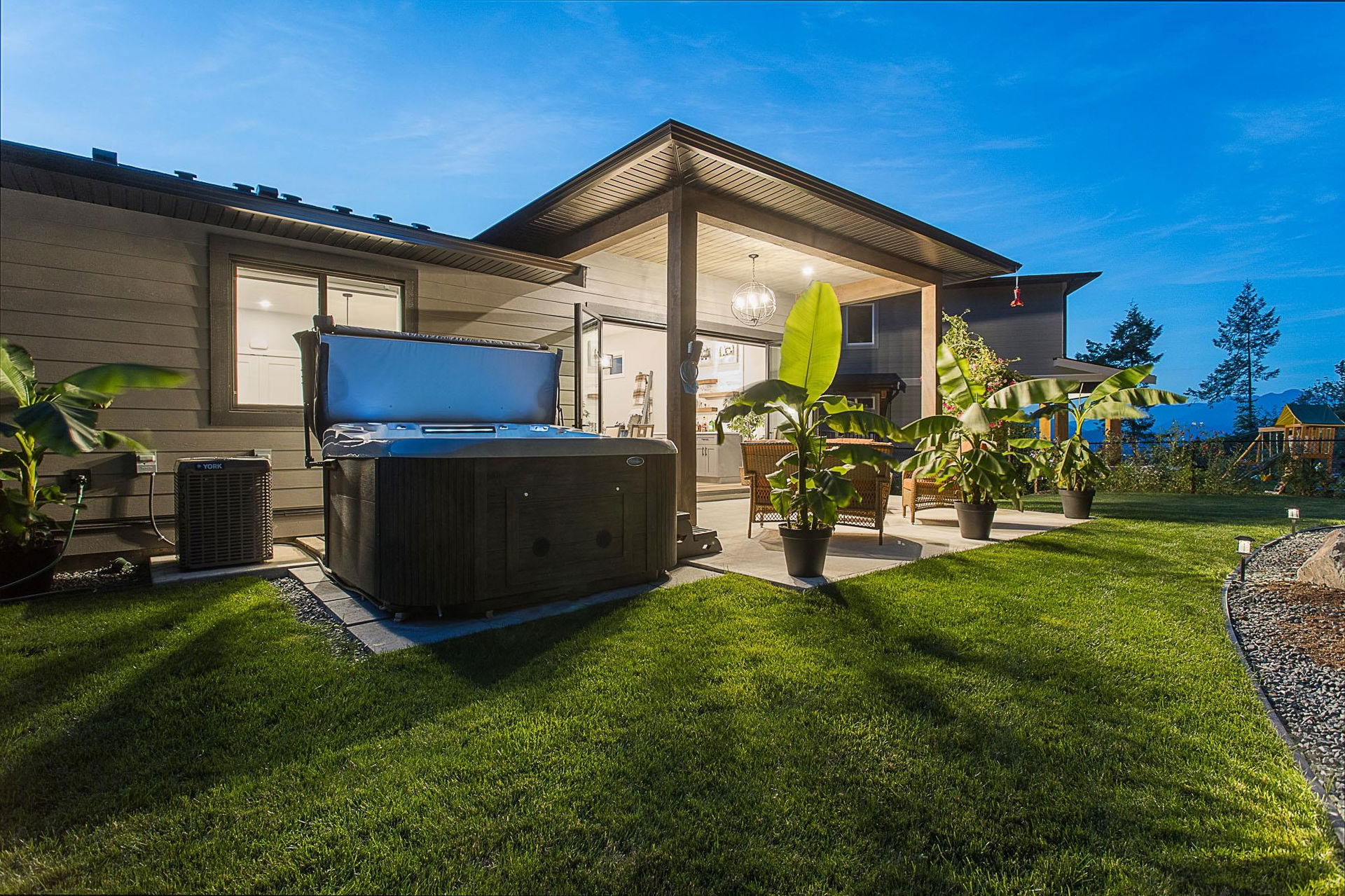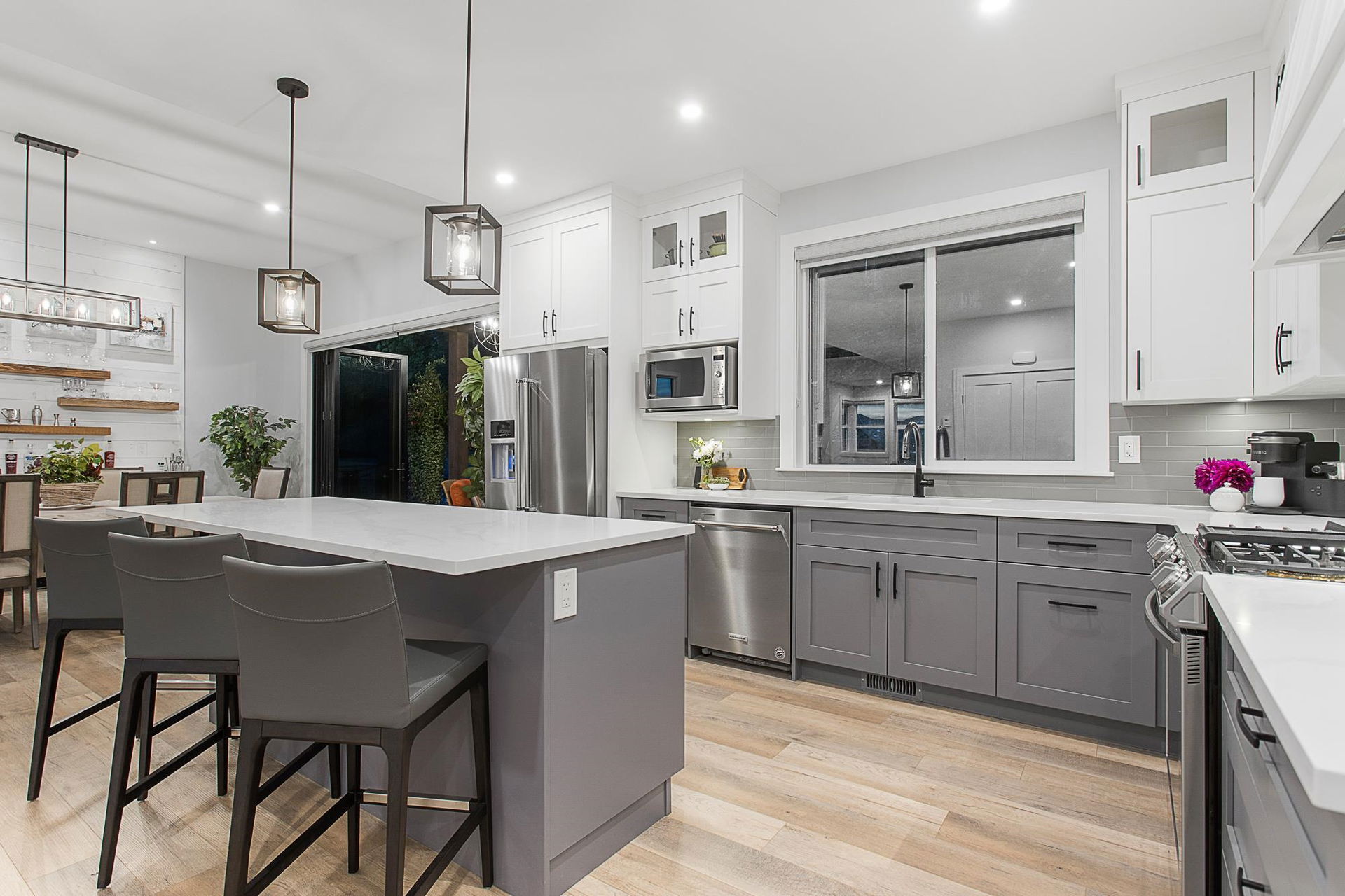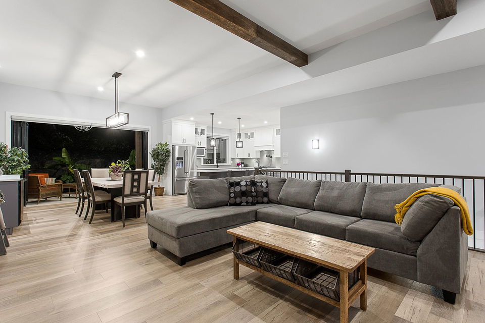 Perched on an INCREDIBLE 16,038 sq ft lot backing GREENSAPCE, this 5 BDRM+ DEN MASTERPIECE w/ LEGAL SUITE awaits! Custom designs+ finishes throughout (over 100k in upgrades!); main floor w/ open concept kitchen feat. KA Pro Series appliances, gas range, pot filler, quartz counters, & b/i wine bar w/ shiplap & display shelving. Open the 12′ folding patio doors to your PRIVATE covered patio w/ cedar soffits, chandelier, electric patio shades, & HOT TUB! Enjoy nature at your doorstep and the tranquility this peaceful setting brings. 3 bdrms on main; master w/ 12′ ceilings, custom w.i. closet & sexy 5 piece ensuite w/ 6′ soaker tub & sep shower. Entry floor w/ den, lrg laundry room, & suite access. Self contained, no expenses spared 2 bdrm & 1 bathroom w/ private patio & sep meter! W.O.W.