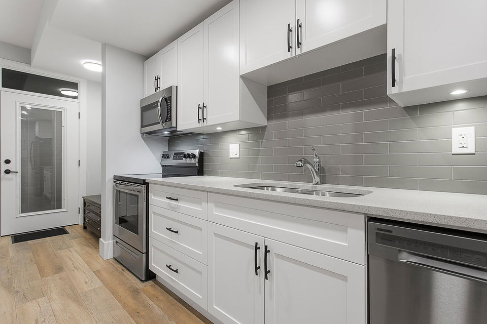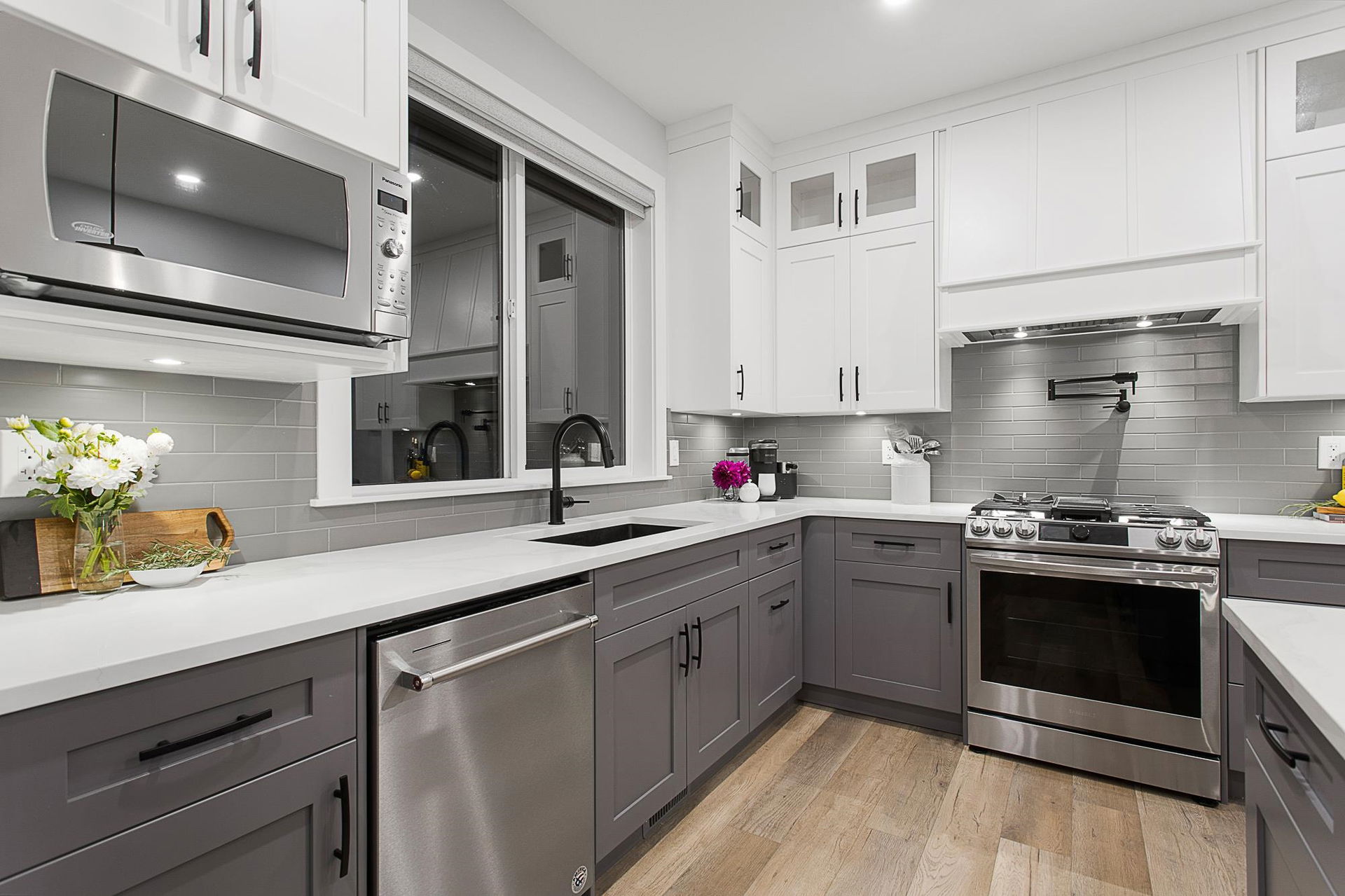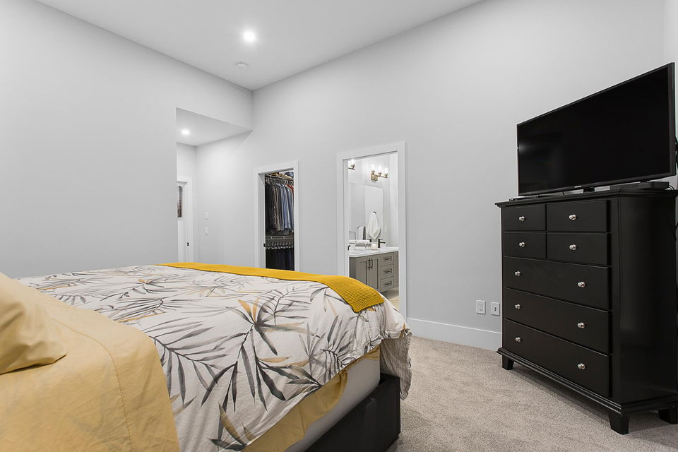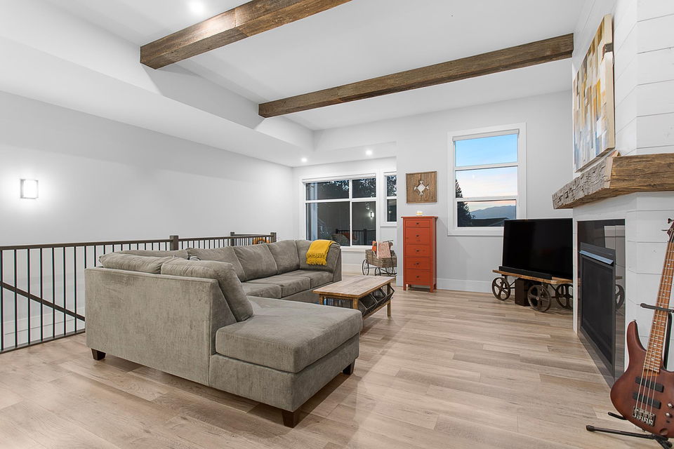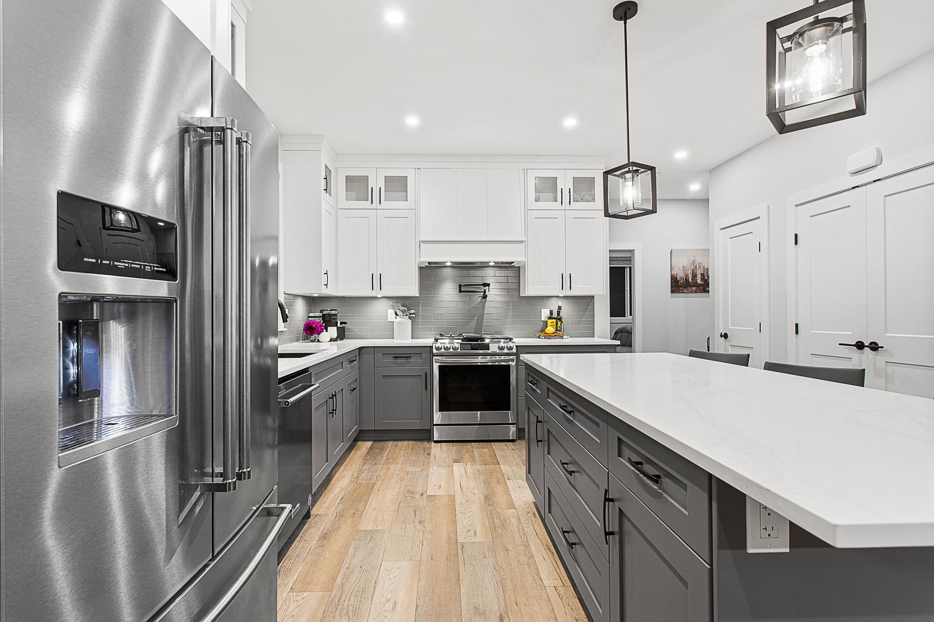 Perched on an INCREDIBLE 16,038 sq ft lot backing GREENSAPCE, this 5 BDRM+ DEN MASTERPIECE w/ LEGAL SUITE awaits! Custom designs+ finishes throughout (over 100k in upgrades!); main floor w/ open concept kitchen feat. KA Pro Series appliances, gas range, pot filler, quartz counters, & b/i wine bar w/ shiplap & display shelving. Open the 12′ folding patio doors to your PRIVATE covered patio w/ cedar soffits, chandelier, electric patio shades, & HOT TUB! Enjoy nature at your doorstep and the tranquility this peaceful setting brings. 3 bdrms on main; master w/ 12′ ceilings, custom w.i. closet & sexy 5 piece ensuite w/ 6′ soaker tub & sep shower. Entry floor w/ den, lrg laundry room, & suite access. Self contained, no expenses spared 2 bdrm & 1 bathroom w/ private patio & sep meter! W.O.W.