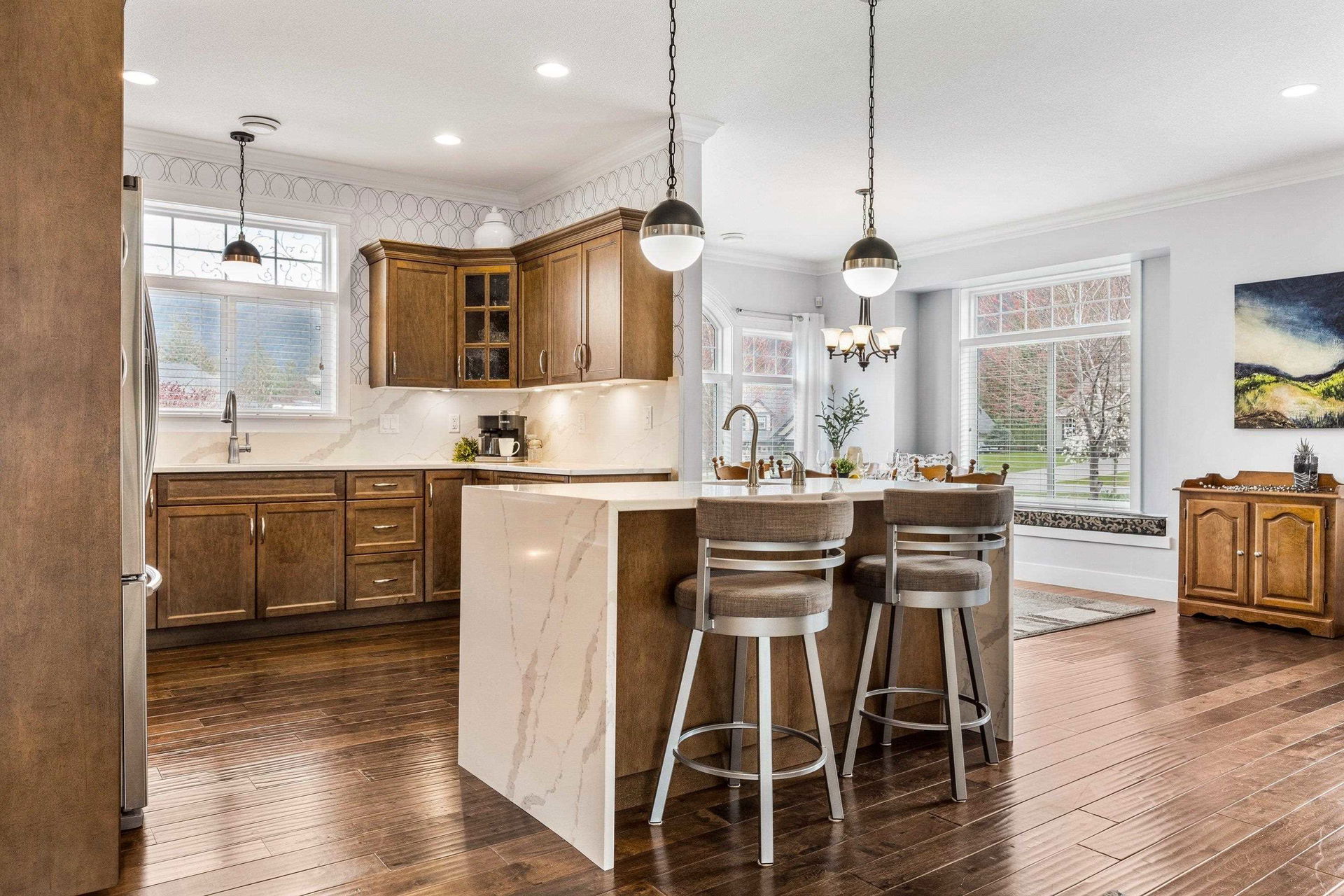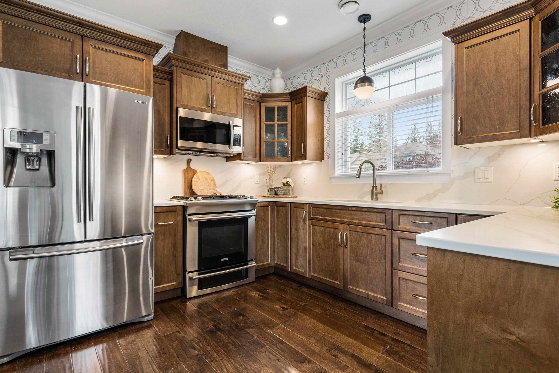 RANCHER w/ WALKOUT BSMT on a 0.58 ACRE VIEW LOT in stunning ROSE GARDEN ESTATES. Ample parking w/ 30×30 upper garage & 30×30 lower garage (SHOP) w/ separate lower driveway for the RV! Fully fenced manicured & irrigated yard w/ privacy hedging & beautiful gardens. AMAZING CUSTOM DESIGN w/ main floor living & RENOVATIONS; updated kitchen w/ dual waterfall island, SS appliances w/ gas range, prep sink, specialty drawers, & OVERSIZED dining area w/ INCREDIBLE MTN VIEWS- the perfect gathering place! Retreat to the living area w/ access to the enclosed solarium & outdoor covered patio. Primary w/ his/her w.i closets, spa ensuite w/ heated tile & jacuzzi tub- you name it! Finished bsmt w/ wet bar, family room, SHOP & YARD ACCESS, covered lower patio, guest room & fabulous CRAFT ROOM! Book TODAY!