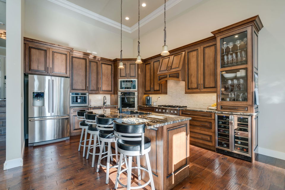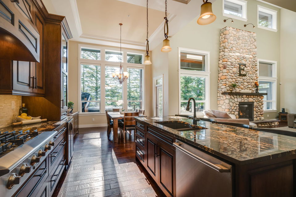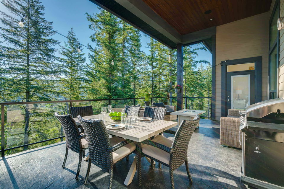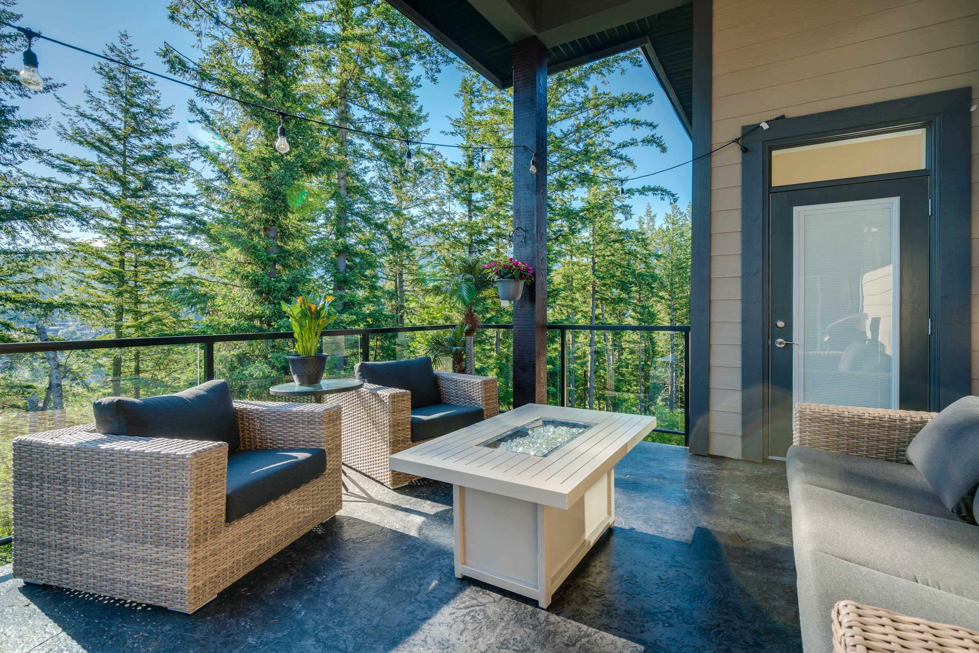 Custom designed 7 bdrm & 6 bath EXECUTIVE home w/ quality craftsmanship nestled on a PRIVATE scenic lot w/ forest & mountain views. Great room w/ 22′ ceilings, a beautiful stone gas fireplace, hardwood flooring, b.i. speakers, glass railings, & floor to ceiling windows to capture nature. Chef’s kitchen w/ 36″ gas range, b.i wine fridge, custom wood cabinets, undercab lights, cappuccino maker, & granite. Stunning MASTER ON THE MAIN w/ custom closets & access to the stamped concrete 38×15 COVERED PATIO w/ gas & hot tub hook ups. A/C. HUGE media room w/ tiered dry bar & 120″ screen w/ 4k projector. More? How about a HUGE 1439 sq ft 3 bdrm & 2 bath IN-LAW SUITE w/ 12′ ceilings, sep entry + alarm + private yard ($2100/month rental appraisal)! Extensive landscaping incl art. turf & koi pond. WOW