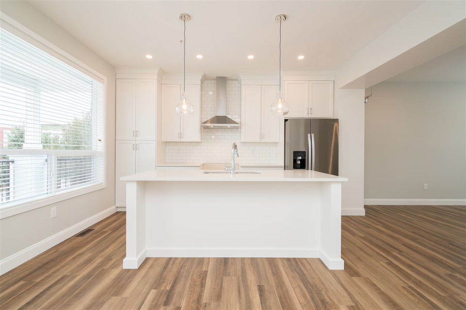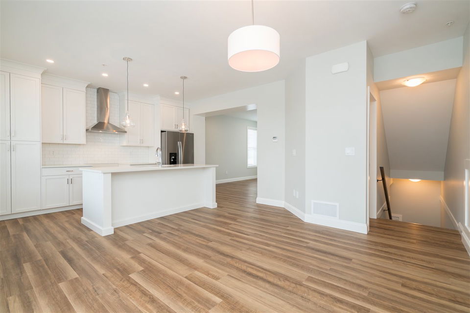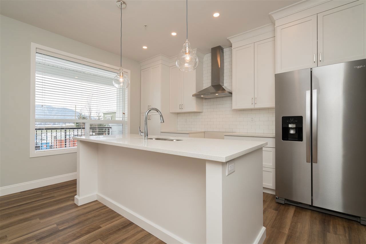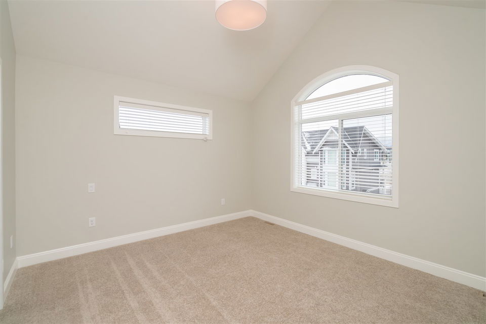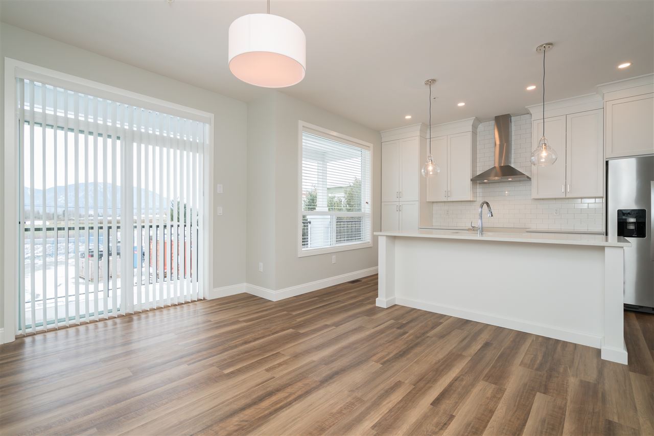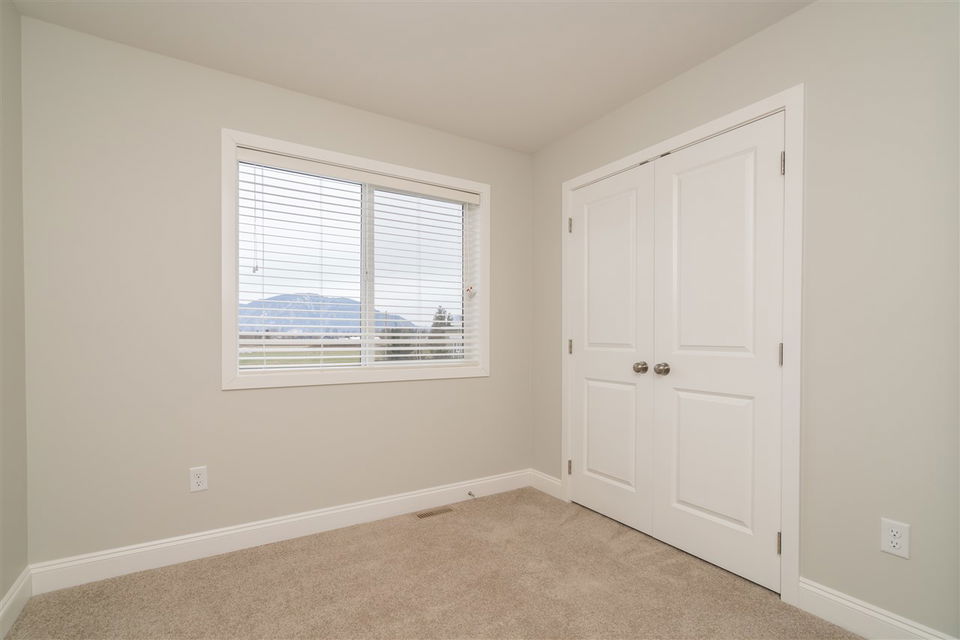 Gorgeous WEST FACING END UNIT w/ large covered patio- enjoy those sunsets all year round! Brand new in 2018, this NON-STRATA 3 bedroom & 3 bathroom home is located steps from the Vedder River Trail, Webster Park, Unsworth Elementary, & the UFV campus! Main floor features a modern open concept kitchen w/ stainless steel appliances incl. a gas range! Stylish white shaker cabinets & quartz counters. Living room w/ electric fireplace & built in bookshelves. 3 bedrooms up, master w/ vaulted ceilings & ensuite w/ dual vanities, glass walk in shower, & heated tile floors. Main entry level w/ heated tile floors and den! DOUBLE CAR GARAGE & full driveway- no more parking issues! Price is + GST but owner occupiers don’t pay PTT!