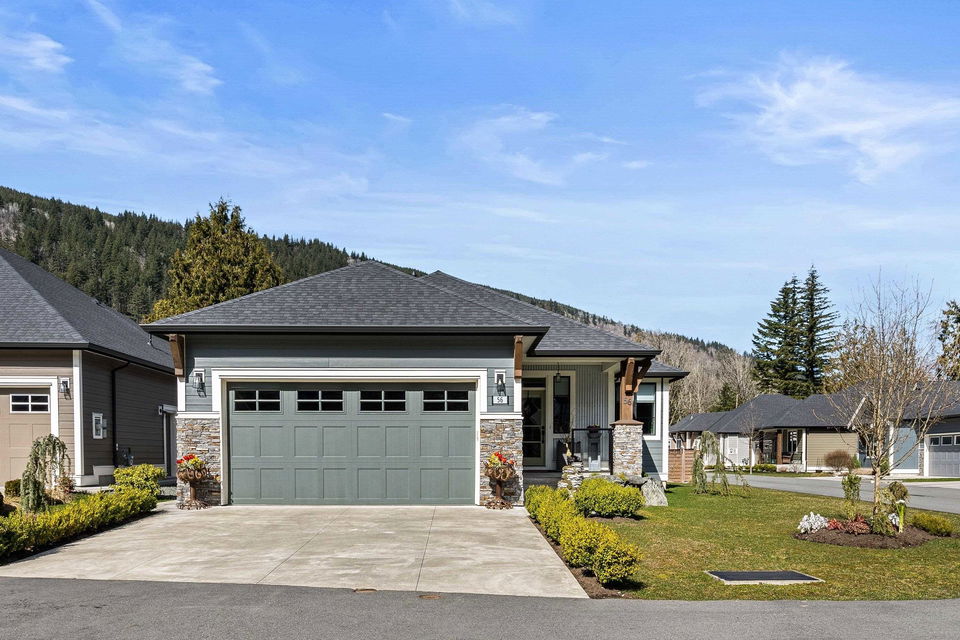 STUNNING 1600sq ft RANCHER on a pristine BRIGHT CORNER LOT at popular Aquadel Crossing in Cultus Lake. Designed by award winning GATEHOUSE DEVELOPMENTS, this 2 bdrm & office home is IMMACULATE & sits on an easy access 5′ crawl space for added storage. Enter to a spacious welcoming foyer & adjacent open office w/ elegant feature wall & incredible mountain views. The 9′ ceilings open to 14′ in the grand living room w/ ample windows, gas fireplace, & access to the large covered patio in the FENCED BACKYARD. Entertain in the exquisite kitchen feat QUARTZ counters, upgraded SS appliances incl GAS RANGE, custom tile backsplash, & pantry. MASSIVE primary suite w/ beautiful ensuite, oversized closet w/ custom shelving, & automatic blinds w/ california shutters. A/C, b.i vac- this house is PERFECT!