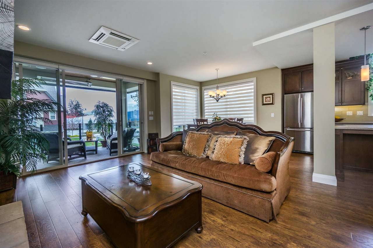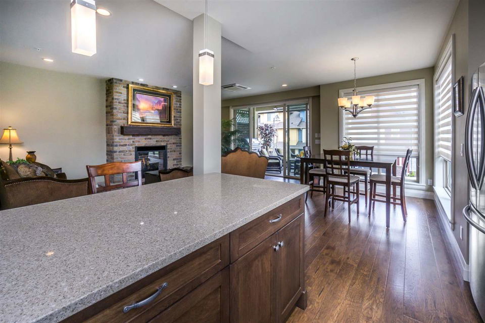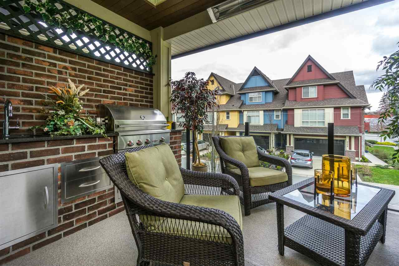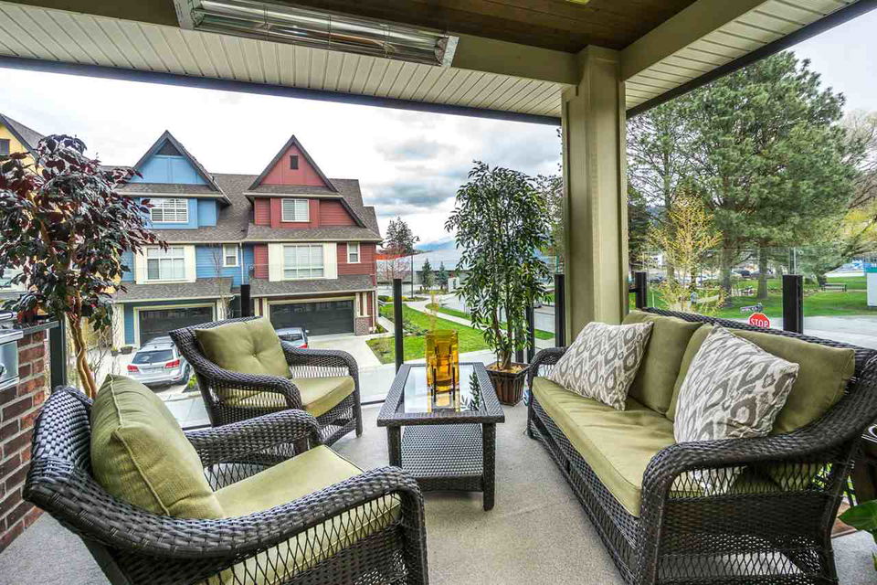 AMAZING LOCATION@ The BROWNSTONES in award winning Garrison Crossing! This prime END UNIT non-strata rowhome is located in a BRIGHT southwest facing location w/ gorgeous mtn views & a a RARE fully fenced manicured yard. Main floor living w/ an open concept kitchen w/quartz counters & SS appliances, master bdrm w/ dual closets and ensuite w/ heated tile. Covered patio w/ b.i. outdoor kitchen (BBQ, sink, & storage!) for year round enjoyment. Upper floor w/ 2 bdrms, laundry, loft entertainment space, & full bath. Built in home audio, efficient heat pump A/C/heating, b.i. vac, & designer window coverings. Inspired by the authentic 1830’s Brownstones of Manhattan, this is unparalleled style you’ll fall in love with! Steps to Garrison Village, the Rotary Trail, Cheam Leisure Center, & UFV.
