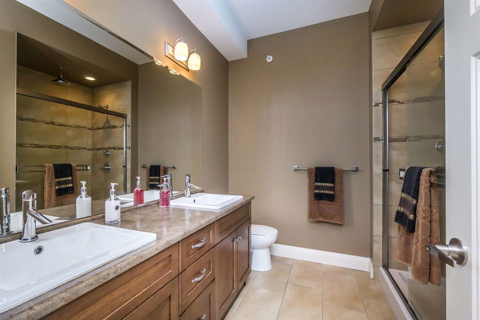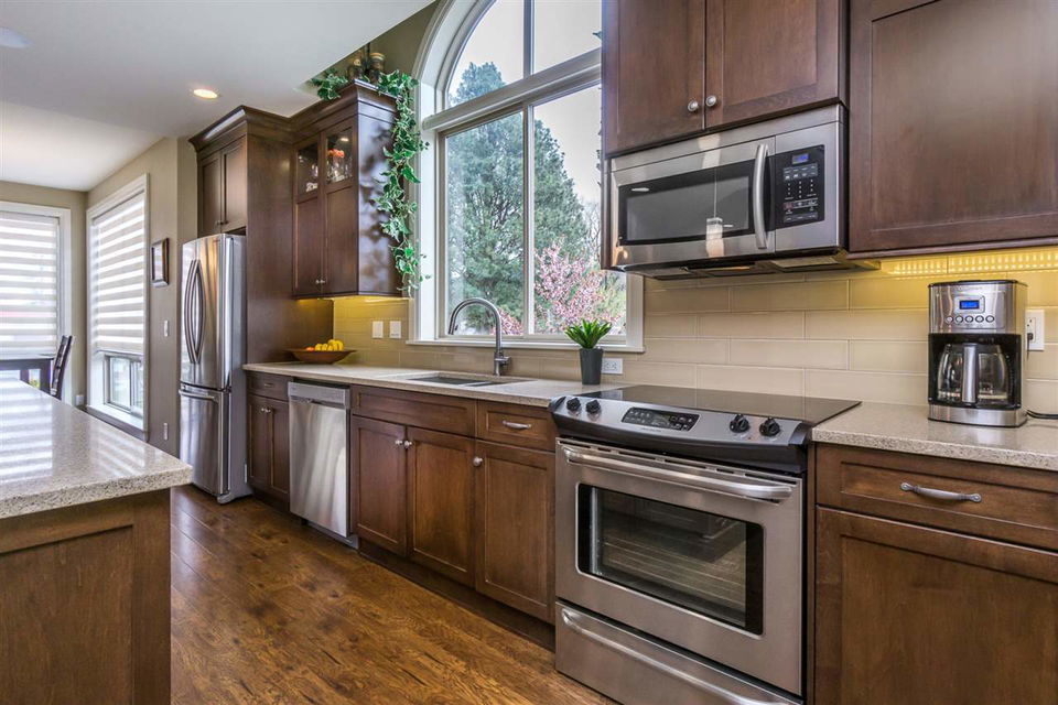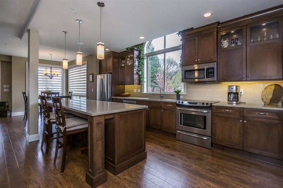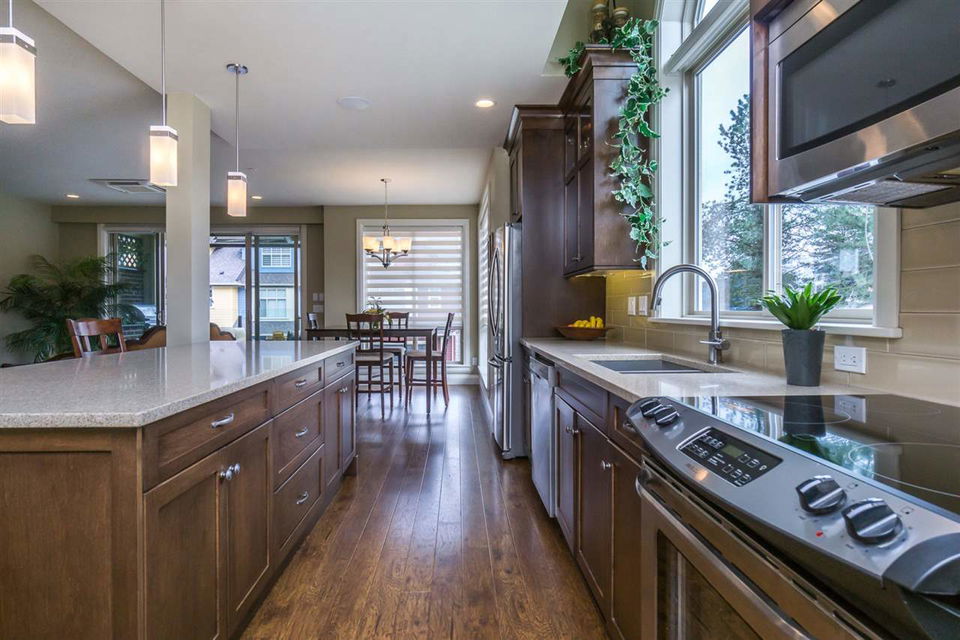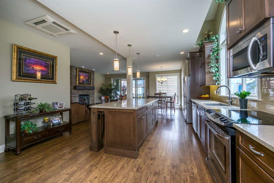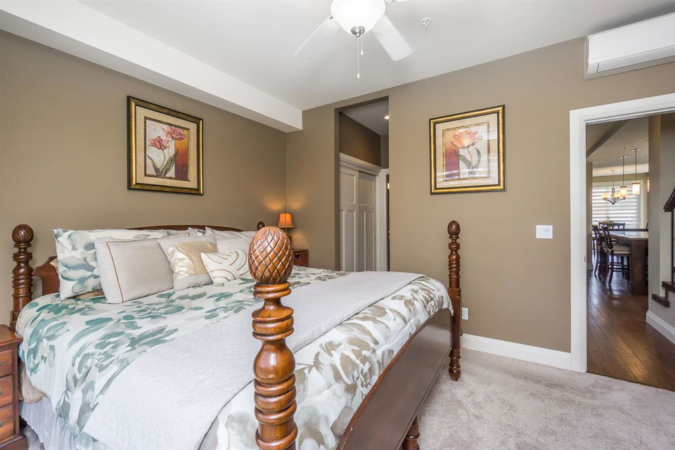 AMAZING LOCATION@ The BROWNSTONES in award winning Garrison Crossing! This prime END UNIT non-strata rowhome is located in a BRIGHT southwest facing location w/ gorgeous mtn views & a a RARE fully fenced manicured yard. Main floor living w/ an open concept kitchen w/quartz counters & SS appliances, master bdrm w/ dual closets and ensuite w/ heated tile. Covered patio w/ b.i. outdoor kitchen (BBQ, sink, & storage!) for year round enjoyment. Upper floor w/ 2 bdrms, laundry, loft entertainment space, & full bath. Built in home audio, efficient heat pump A/C/heating, b.i. vac, & designer window coverings. Inspired by the authentic 1830’s Brownstones of Manhattan, this is unparalleled style you’ll fall in love with! Steps to Garrison Village, the Rotary Trail, Cheam Leisure Center, & UFV.