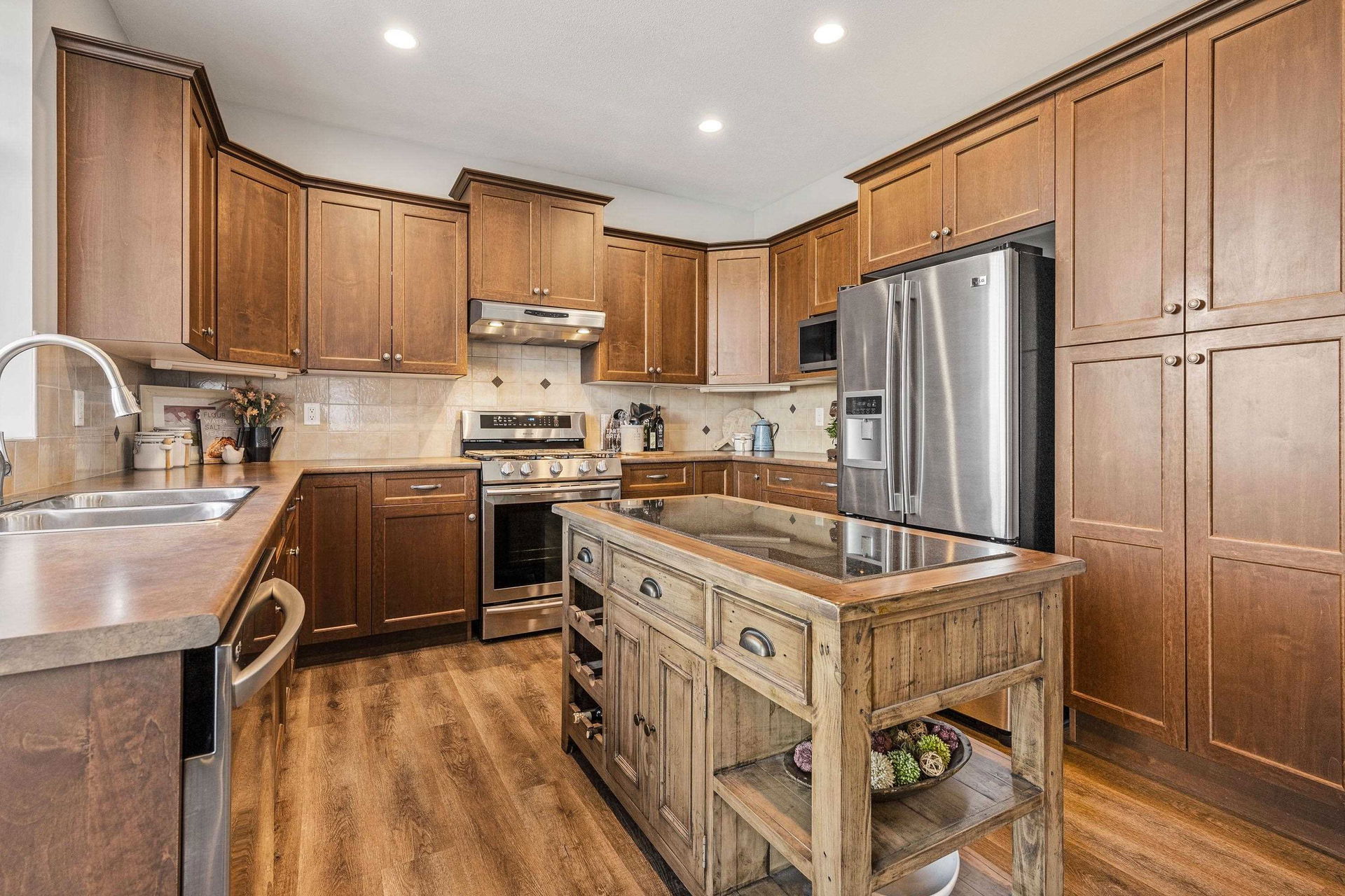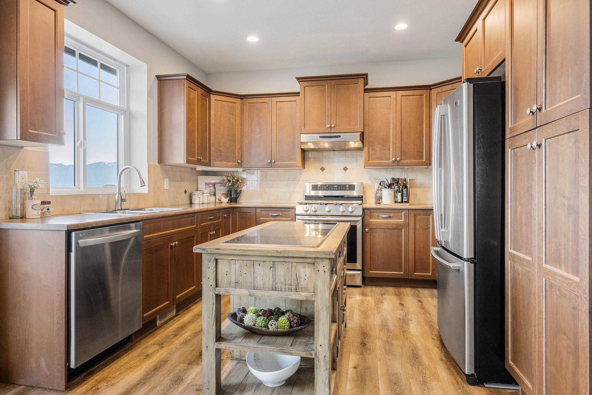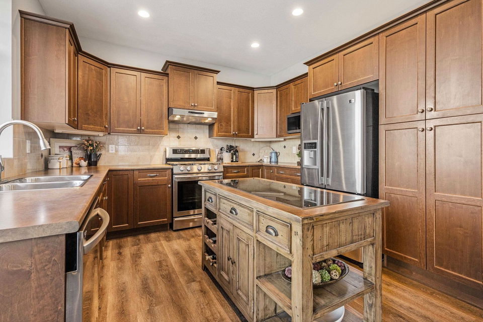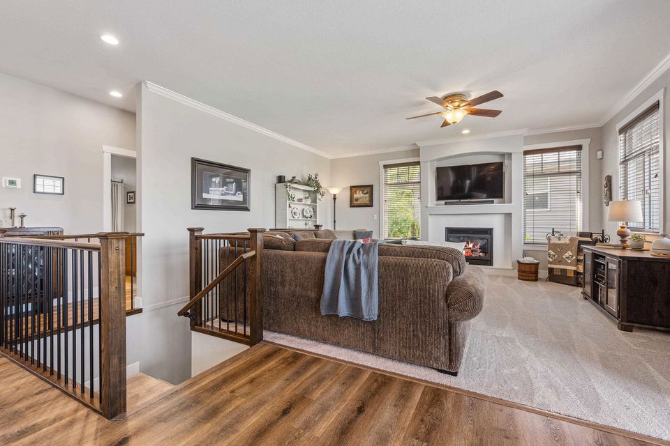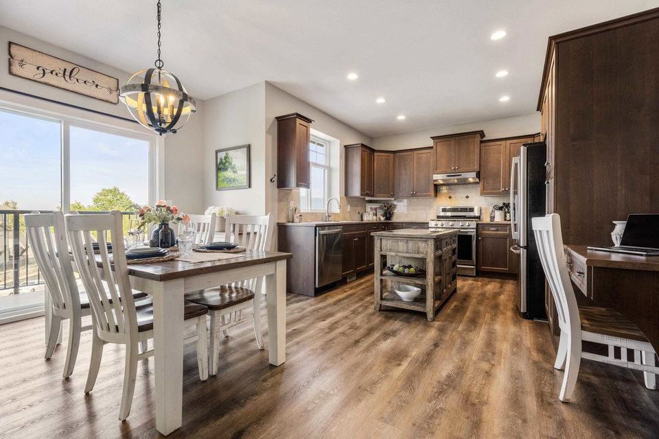 AMAZING FAMILY HOME on a MASSIVE VIEW LOT on a quiet Promontory location! This (easily suitable) basement entry home features 4 bdrms + DEN and is extremely well maintained- TURN KEY READY for summer! The DREAMY manicured and irrigated tiered FENCED backyard is a gardeners dream with gardens, a pond, stamped concrete patios & sidewalk, and a view platform over the whole valley floor! Step inside and enjoy OPEN CONCEPT LIVING w/ a spacious kitchen w/ valley views, access to a front VIEW PATIO, & SS appliances incl gas range. Vinyl plank flooring, A/C (2023), b.i. vac, 2019 HWT, & modern paint (2019). Entry level w/ separate entrance & roughed in wet bar; perfect for the man cave, suite, or rec room. LONG driveway for 4 cars PLUS a double car garage w/ 220 welders plug & ample storage! WOW!