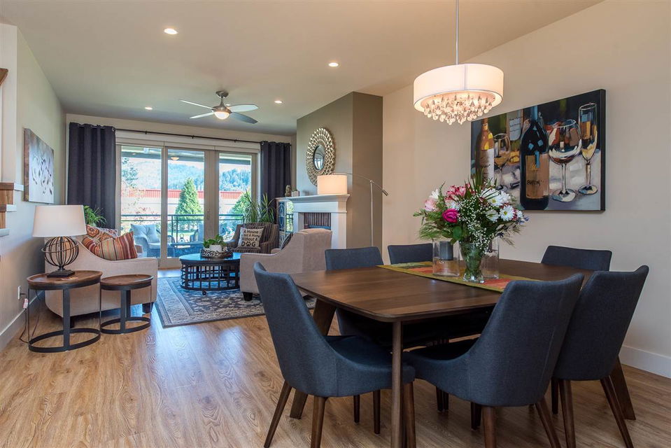 Pristine home backing the Cheam Park@ “The Brownstones” in beautiful Garrison Crossing! Located one block from the award winning Garrison Village (filled with shopping and culinary delights) & only minutes to the Vedder River & UFV- this location cannot be beat! Inspired by the authentic 1930’s Manhattan Brownstones, you’ll fall in love with the brickwork, design, & open concept living this home offers. Gourmet kitchen w/ gas range, quartz, & high end cabinets. Master on main w/ lovely ensuite feat. heated tiles & walk in shower . .!MAZING covered patio w/ built in BBQ & views overlooking the park w/ a backdrop of mountain ranges- what more canone want? How about A/C, b.i speakers, & NO STRATA FEES! Call today as these opportunities don’t last. Experience the Whistler Village of Sardis!