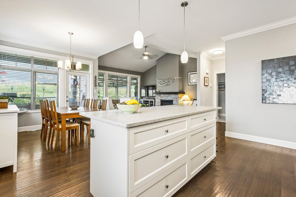 Welcome to one of the BEST locations in the Evergreens at Ensley, a peaceful 45+ gated community! This CHARMING rancher with basement features a private yard and BEAUTIFUL mountain views. The open-concept main level offers a SPACIOUS kitchen with stainless steel appliances, pantry, wine rack, large island with storage and eating bar! The bright living and dining area includes a brick-faced gas fireplace and opens to a covered patio with serene views. The primary bedroom on the main floor boasts a 3-piece ensuite and walk-in closet. Downstairs offers a massive family/media room, two bedrooms, and a 2-piece bath — PERFECT for hobbies OR entertaining. Plus, it’s conveniently located next to visitor parking! Schedule your showing today!