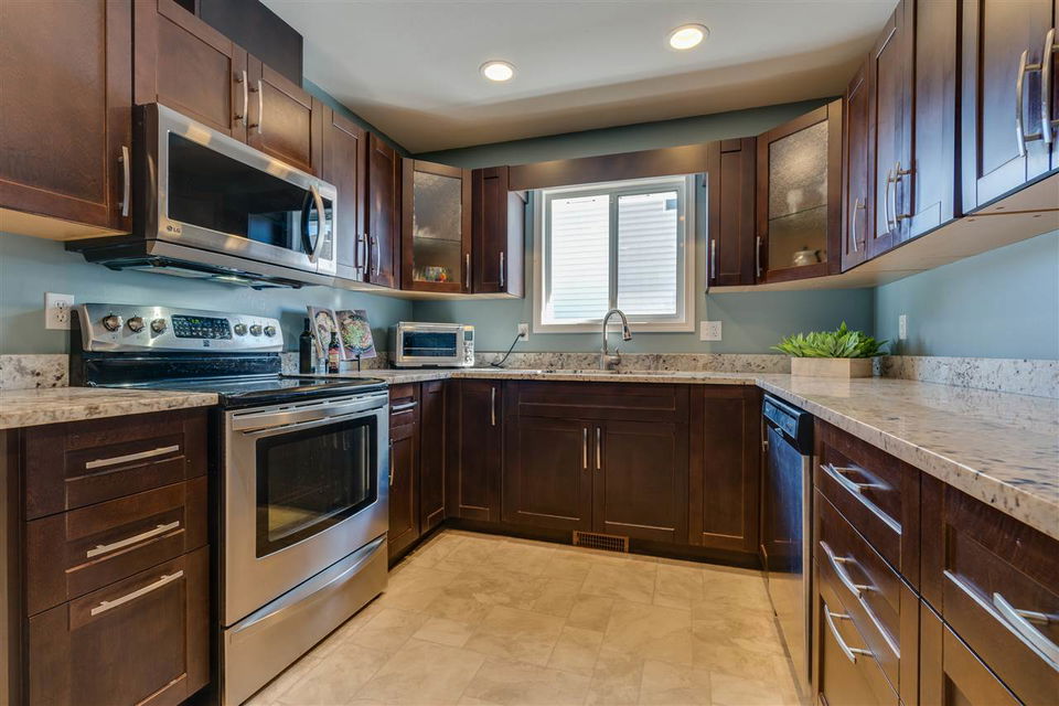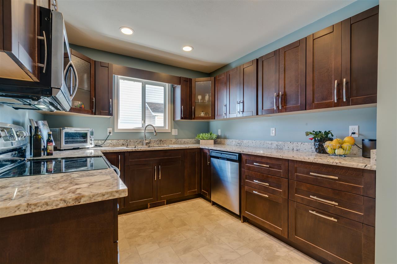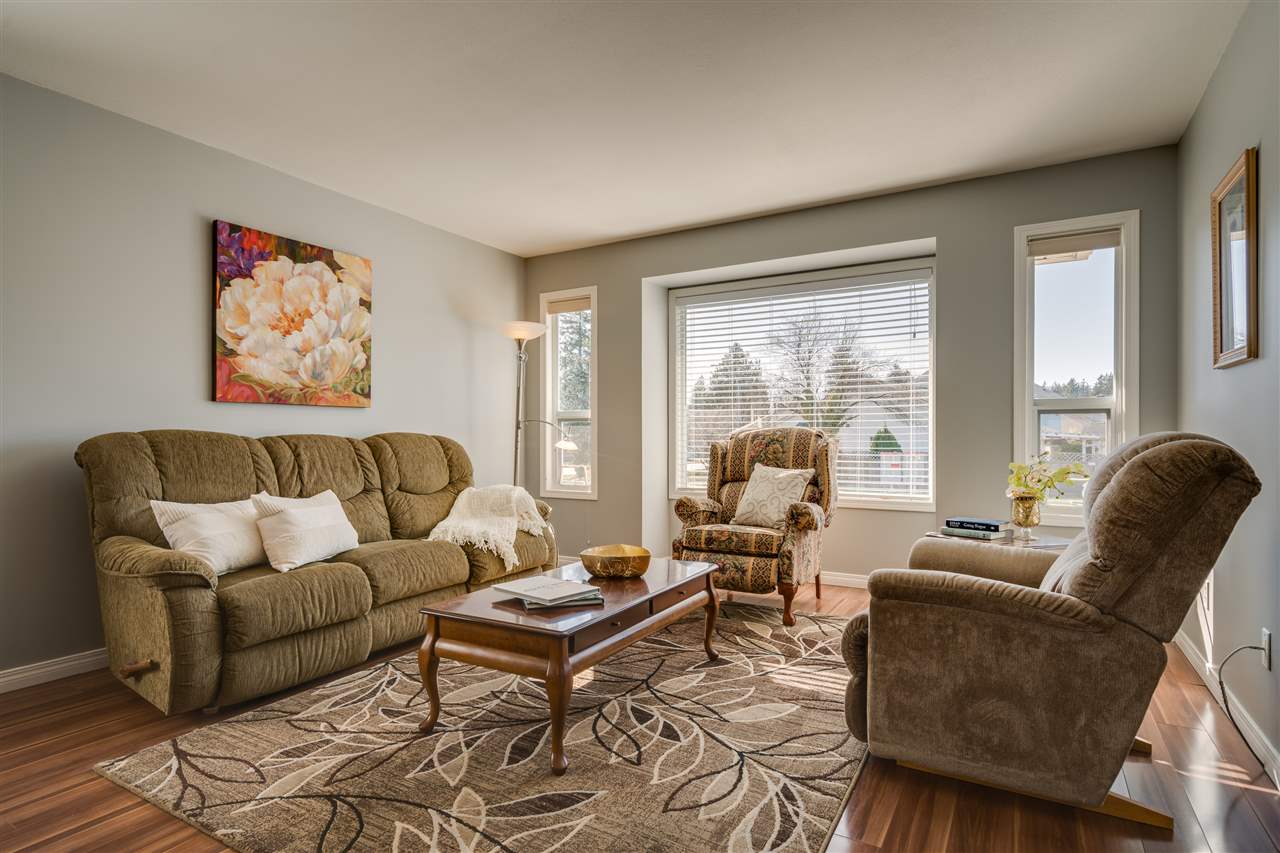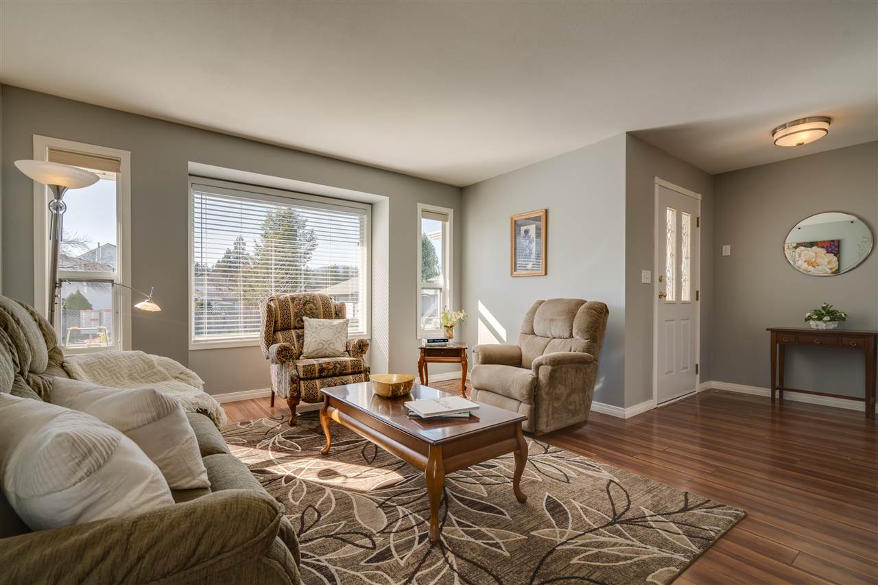 Great SARDIS location! This RANCHER w/ FULL BASEMENT & RV PARKING is located in walking distance to the Vedder River, UFV, Garrison Crossing, & all levels of schools! Manicured 6662 sq ft lot with fenced yard, large stamped concrete covered patio w/ mtn views, & a storage shed. Updated kitchen (2011) w/ shaker cabinets, GRANITE counters, SS appliances, pantry cabinets, & pot lighting. Main bath remodelled in 2014 & features a glass walk in shower! Upgraded flooring, light fixtures, & paint throughout. ROOF is 2010, gutters 2017, gas hot water tank 2017, & a new FURNACE/AC/ & HRV SYSTEM in 2011! Main floor living PLUS a partially finished bsmt w/ MEDIA ROOM w/ dry bar (wired for sound), bathroom, WORKSHOP area, 4th bdrm, & storage GALORE! Floorplans available- call for more info!
