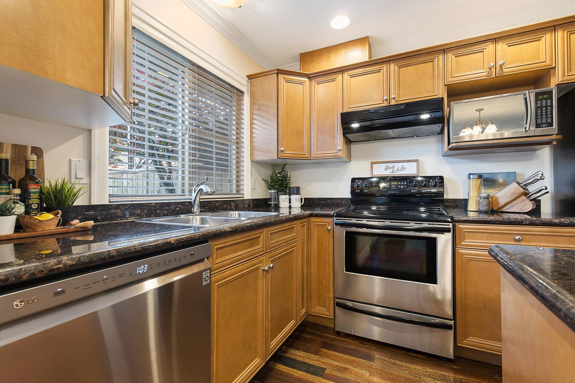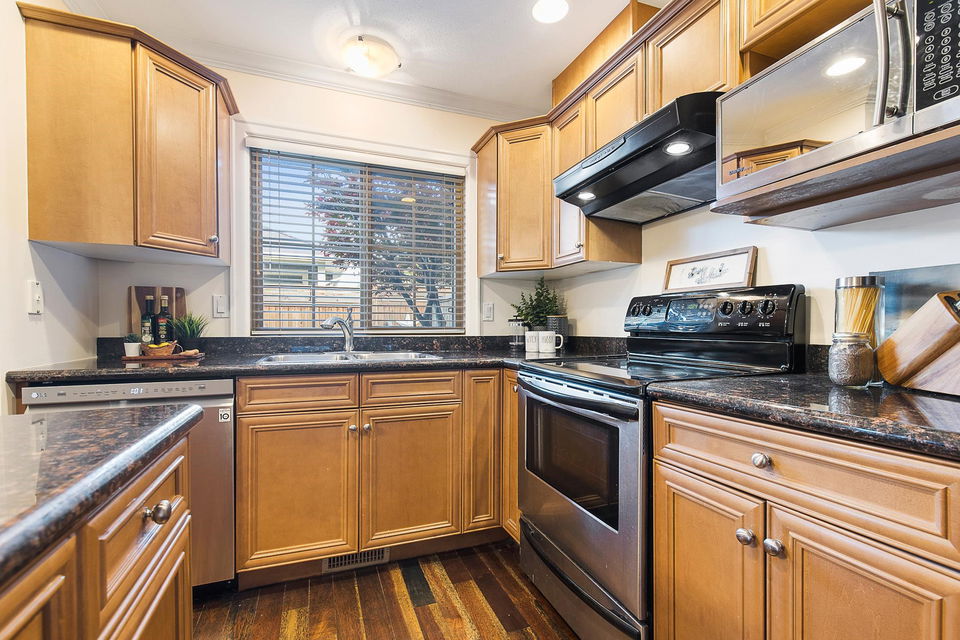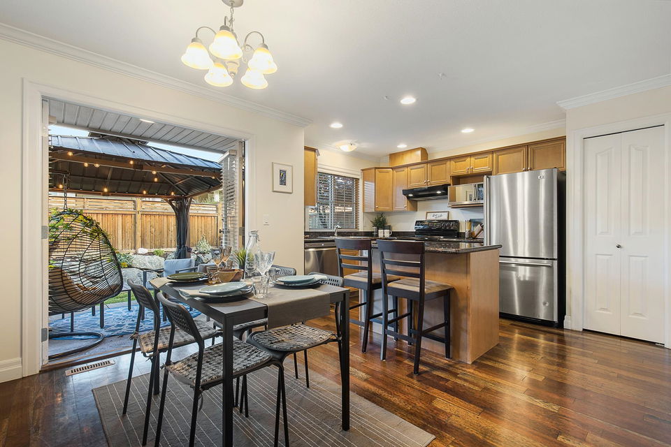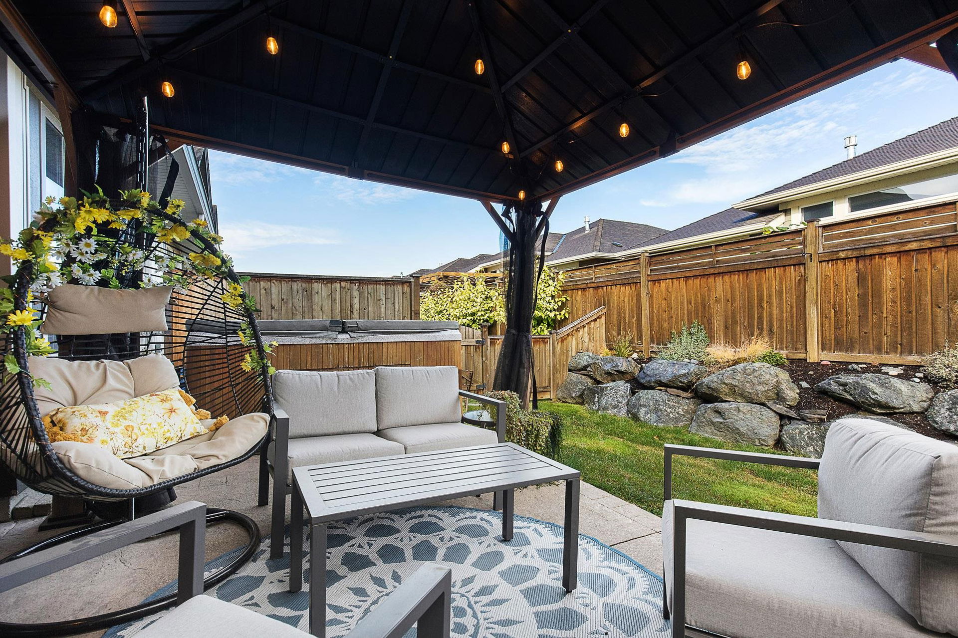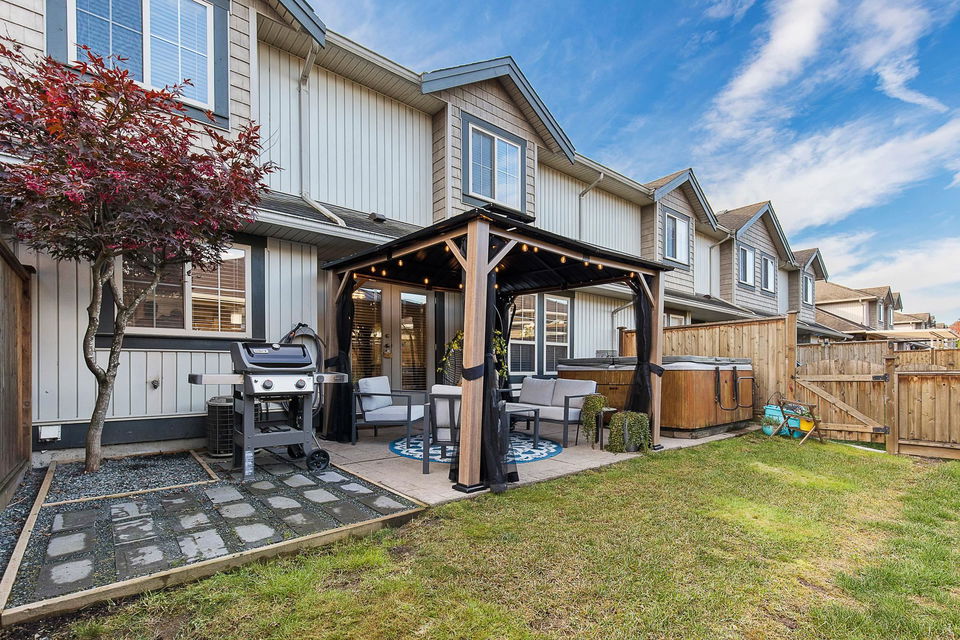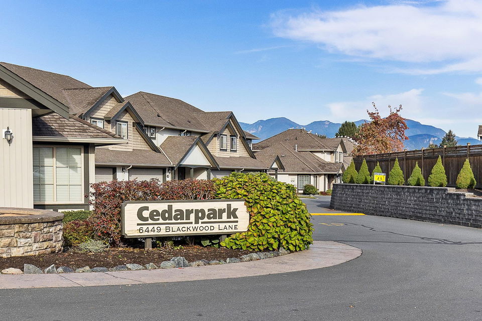 BEAUTIFULLY renovated 3 bed 3 bath townhome in CENTRAL SARDIS! Cedar Park is a favorite complex in walking distance to schools, shops, parks, & great highway access for any commuting. Greet your guests at the vaulted entryway, which leads to the fabulous main floor layout w/ large living room w/ corner gas fireplace, open concept dining area / kitchen, featuring granite counters & SS appliances. Perfect layout for entertaining, w/ walkout access from the kitchen to the FENCED BACKAYRD w/ extended patio & gazebo, hot tub (as/is), & zen gardens. Fresh paint, rich dark hardwood flooring, CENTRAL A/C, double garage, double driveway, & HUGE BEDROOMS on second level incl master w/ walk-in closet & full ensuite. Great value in a great complex! Quick possession possible and all offers welcome!