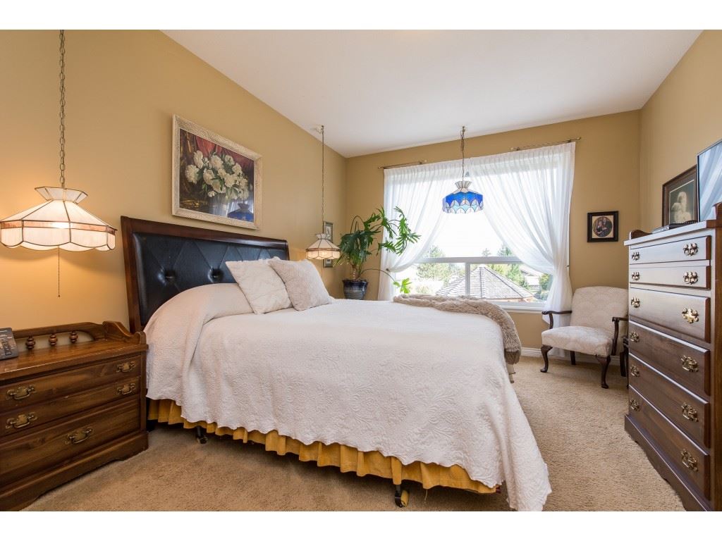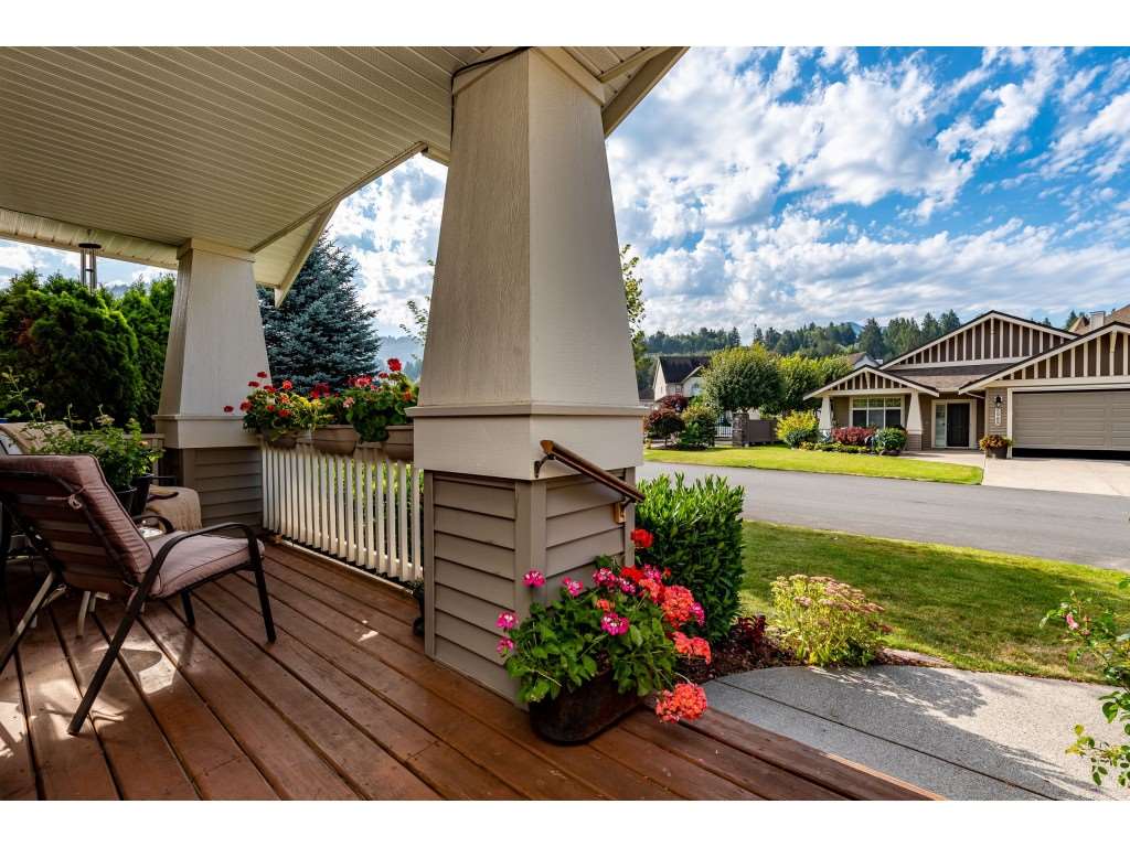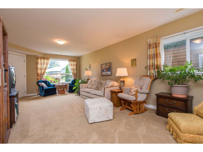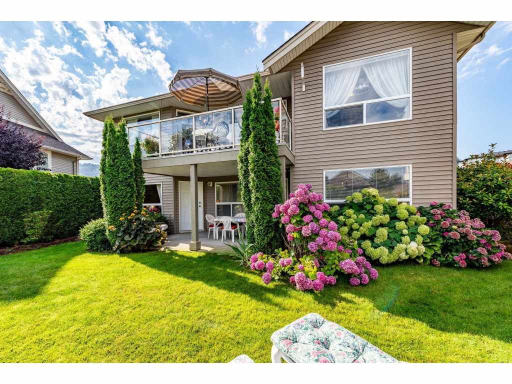 RARE OPPORTUNITY! 3145 sq ft rancher w/ walkout basement in desirable ‘Stoney Creek Estates’. This original owner home is BACKING THE POND and offers incredible views of the fountain, manicured grounds, & gorgeous eastern mountain ranges- location location! The spacious open concept main floor features hardwood flooring, SUNNY white kitchen w/ eating bar, an office, & a grand living room w/ access to the large VIEW PATIO. Master bedroom on the main w/ 5 piece ensuite incl dual sinks & w.i. shower. Plenty of room for the guests w/ 2 spare bdrms, a den storage, & recreation room in the BSMT! A bonus: ATTACHED WORKSHOP AREA in the bsmt w/ built in benches & exterior access. This is retirement at it’s FINEST- come and see why Stoney Creek has always been THE premium 45+ community in Sardis.