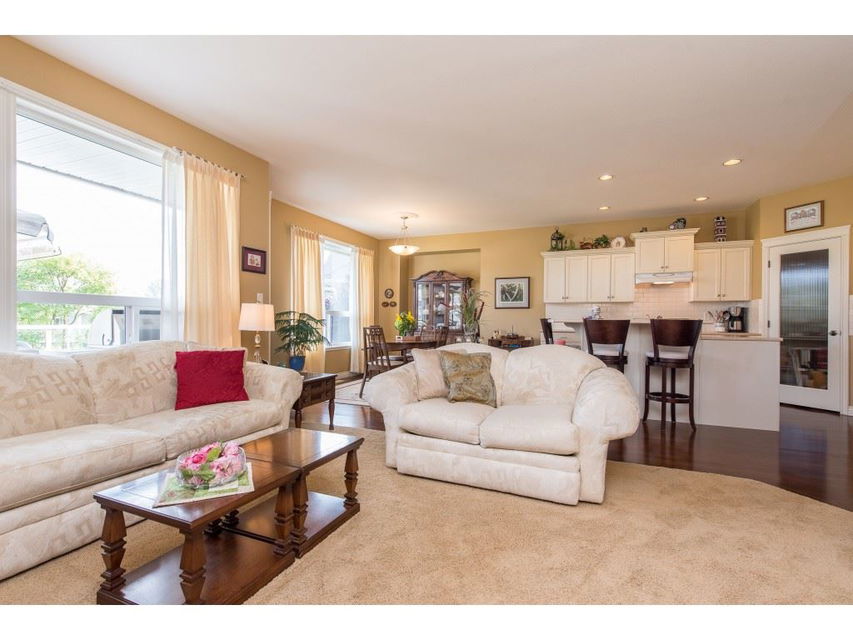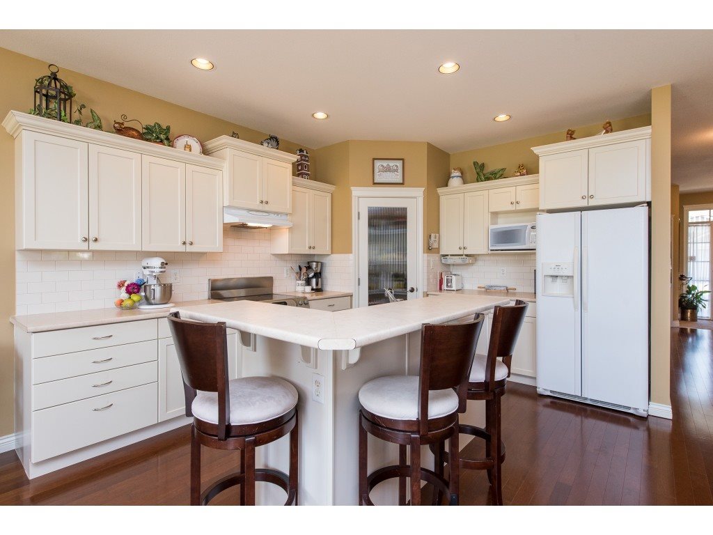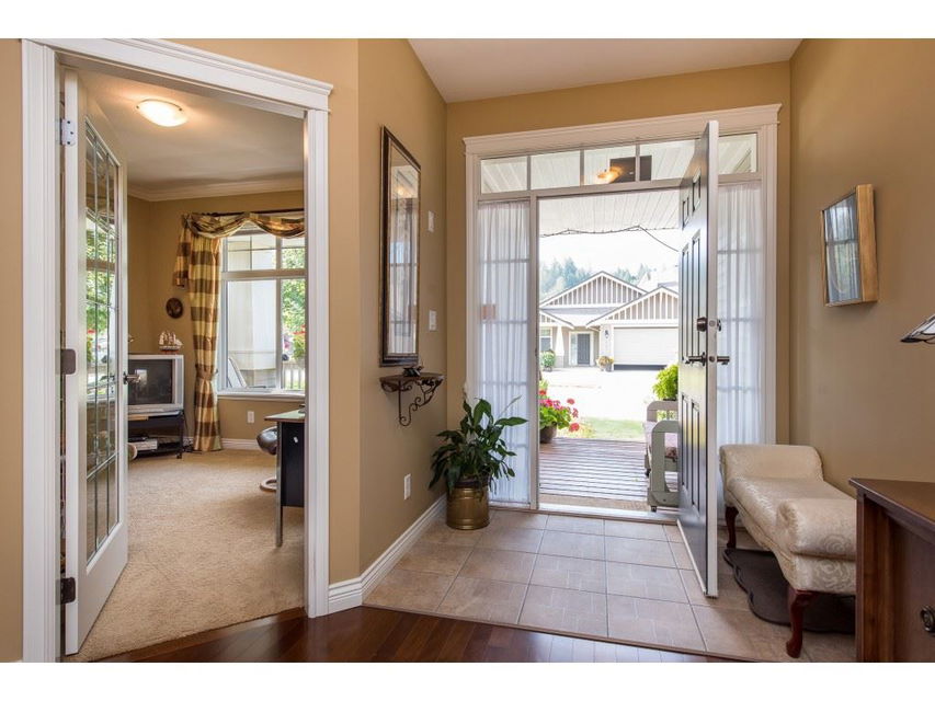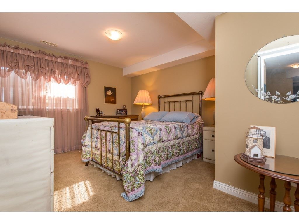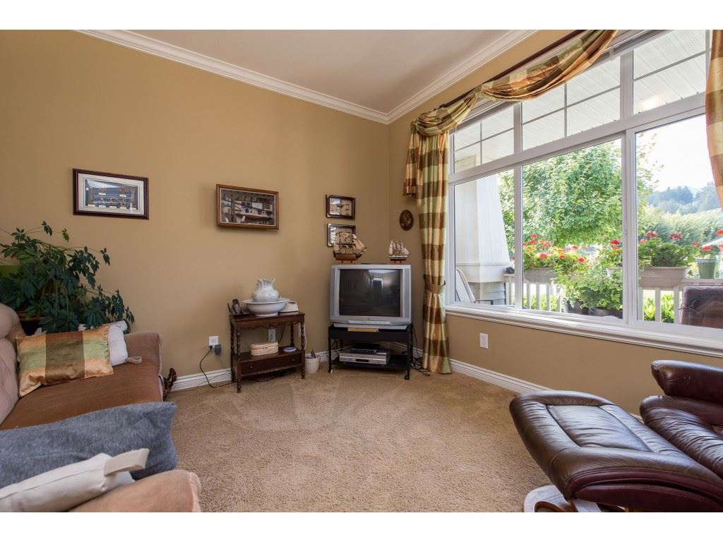 RARE OPPORTUNITY! 3145 sq ft rancher w/ walkout basement in desirable ‘Stoney Creek Estates’. This original owner home is BACKING THE POND and offers incredible views of the fountain, manicured grounds, & gorgeous eastern mountain ranges- location location! The spacious open concept main floor features hardwood flooring, SUNNY white kitchen w/ eating bar, an office, & a grand living room w/ access to the large VIEW PATIO. Master bedroom on the main w/ 5 piece ensuite incl dual sinks & w.i. shower. Plenty of room for the guests w/ 2 spare bdrms, a den storage, & recreation room in the BSMT! A bonus: ATTACHED WORKSHOP AREA in the bsmt w/ built in benches & exterior access. This is retirement at it’s FINEST- come and see why Stoney Creek has always been THE premium 45+ community in Sardis.