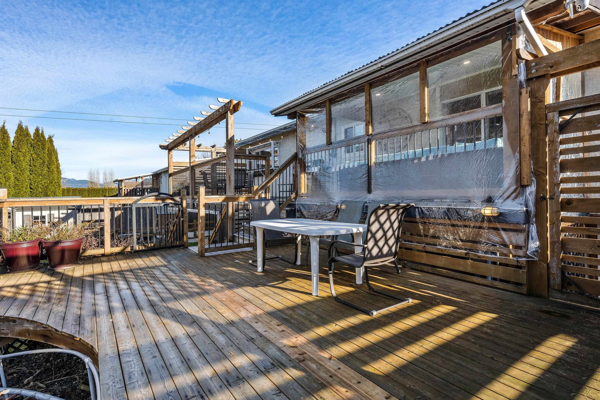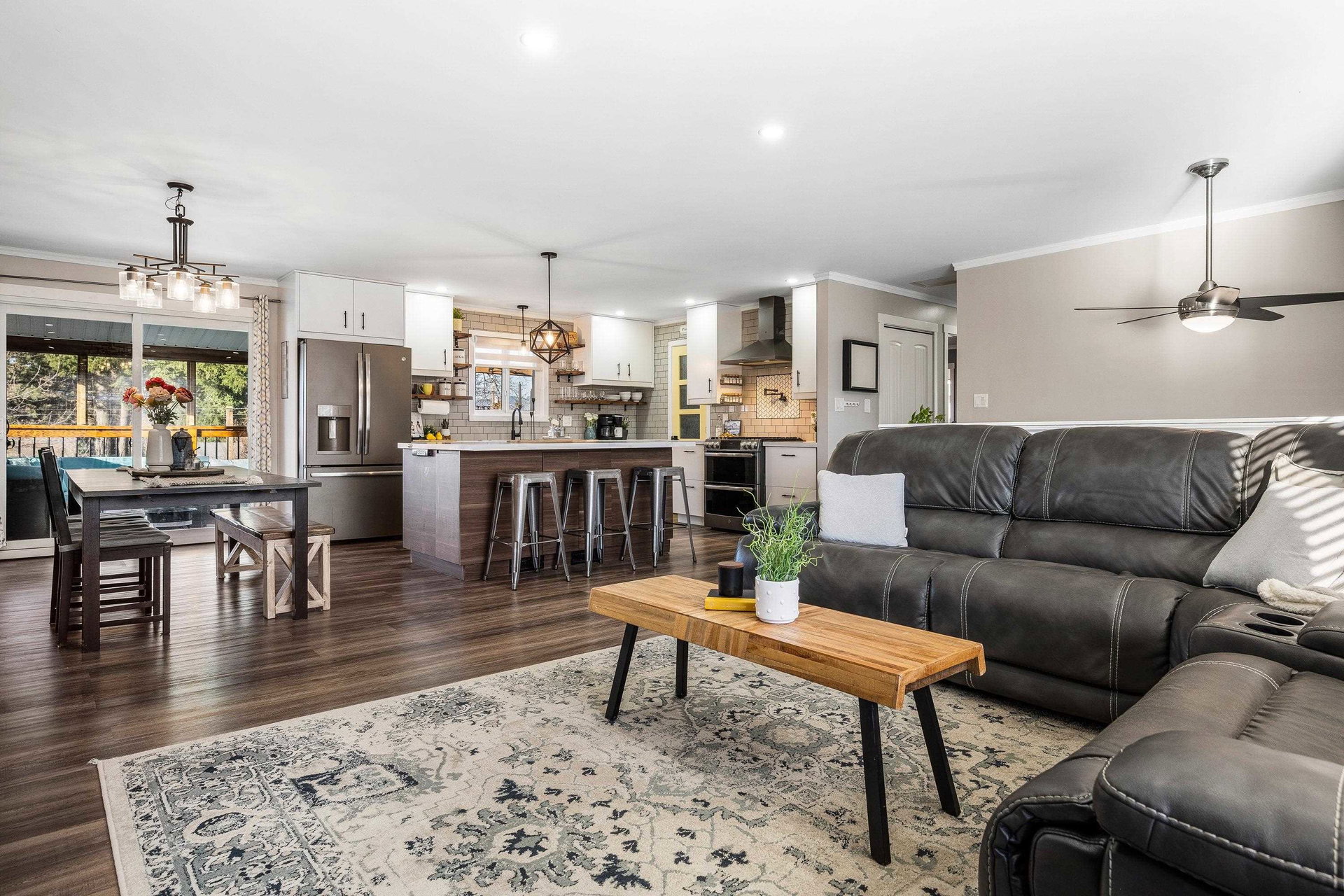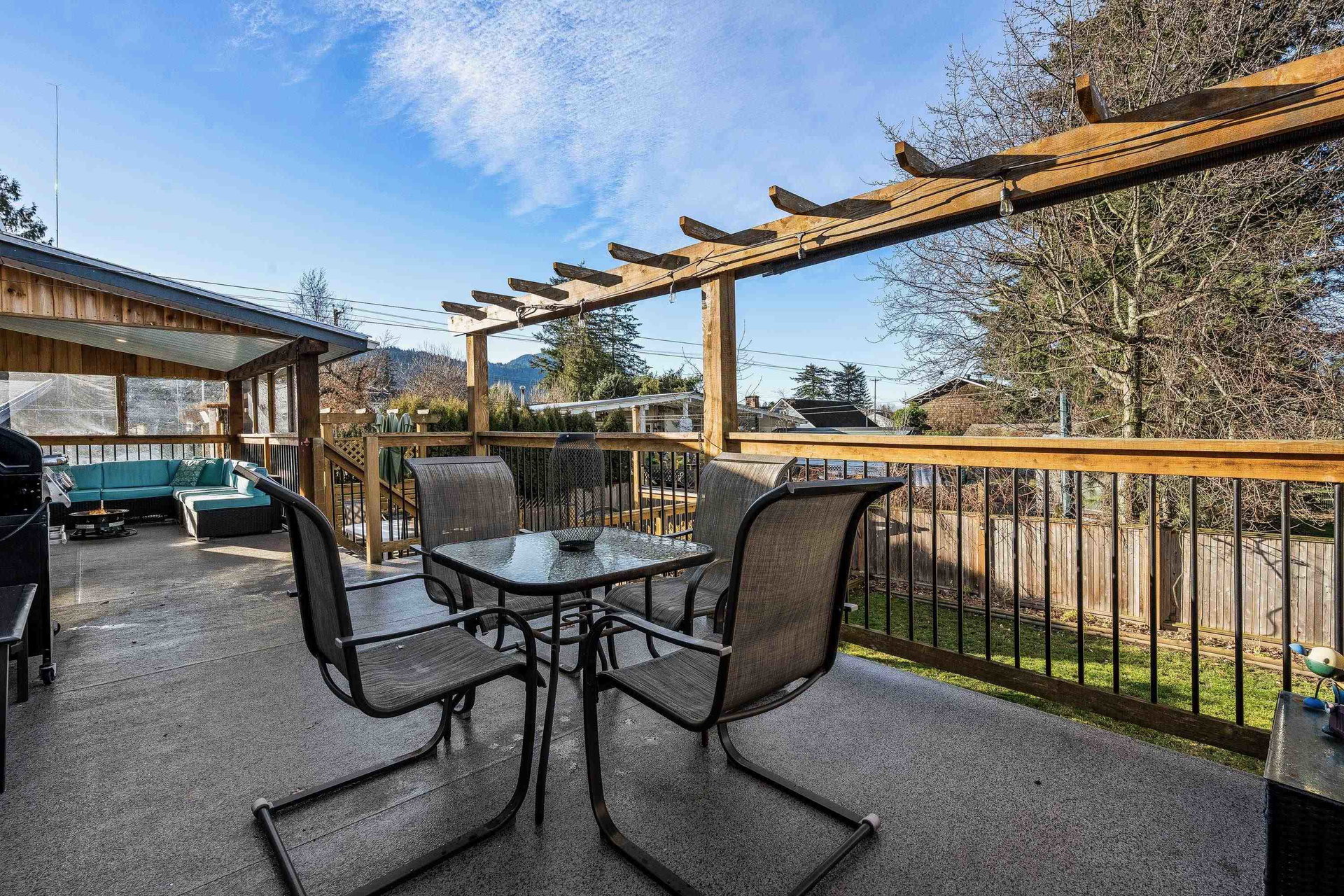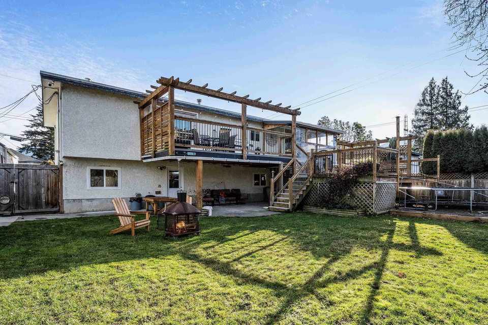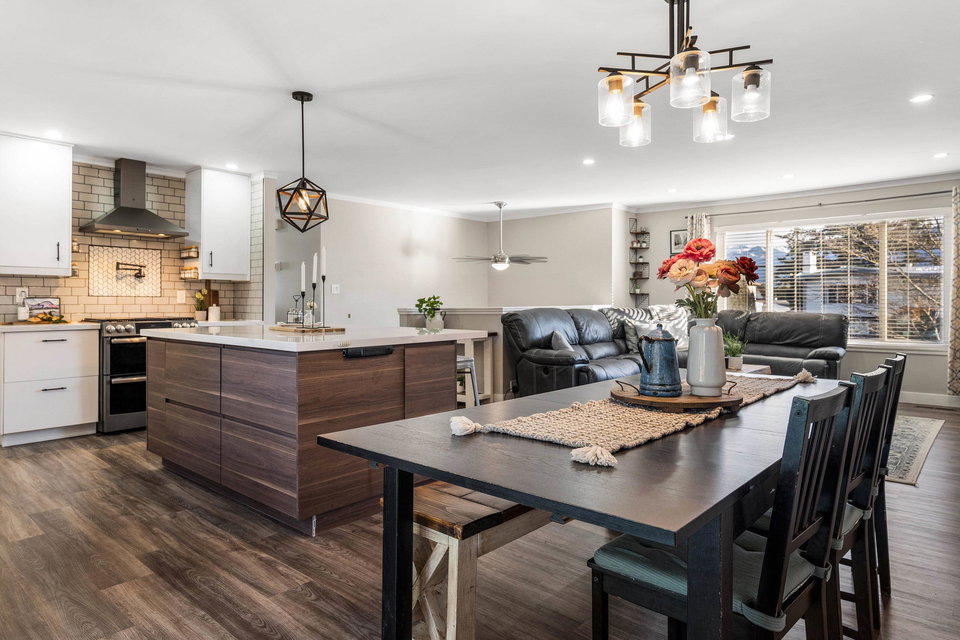 RENOVATED family home focused on ENTERTAINMENT and FUN! The stunning open concept main floor feat a BEAUTIFUL kitchen w/ 10′ oversized island, SS appliances, QUARTZ counters, custom pull outs, walk-in pantry, tiled backsplash- WOW! Adjacent living room w/ STUNNING mtn views, large dining area w/ custom sideboard, & access to the covered all season patio that opens to the manicured fenced yard w/ shed, greenhouse, & 200+ sq ft of patio w/ HOT TUB zone feat cedar soffits! 3 bdrms UP, master w. ensuite. Updated windows, roof, furnace, A/C, NEW hot water tank, 200amp electrical update, vinyl plank flooring, modern fixtures, paint- the WORKS! Add on a 78′ frontage w/ RV side parking and room for all the toys. Steps to Garrison Crossing, the Vedder River, and ALL levels of schooling. BOOK NOW!