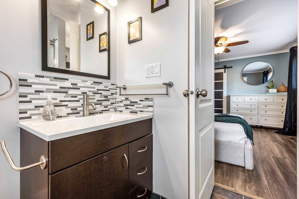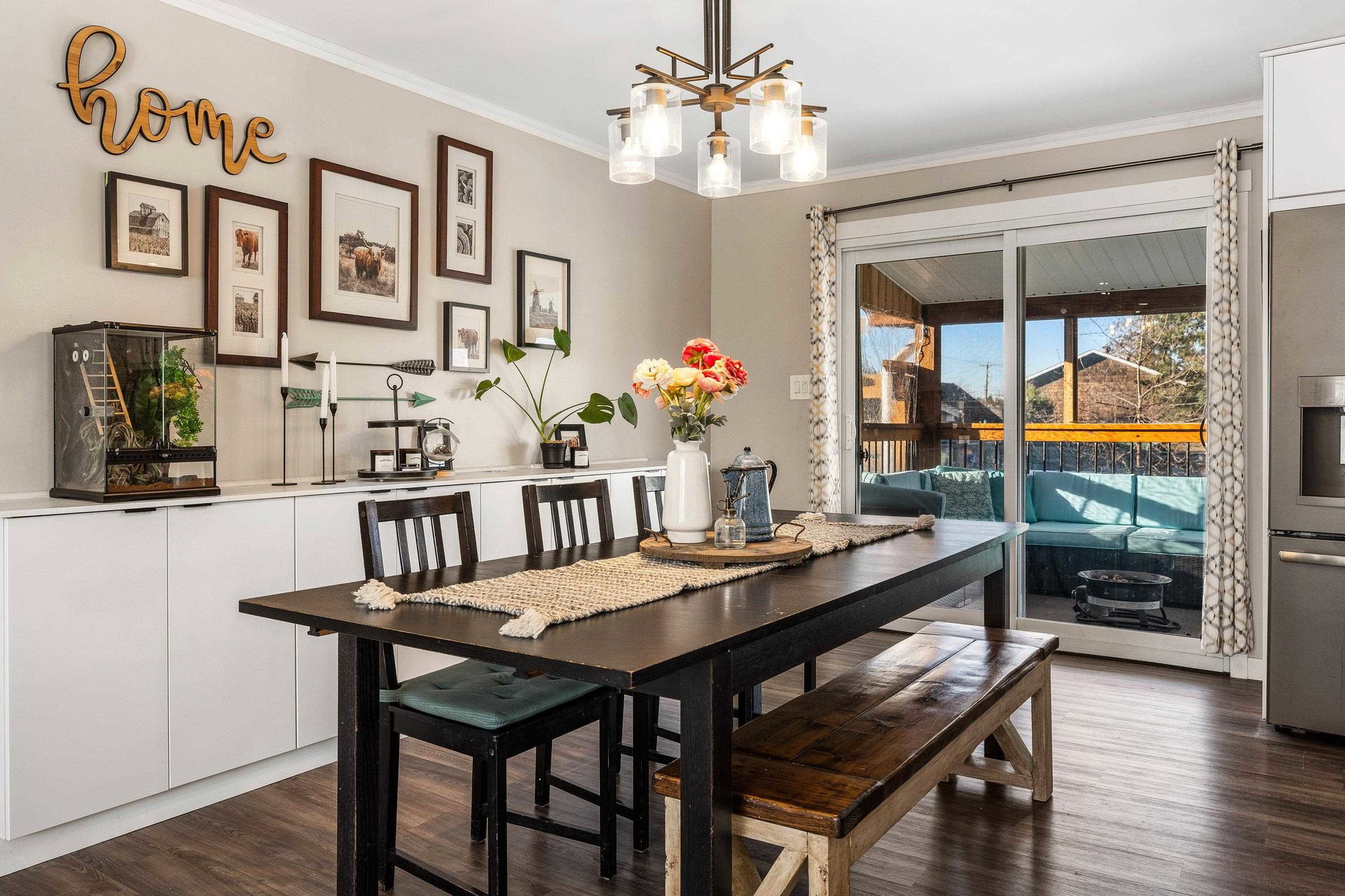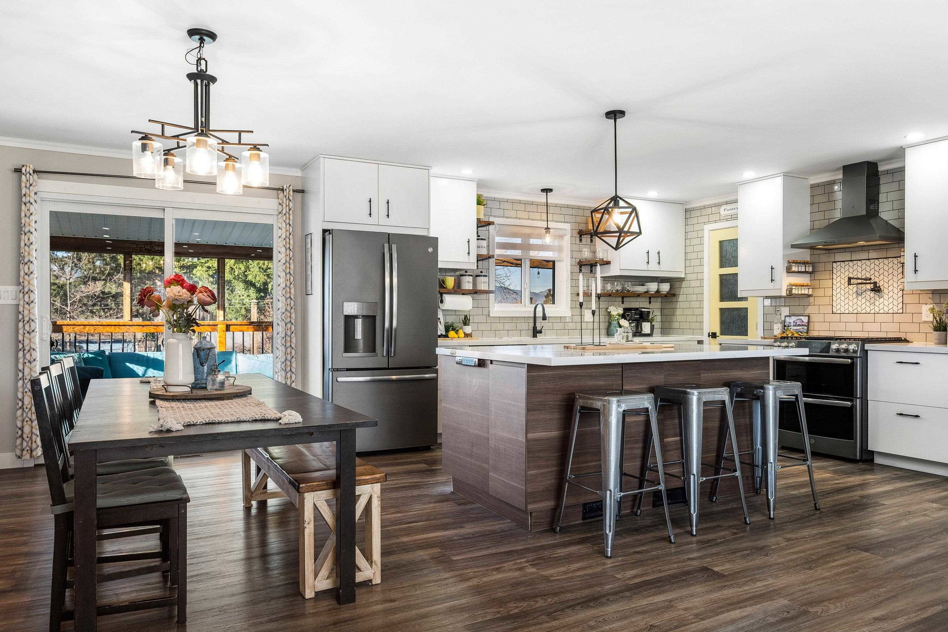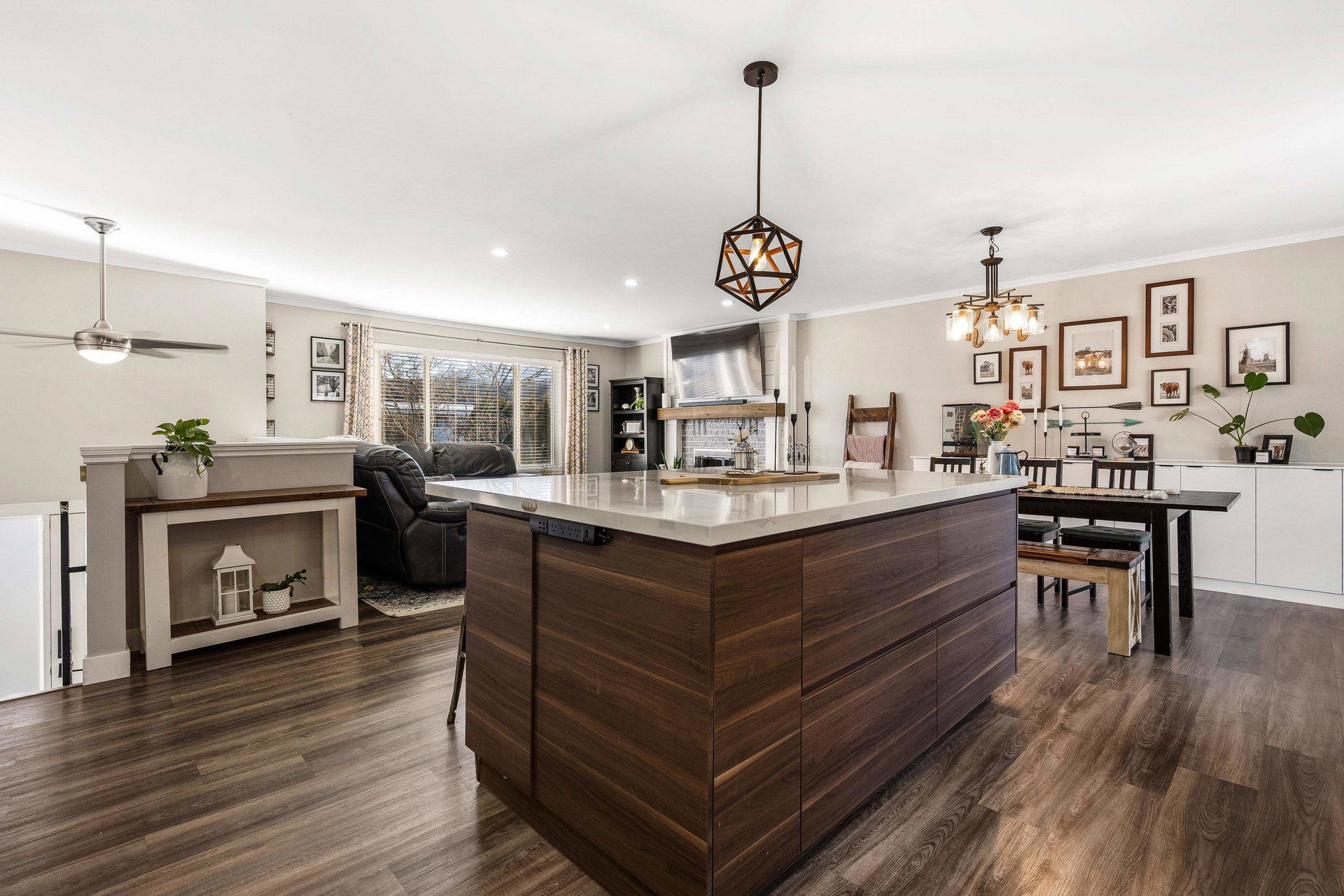 RENOVATED family home focused on ENTERTAINMENT and FUN! The stunning open concept main floor feat a BEAUTIFUL kitchen w/ 10′ oversized island, SS appliances, QUARTZ counters, custom pull outs, walk-in pantry, tiled backsplash- WOW! Adjacent living room w/ STUNNING mtn views, large dining area w/ custom sideboard, & access to the covered all season patio that opens to the manicured fenced yard w/ shed, greenhouse, & 200+ sq ft of patio w/ HOT TUB zone feat cedar soffits! 3 bdrms UP, master w. ensuite. Updated windows, roof, furnace, A/C, NEW hot water tank, 200amp electrical update, vinyl plank flooring, modern fixtures, paint- the WORKS! Add on a 78′ frontage w/ RV side parking and room for all the toys. Steps to Garrison Crossing, the Vedder River, and ALL levels of schooling. BOOK NOW!