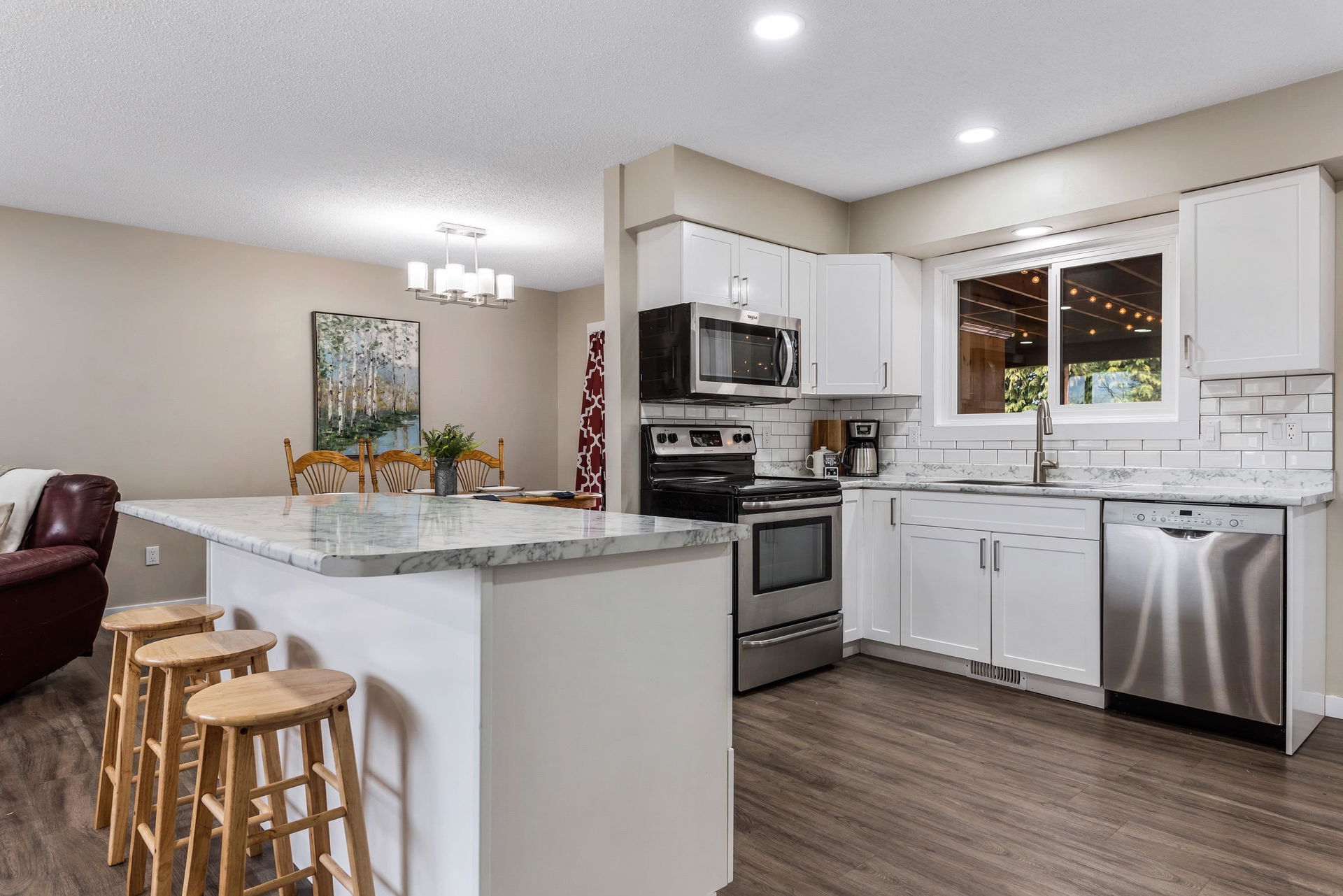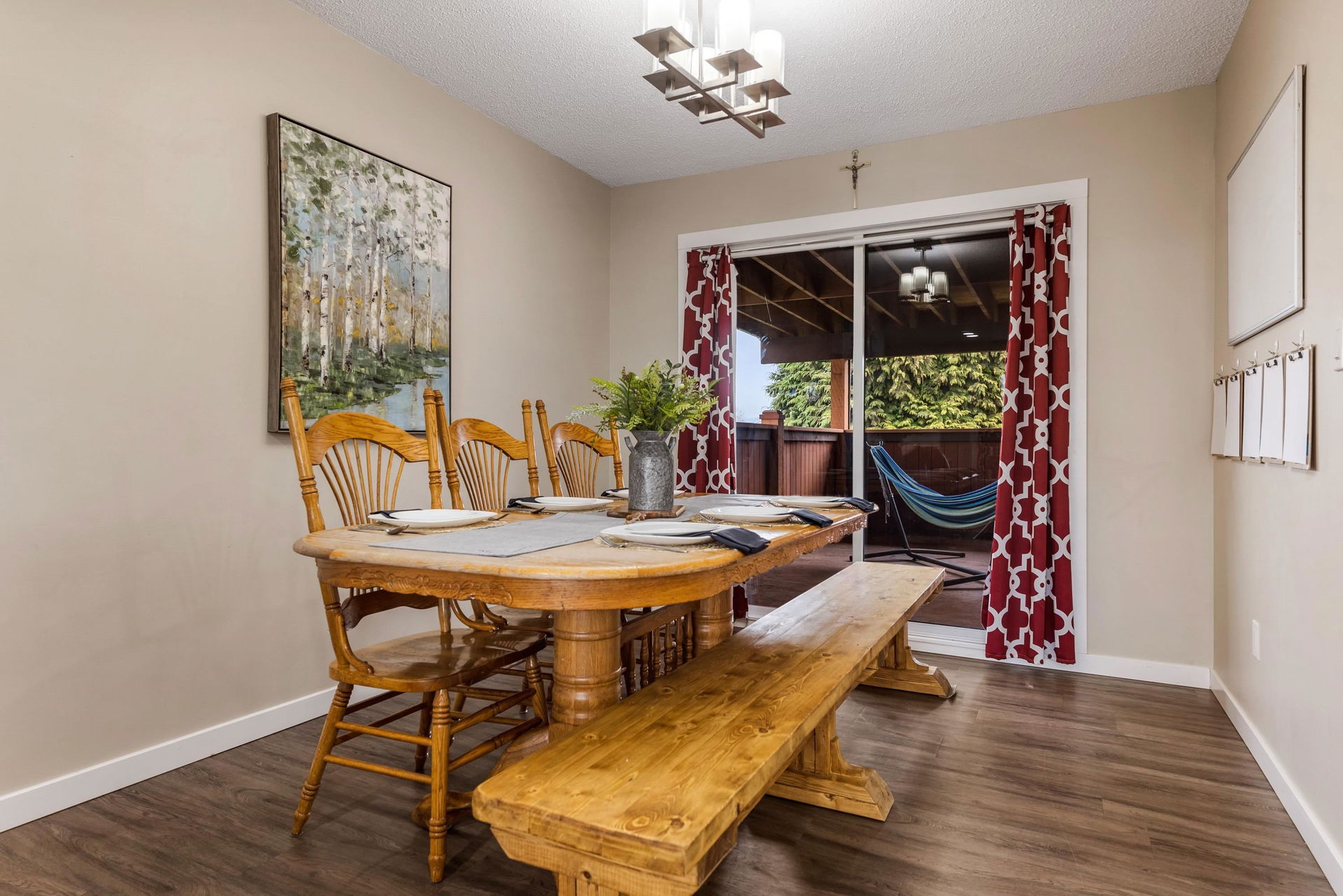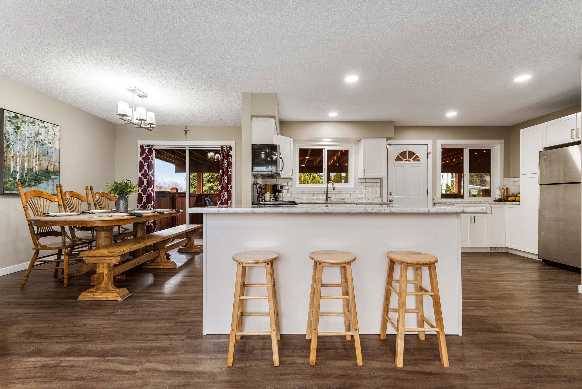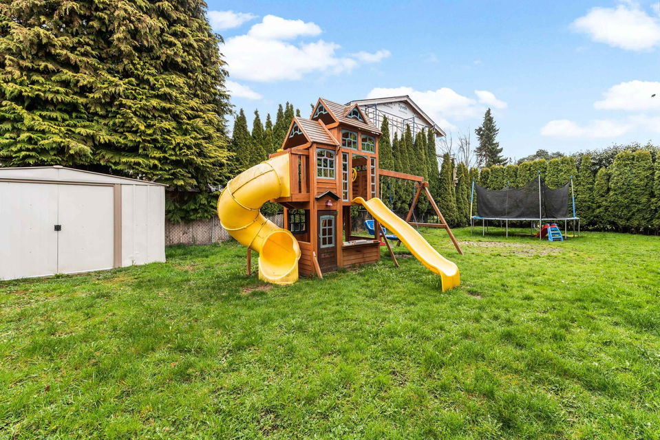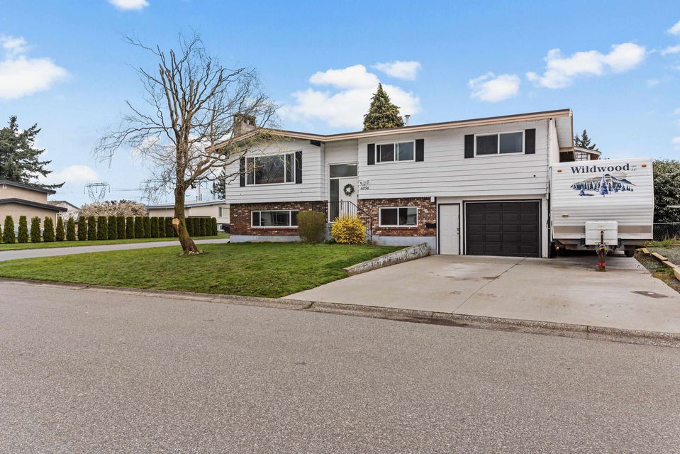 Amazing RENOVATED 5 BDRM & 3 BATHROOM family home steps from GARRISON CROSSING, walking distance to ALL levels of schools, restaurants, amenities, & 8 mins to Cultus Lake! WOW! Sitting on a HUGE corner lot w/ full side RV PARKING, mature privacy hedging, & FULLY FENCED YARD. Step inside and enjoy the OPEN CONCEPT KITCHEN w/ white shaker cabinets, SS appliances, ample storage, & access to a MASSIVE COVERED 400 sq ft + PATIO!! Whether it’s for entertaining, an added kids play area, or for the pets- this is a patio for EVERYONE! 3 beds on main, primary w/ 2 piece ensuite. Finished bsmt w/ 2 bdrms, 2 piece bathroom, sep entrance, & access to the attached single garage & covered lower deck w/ HOT TUB. 2017 furnace & AC, vinyl windows, vinyl plank flooring, & playground w/ sandbox!