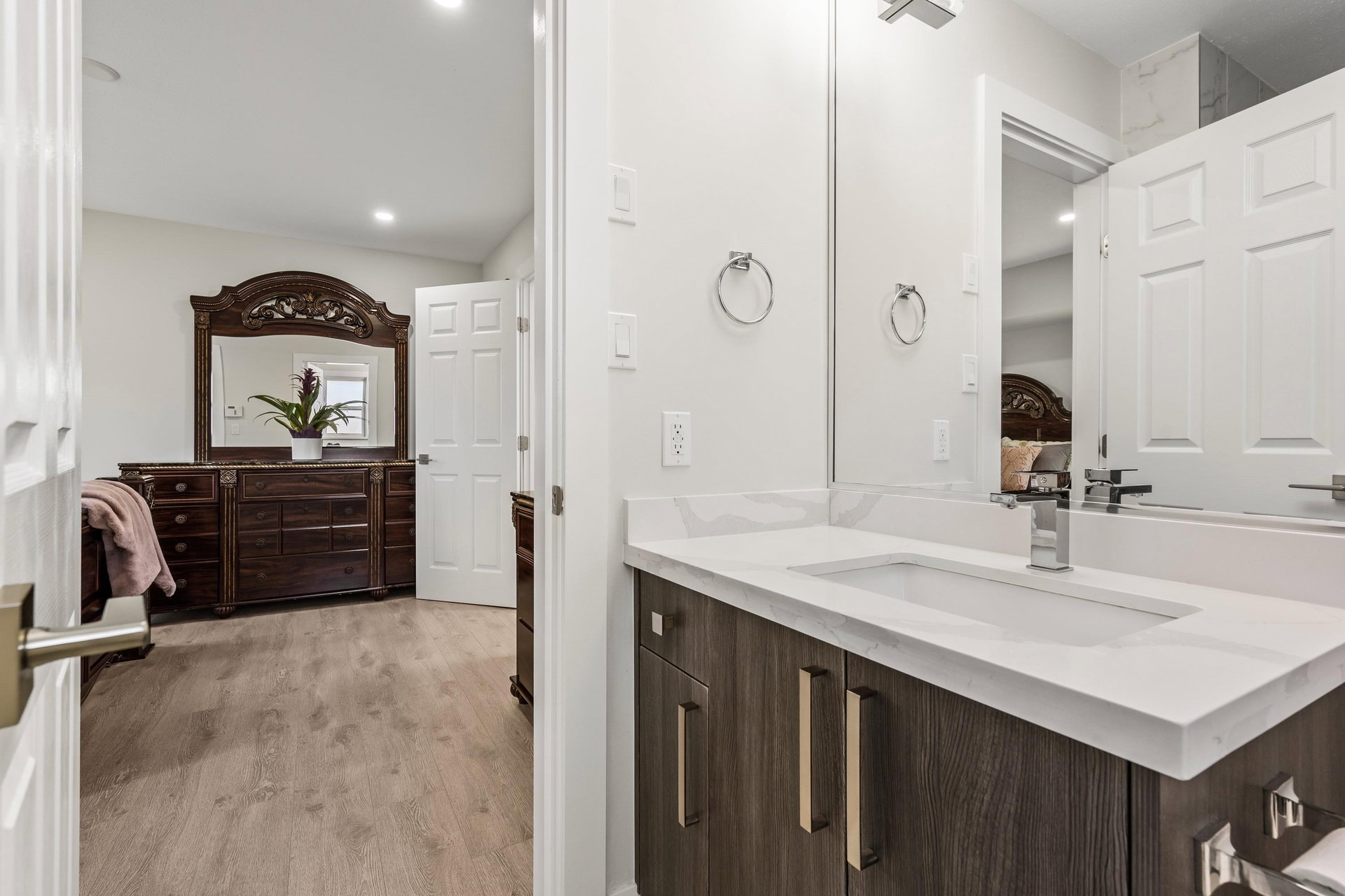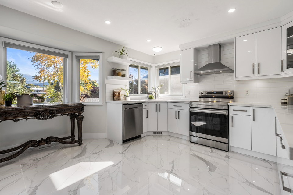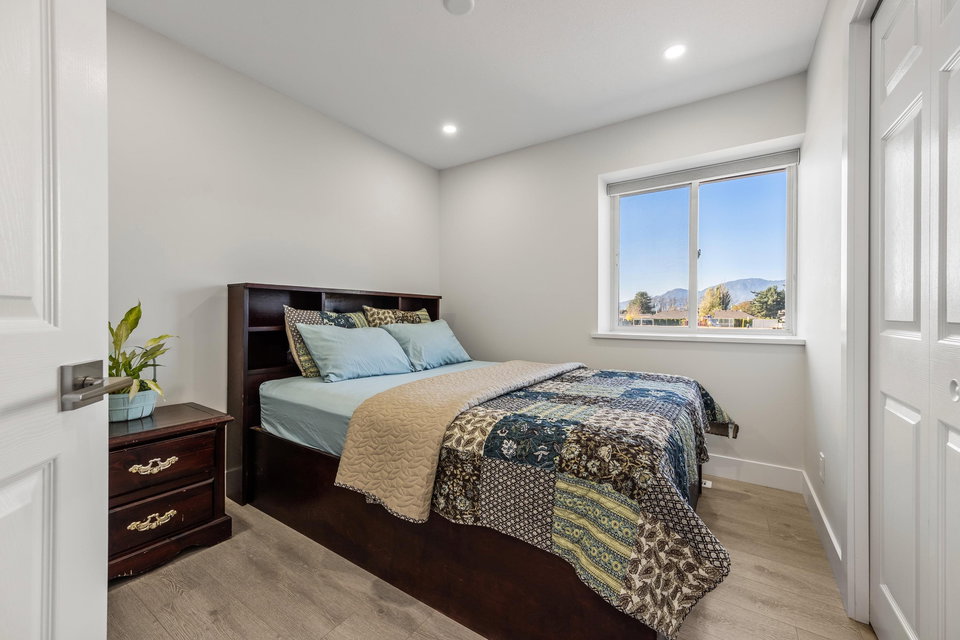 SUITE DEAL in SARDIS! This REMODELLED 5 bdrm & 3 bathroom home is located in the heart of a FAMILY FRIENDLY neighborhood and across from the fantastic school of Tyson Elementary and is also only 3 blocks walk to Vedder Middle School! BRIGHT MODERN main floor w/ laminate & tile flooring, HUGE white kitchen w/ quartz counters, SS appliances, ample storage, & tiled backsplash. 3 bedrooms on this upper main floor also incl primary suite w/ walk-in closet & a full ensuite washroom w/ walk-in shower. Large patio off the kitchen eating nook w/ access to the fenced backyard. On the lower entry-level, there is a welcoming foyer, family room (could be 6th bdrm), & access to the 2 bdrm suite- perfect for UFV students, (walking distance!), air BnB (cultus is 10 mins away) or family! Great family home!