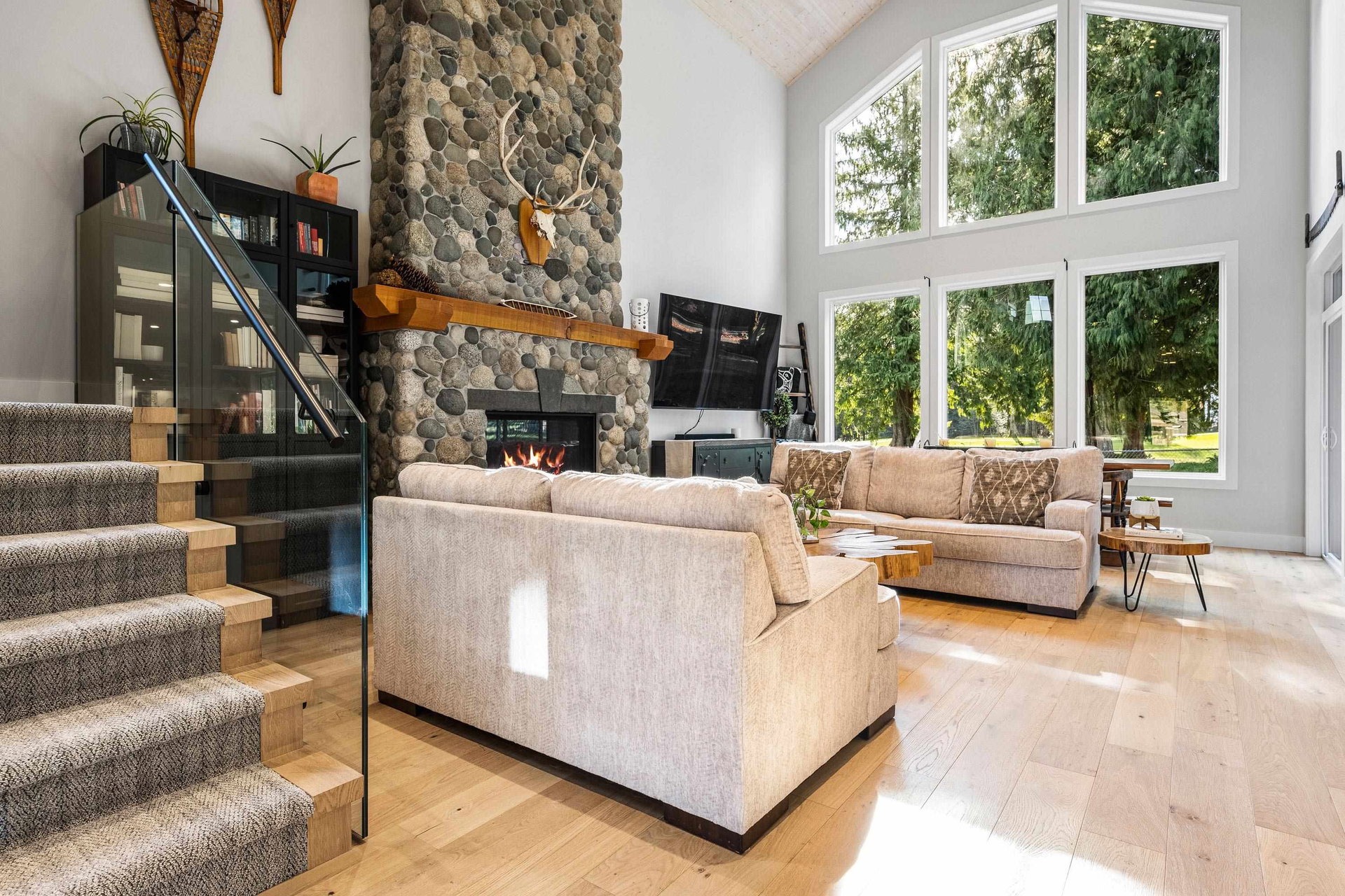 CUSTOM BUILT WEST COAST 2 Storey backing onto SANDPIPER GOLF COURSE! This once in a lifetime DREAM HOME features 2,800sqft+ of TOP END PREMIUM finishes including an impressive 5 Bed / 3 Bath configuration. Main Floor has a SOARING 24′ VAULTED CEILING (& a ONE OF A KIND RIVER ROCK F/place to match!) FLOODED w/ NATURAL LIGHT & floor to ceiling windows; CHEF INSPIRED DREAM kitchen w/ HIGH END APPLIANCES, EXPANSIVE ISLAND SPACE & a FULL WALK-IN PANTRY. Upstairs has 4 total bedrooms featuring a BREATHTAKING primary suite w/ spa-inspired ensuite + PRIVATE deck with PANORAMIC GOLF COURSE VIEWS. Eagle Point is a Bare Land Strata with little restriction & RV PARKING INCLUDED. Designed for families & entertainers alike, this home delivers timeless WEST COAST FLAVOUR throughout every detail!