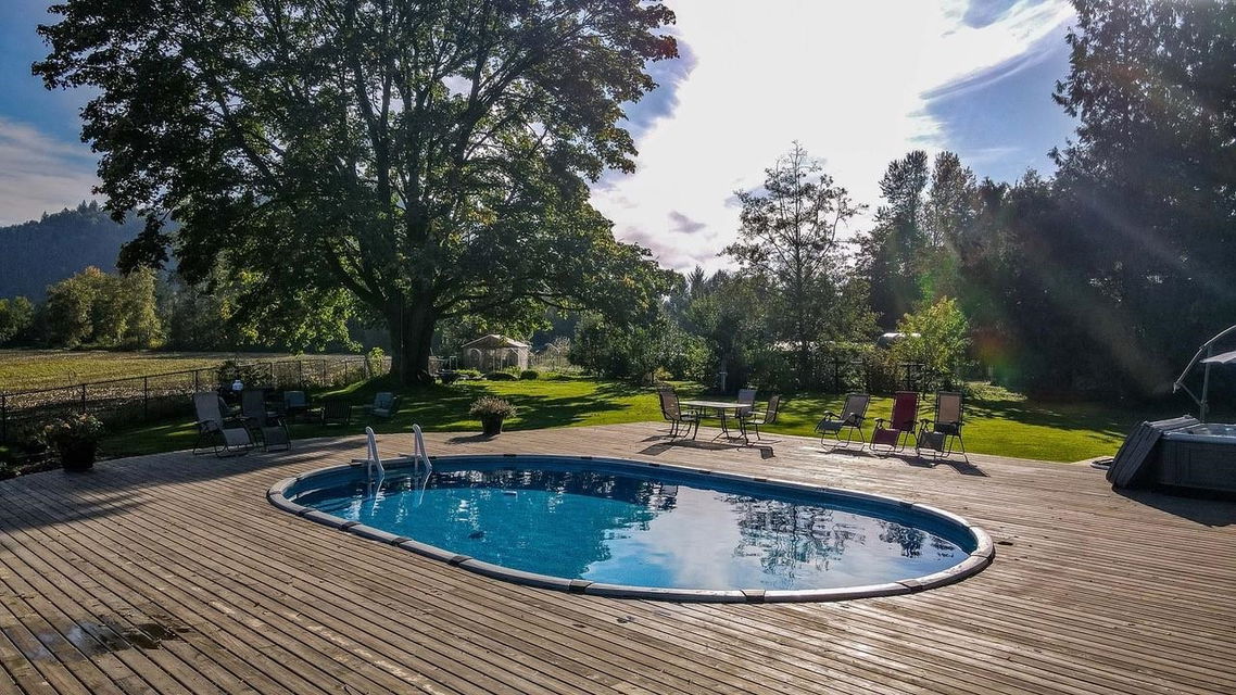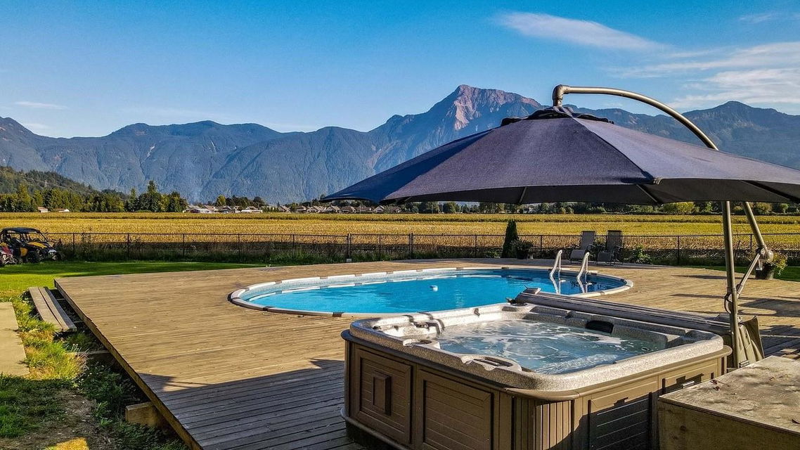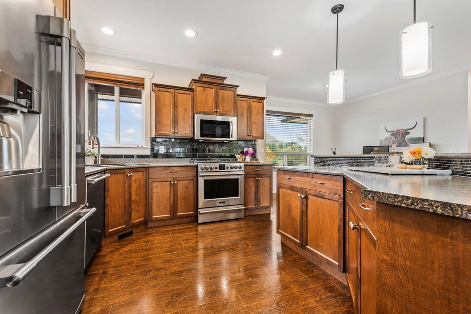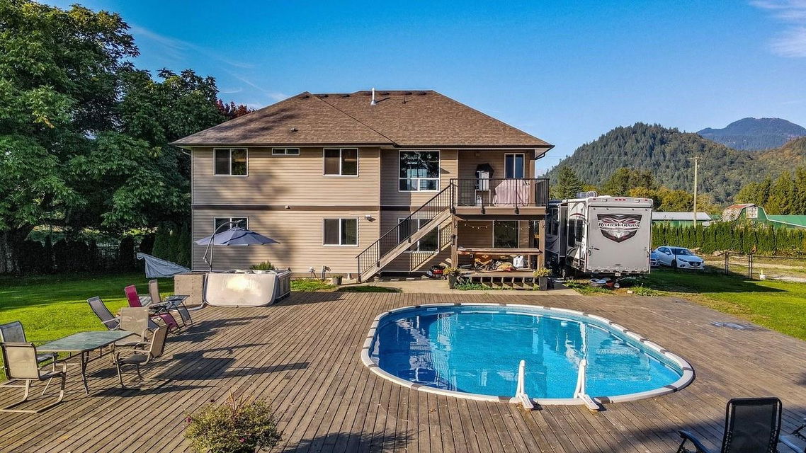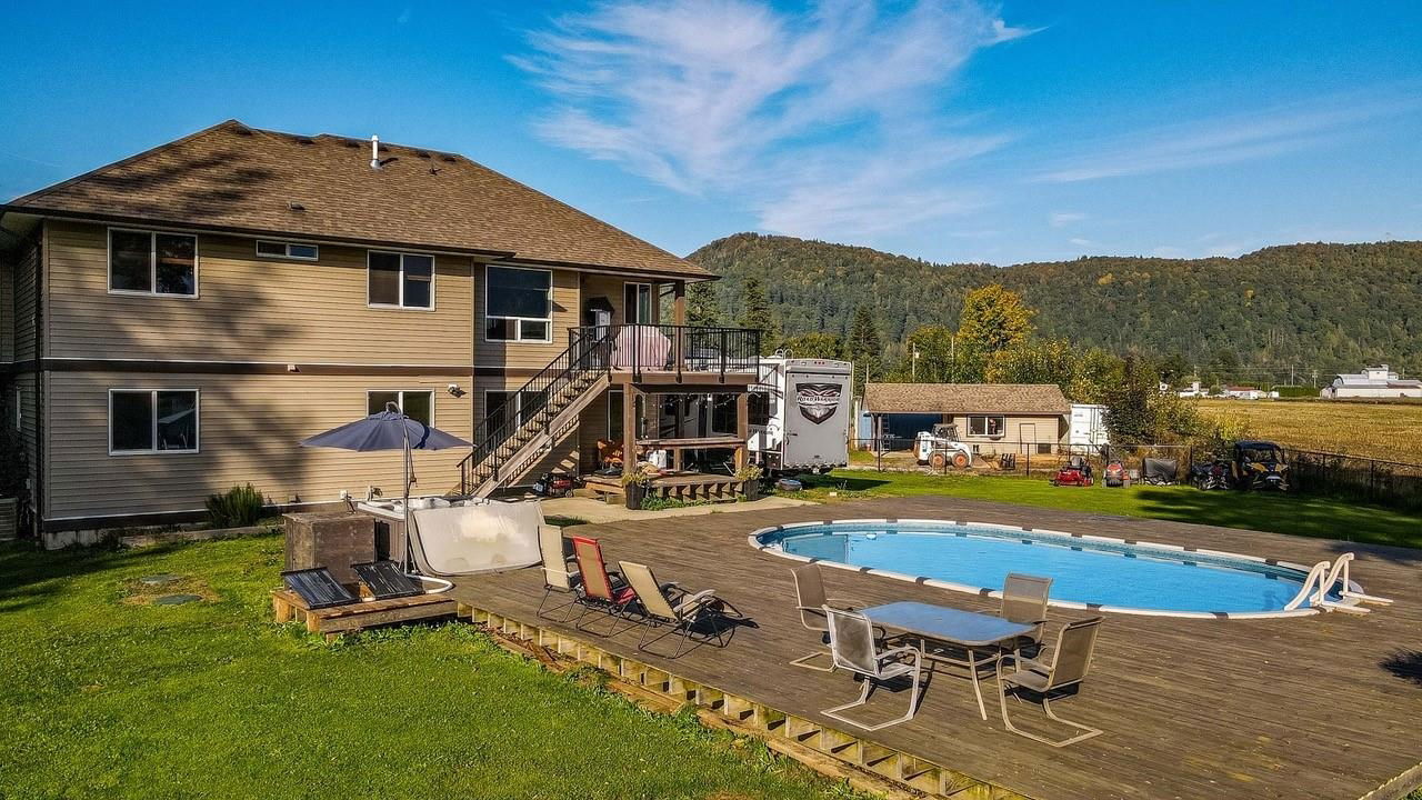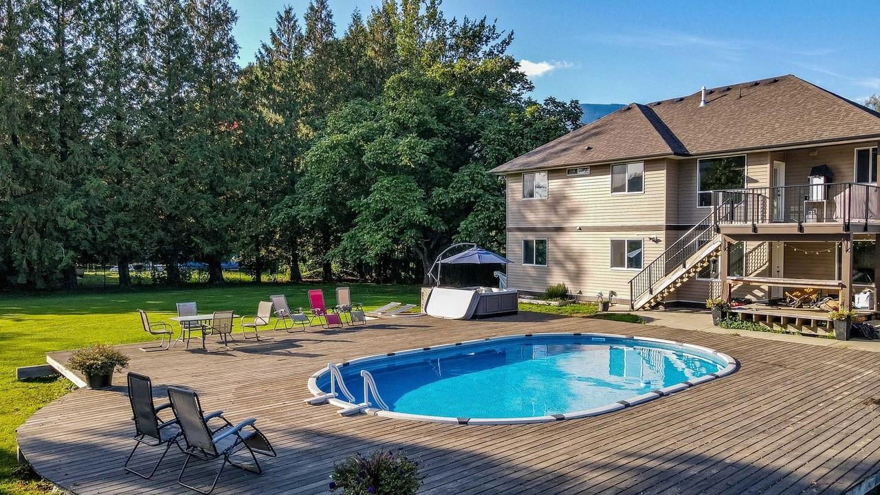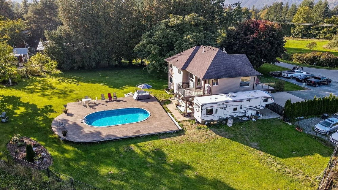 ACREAGE w/ POOL & DETACHED SHOP! Located on a picturesque 1.11 acre FENCED lot w/ incredible panoramic VIEWS, a private oasis awaits new owners! Built in 2012, this 5 bdrm 2848 sq ft home has been lovingly maintained and upgraded. Open concept kitchen w/ solid wood cabinets & SS appliances incl GAS range, rock faced gas fireplace, dual upper patios, & spacious master w/ dual vanities and w/i shower. FULLY FINISHED BSMT w/ vinyl plank flooring, 2 bdrms & large laundry- VERY EASY TO SUITE if desired. Stair access to a 5′ crawl space (amazing storage). STORYBOOK BACKYARD w/ wrap around patio, pool, hot tub, gardens w/ fruit trees, fire pit, & MORE. PARKING GALORE + side access to a detached 16×14 SHOP w/ separate fenced yard. Bring the trucks, boats, quads, & pets- this is the life!