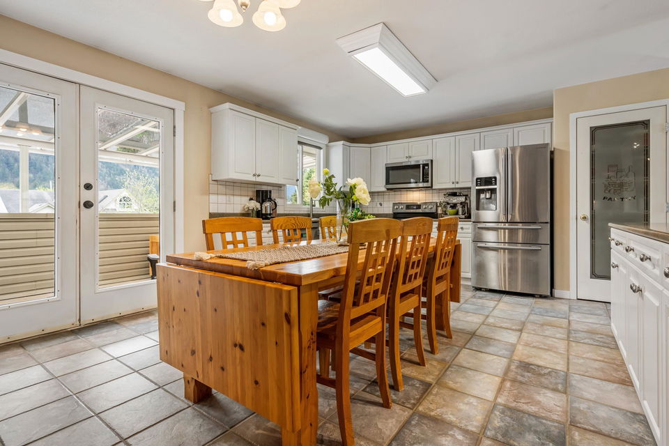 5 bdrm FAMILY HOME w/ DETACHED 16×24 SHOP w/ lane access- bring the RV’s & toys! This gem of a property is centrally located in Kettle Valley, 1km from the lake & walking distance to Othello Tunnels! Great layout w/ open concept kitchen/living UPSTAIRS & access to a covered southern VIEW PATIO, plus 3 bdrms & 2 baths! Vinyl plank flooring. The entry lower level has 2 bdrms, powder room, HUGE rec room, & access to the DOUBLE GARAGE. Step outside to the backyard & enjoy the 40′ COVERED PATIO w/ HOT TUB. 16×24 insulated & wired shop w/ mezz storage & 12′ door- AMAZING! Fully gated lane access for secure parking. A/C, b.i. vac, & upgraded 200 amp service (100 amp to shop). Call this great property YOUR NEW HOME- book today!