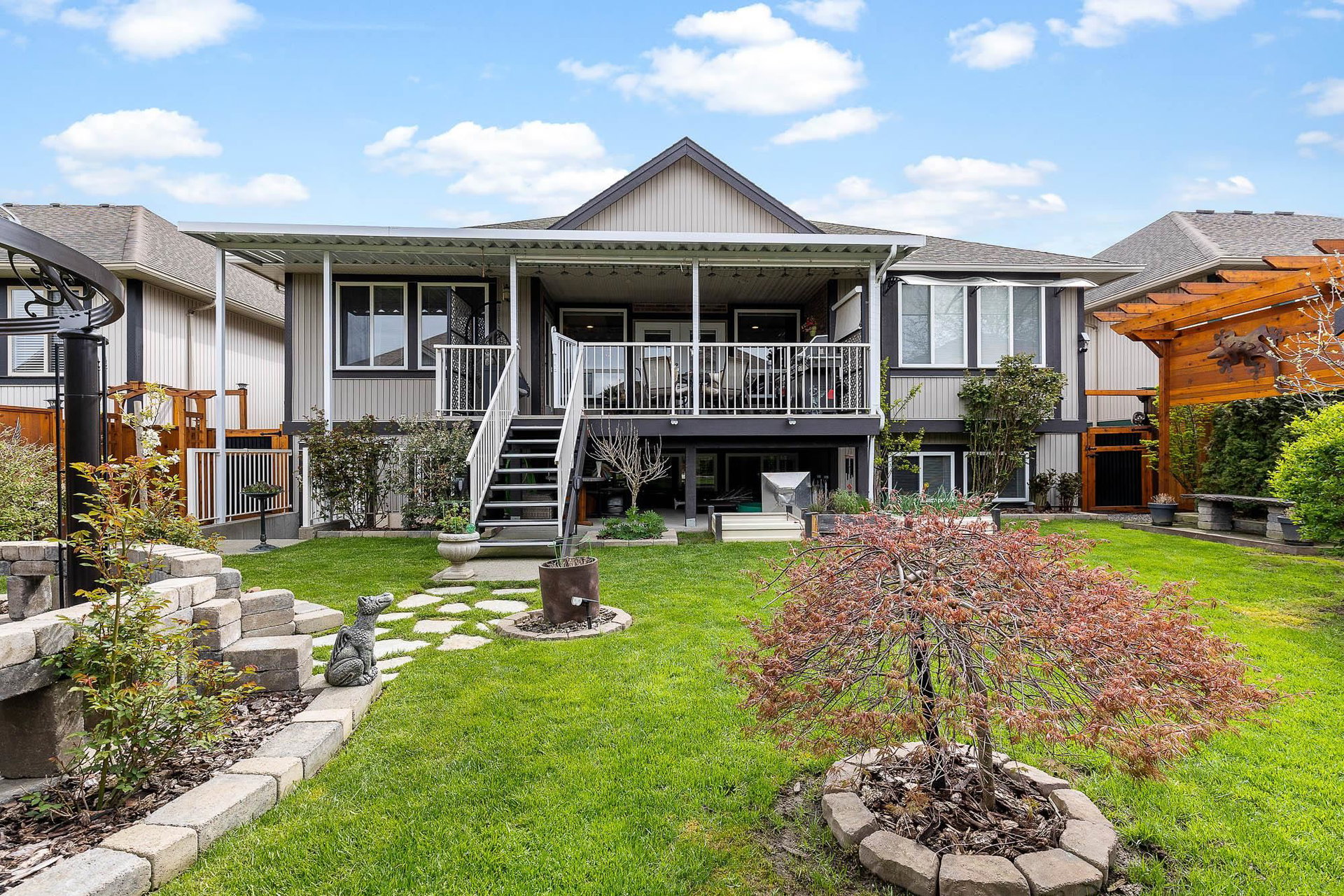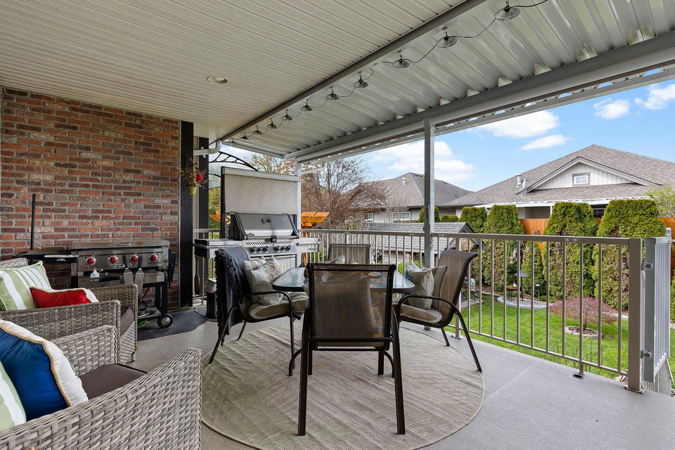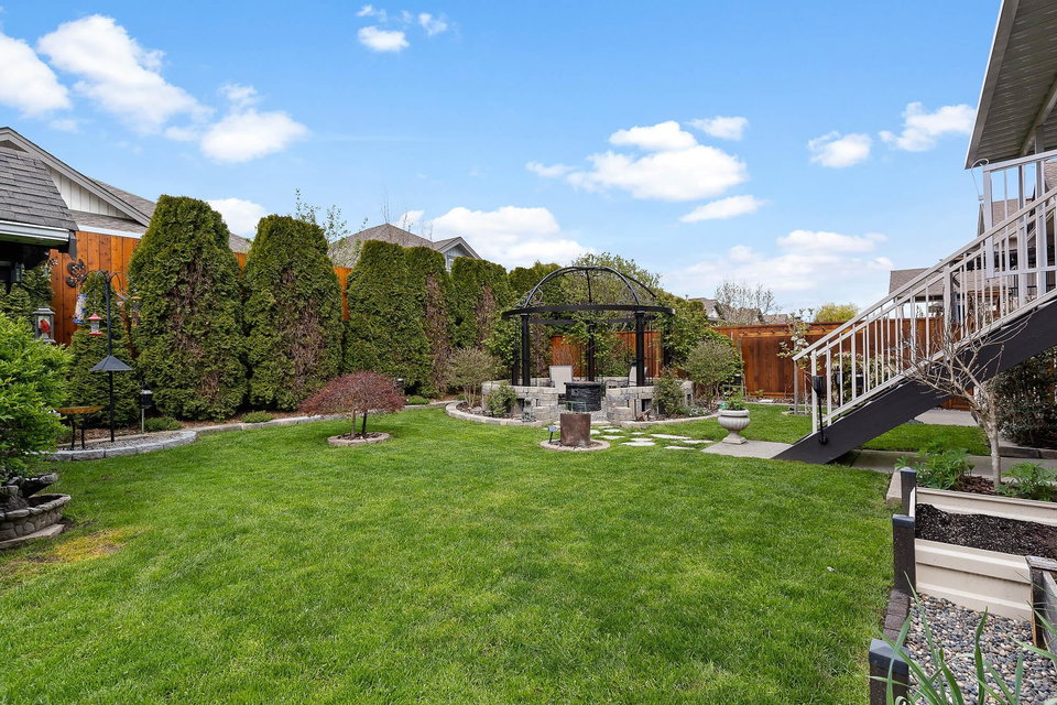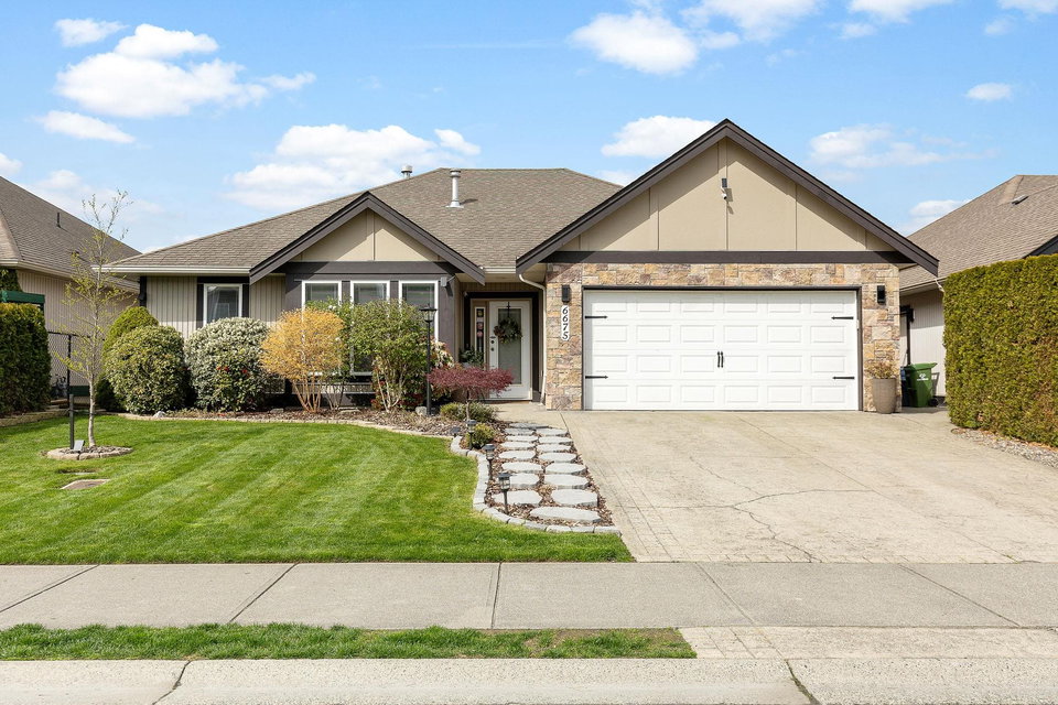 RENOVATED RANCHER W/ BSMT in beautiful central SARDIS! Steps to the golf course, restaurants, parks, and more- this location cannot be beat! Numerous recent updates including KITCHEN w/ soft close cabinets, quartz counters, SS appliances incl GAS RANGE, updated bathrooms, lighting, stonework, paint, & more. Large inviting great room w/ custom f/p brickwork, HUGE primary bdrm w/ w.i closet & 4 piece ensuite, dual entry office w/ hardwood flooring, & MASSIVE covered back patio w/ sunshades & gas outlets overlooking the ENCHANTING YARD. Raised gardens, inground sprinklers, pergola, newer fencing, shed, fruit trees & vines- incredible. Walkout bsmt w/ 2 guest rooms, wet bar, living area & STORAGE. Newer furnace, HWT, b.i. vac, A/C- this home is LOADED with extras and is 100% move in ready!