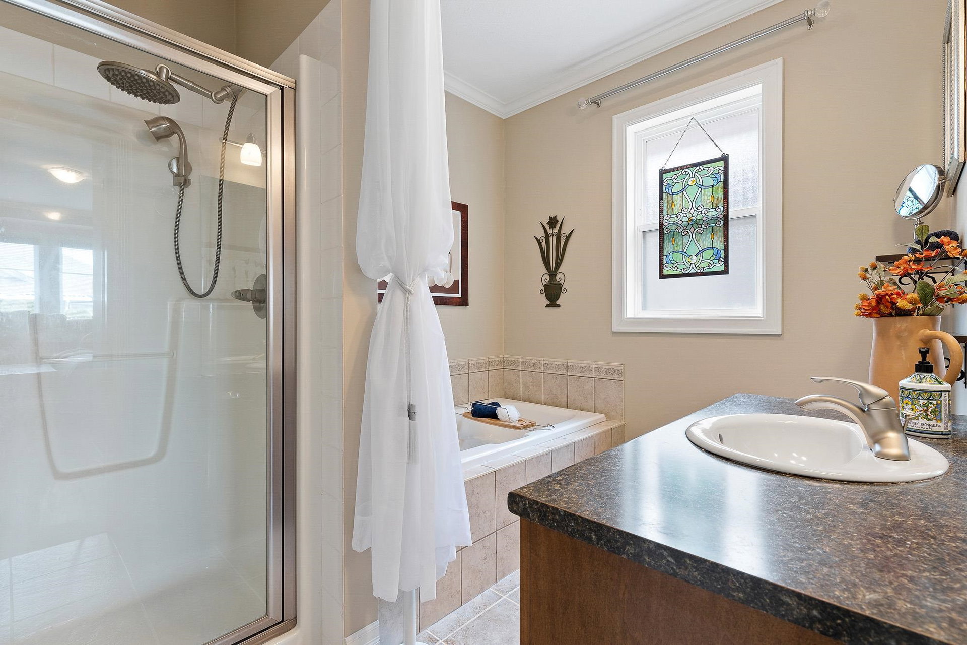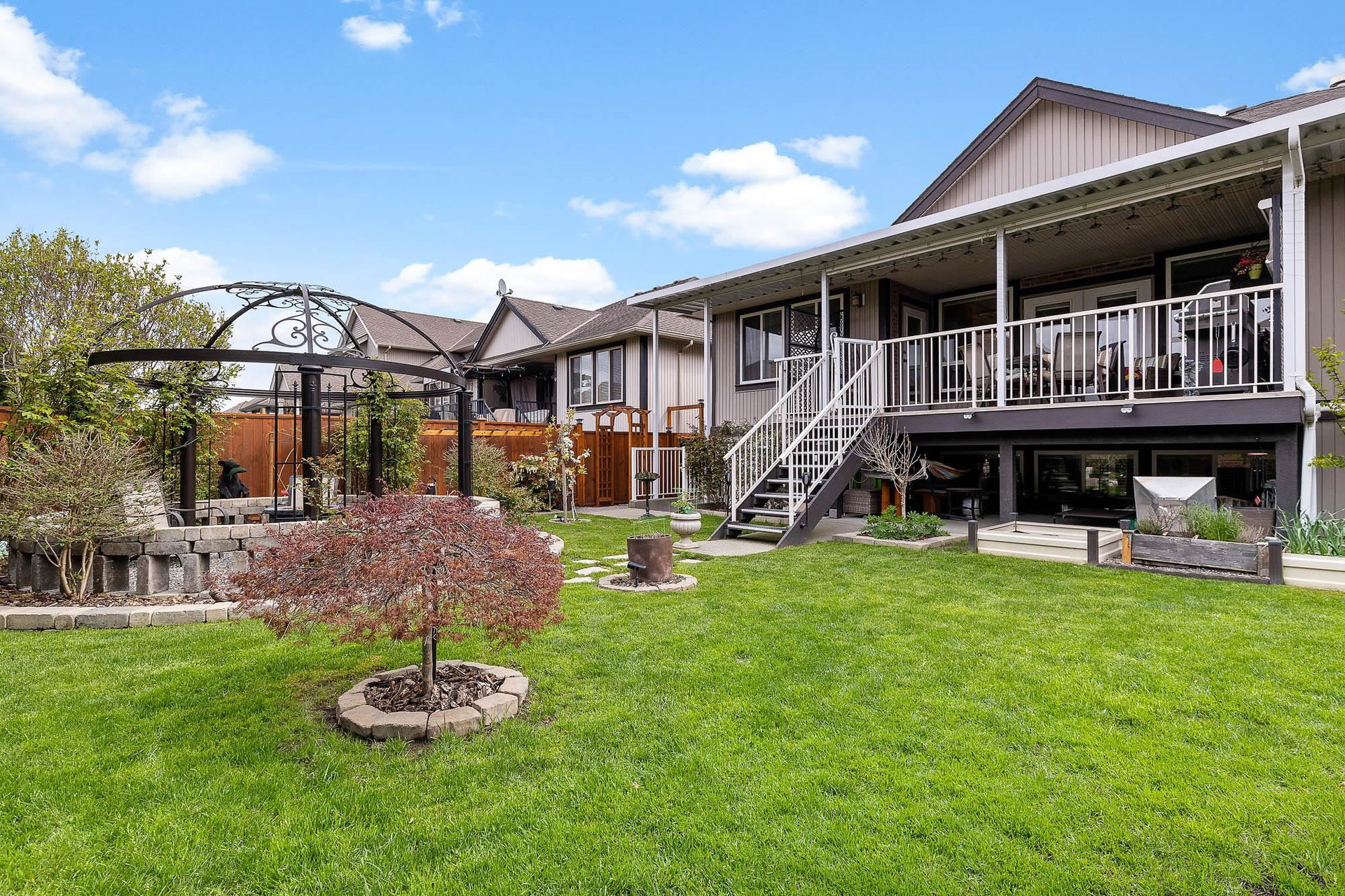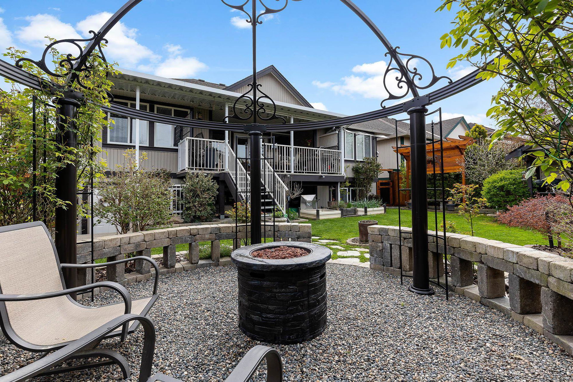 RENOVATED RANCHER W/ BSMT in beautiful central SARDIS! Steps to the golf course, restaurants, parks, and more- this location cannot be beat! Numerous recent updates including KITCHEN w/ soft close cabinets, quartz counters, SS appliances incl GAS RANGE, updated bathrooms, lighting, stonework, paint, & more. Large inviting great room w/ custom f/p brickwork, HUGE primary bdrm w/ w.i closet & 4 piece ensuite, dual entry office w/ hardwood flooring, & MASSIVE covered back patio w/ sunshades & gas outlets overlooking the ENCHANTING YARD. Raised gardens, inground sprinklers, pergola, newer fencing, shed, fruit trees & vines- incredible. Walkout bsmt w/ 2 guest rooms, wet bar, living area & STORAGE. Newer furnace, HWT, b.i. vac, A/C- this home is LOADED with extras and is 100% move in ready!