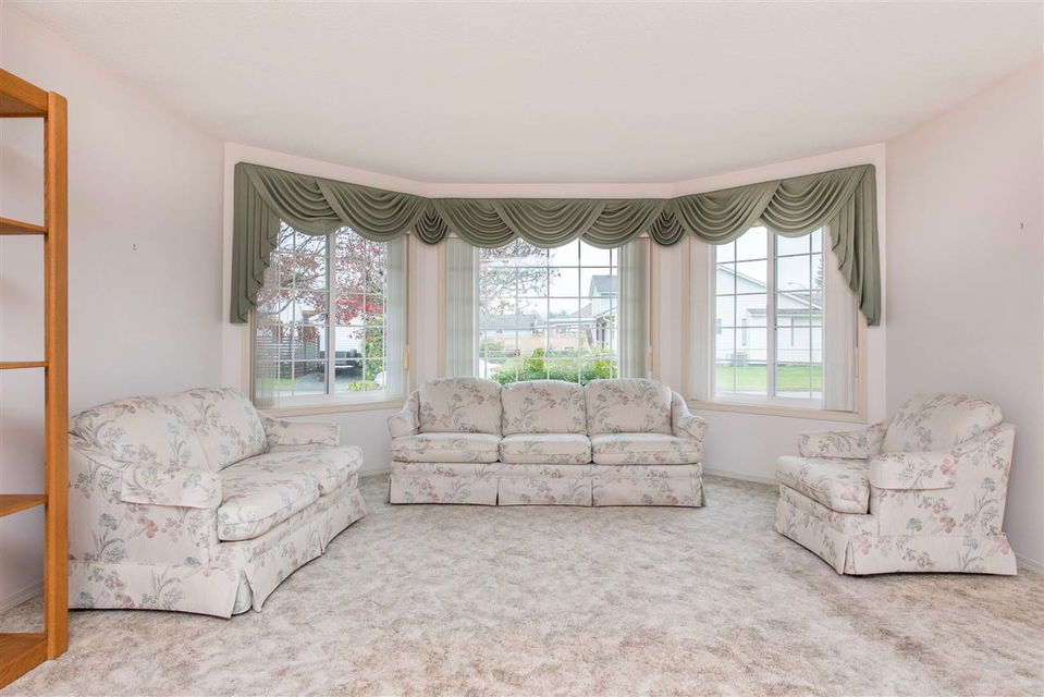 COACH LAMP DRIVE! Make your MOVE to this NEW LISTING on a highly sought after street. This MASSIVE 1800 sq ft 3 bdrm & 2 bathroom RANCHER has a lovely SPACIOUS LAYOUT w/ large rooms and ample daylight. The open concept kitchen w/ eating bar flows into a nice sized family room w/ access to the peaceful backyard & COVERED PATIO. Complete w/ 10′ privacy hedges & backing farmers fields- this is a dream location to take in the southern mountain views. Many updates over the years including Roof & Vinyl Windows (2012), Furnace & AC (2017), & Hot Water Tank (2020). Oversized DOUBLE GARAGE w/ access to the crawl space, PLUS a TRIPLE WIDE DRIVEWAY; great for the RV or boat! Immediate possession possible- come put up your Christmas Tree!