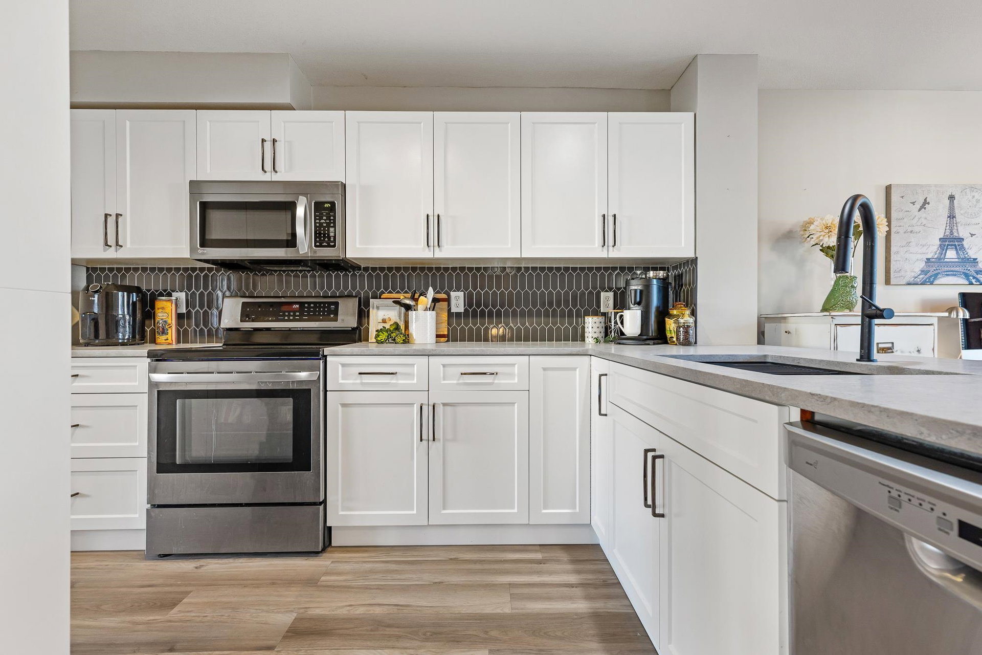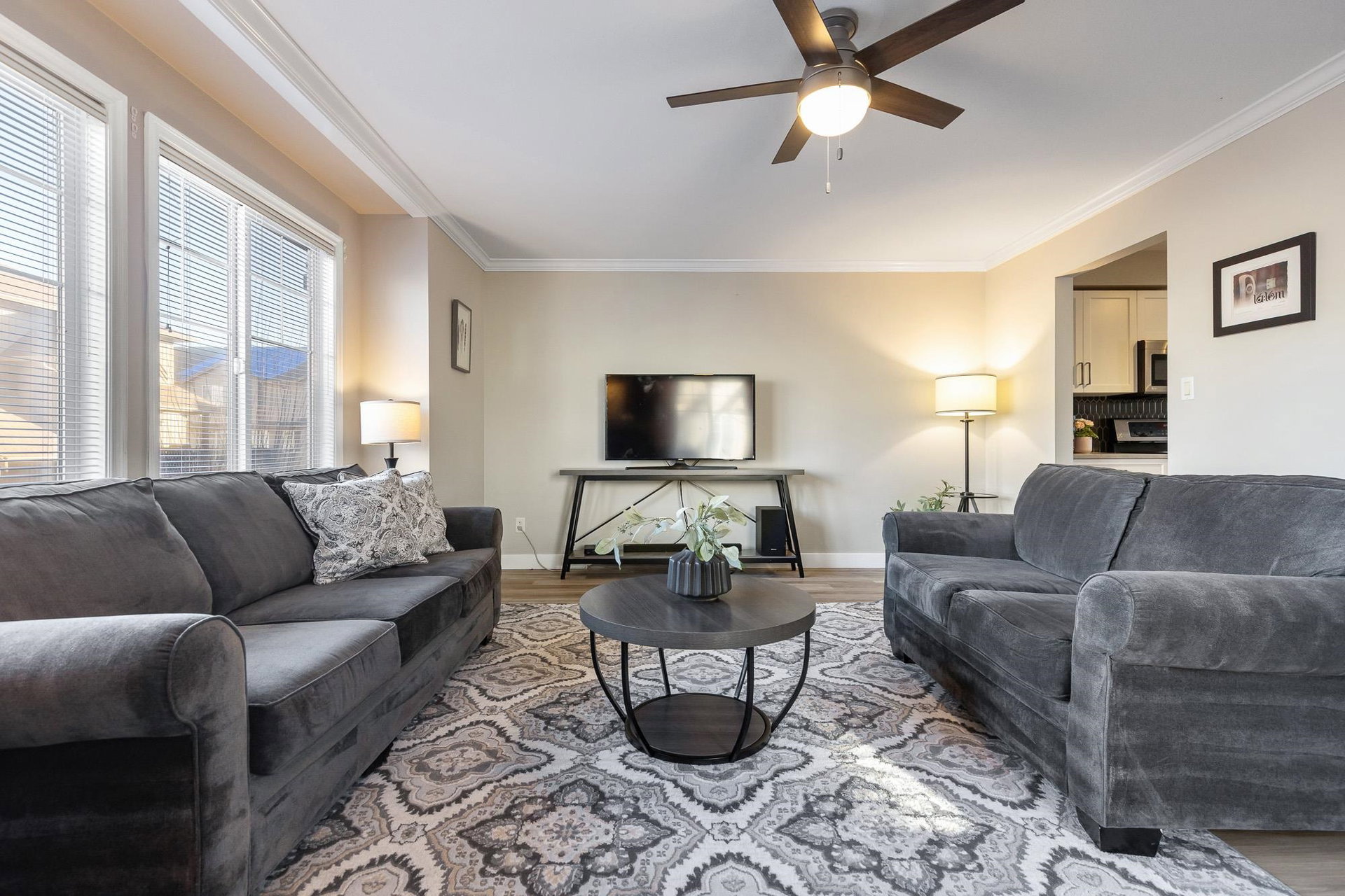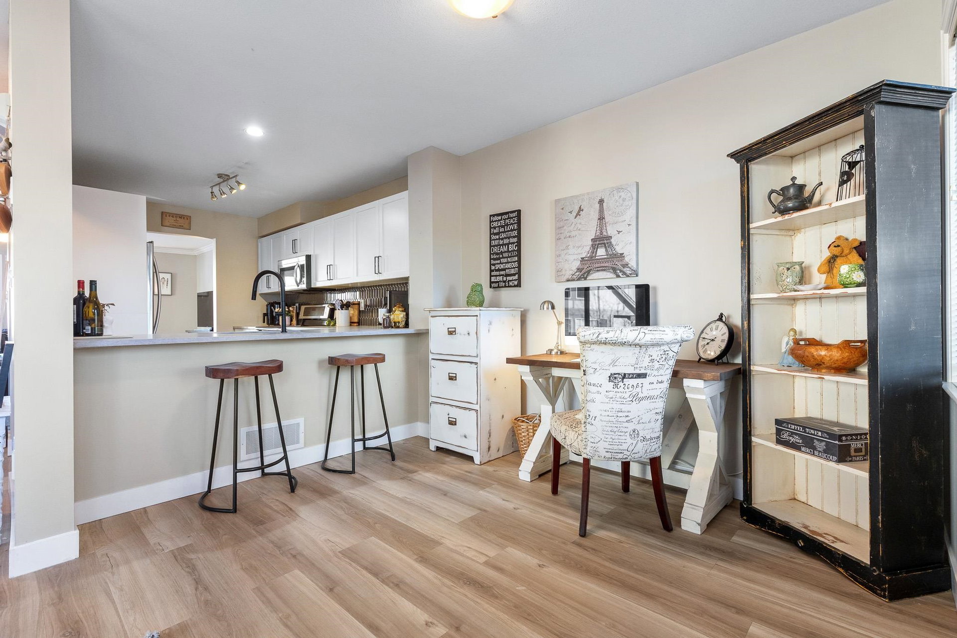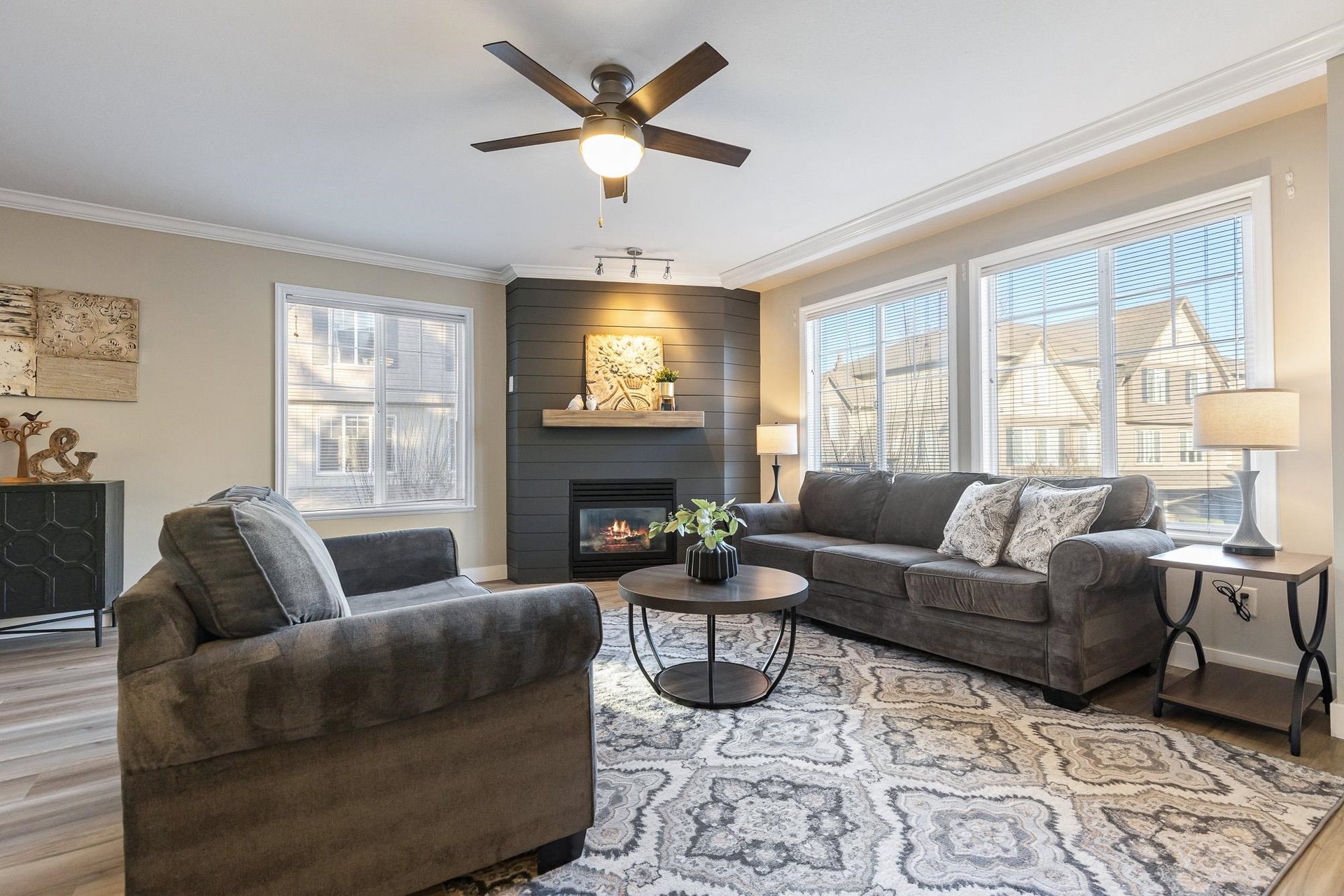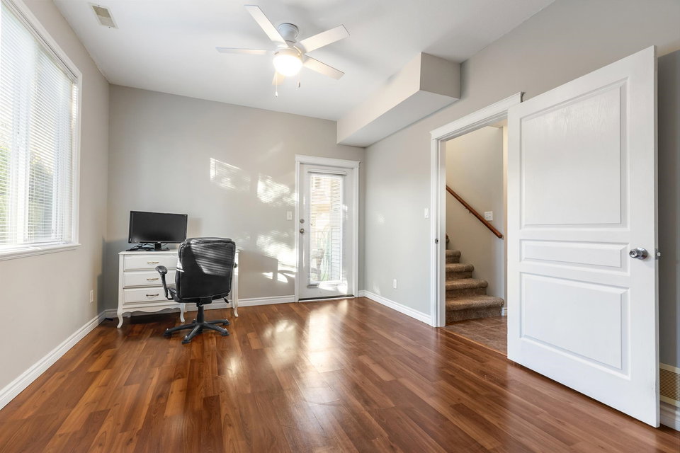 Fantastic 3 bed END UNIT townhouse in a PRIME central location! The stunning kitchen features white soft-close shaker cabinets w/TONS of storage, SS appliances, quartz countertops, chic backsplash & eating bar. Seamlessly flowing into the SPACIOUS living area w/shiplap gas f/p & large windows allowing for AMPLE natural light throughout. The cozy balcony is just off the lovely dining area and includes a gas BBQ hookup! Upstairs offers 3 generous bedrooms — the primary boasts a 3 pc ensuite w/W.I.C! The other 2 rooms feature window seats & sizable closets, plus laundry upstairs. Downstairs includes a 2 pc bath & flex space IDEAL for a rec room, office, or guest room, PLUS a cute fenced yard PERFECT for young families. A SUPERB place to grow, gather, and call home.