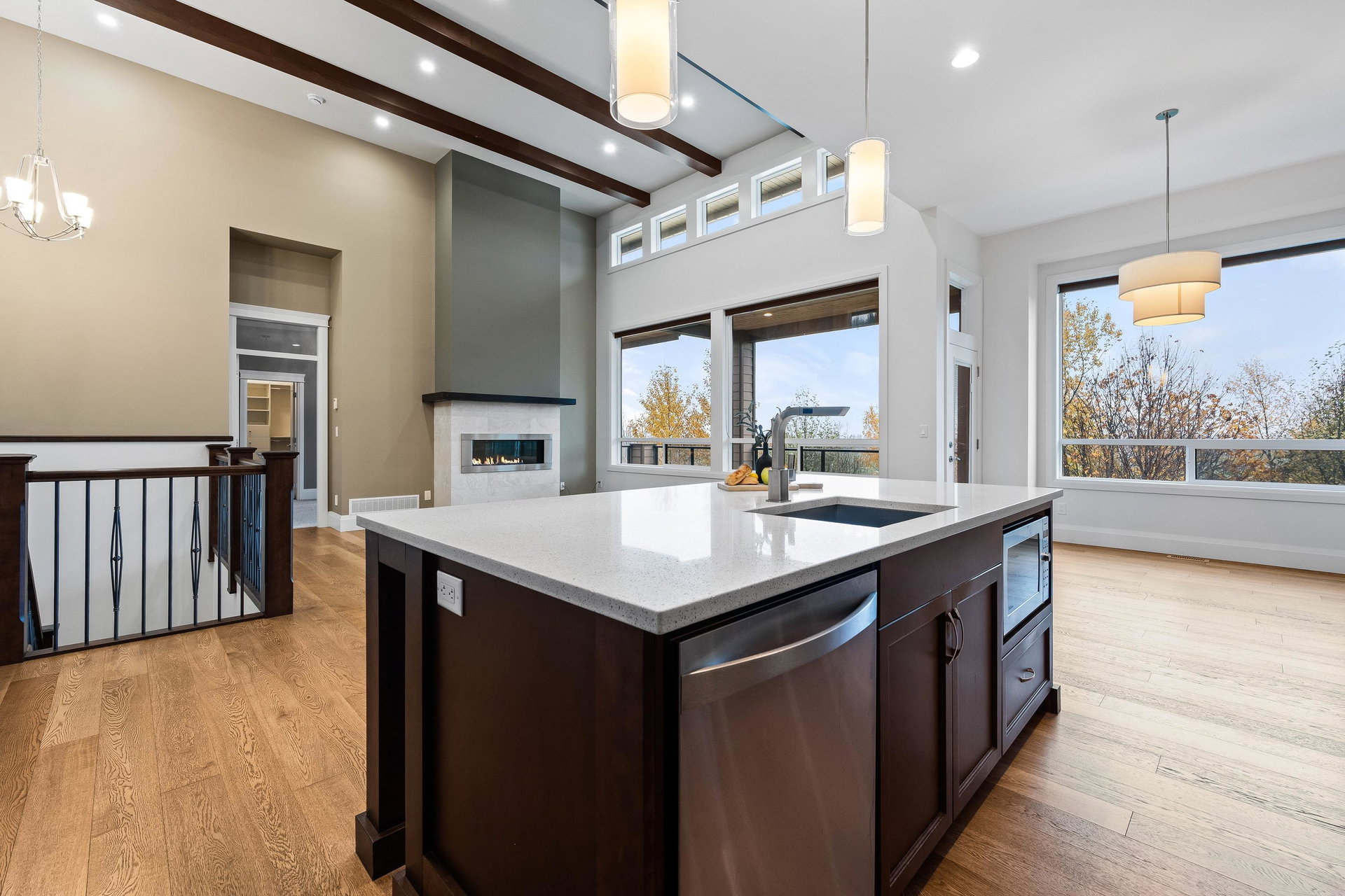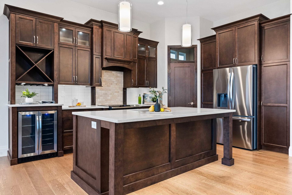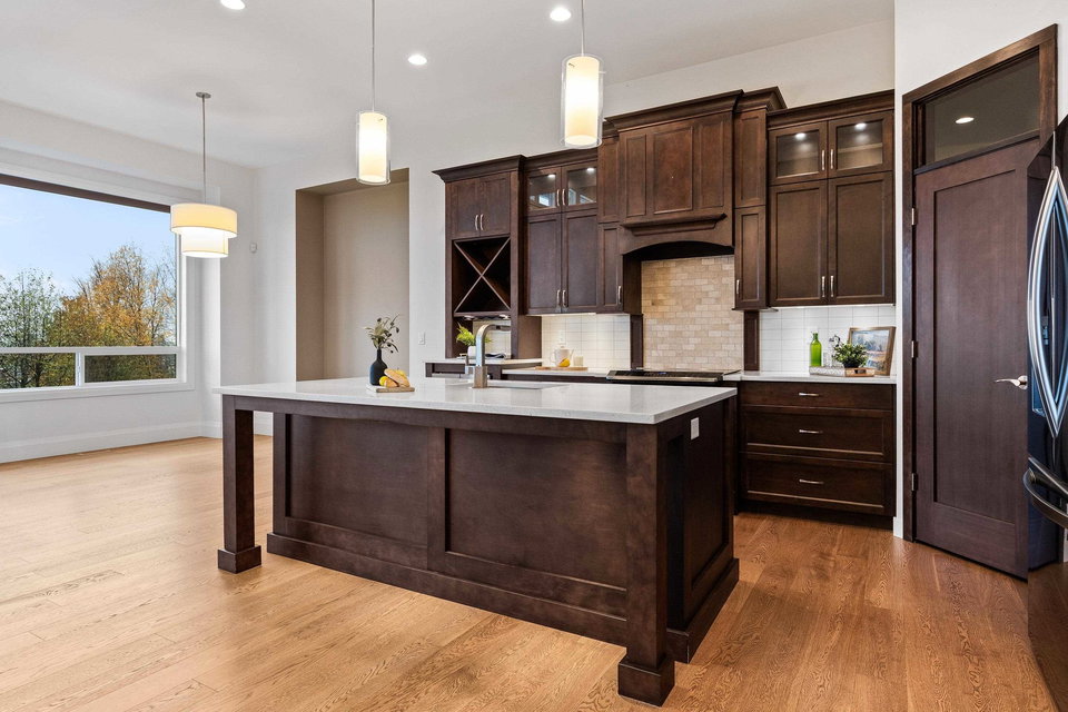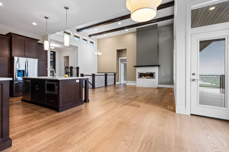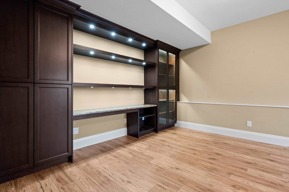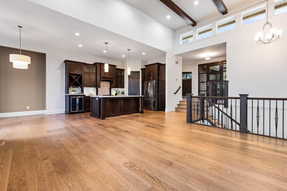 FABULOUS rancher w/basement in one of the BEST locations in Sunridge Estates! This 3,512 sq.ft. home offers BRIGHT, luxurious living backing the golf course. The open-concept main floor features high ceilings, large windows, modern gas fireplace, and access to a covered patio with serene views. The gourmet kitchen includes rich wood cabinetry, quartz counters, stainless steel appliances, new fridge, beverage cooler, pantry, and island with storage and eating bar! The spacious primary on main has a 5-pc ensuite with soaker tub, dual sinks, walk-in shower, W.I.C. with built-in shelving, and patio access. Downstairs offers 3 bedrooms, 3-pc bath, spacious office, rec room, and abundant storage. A must-see!