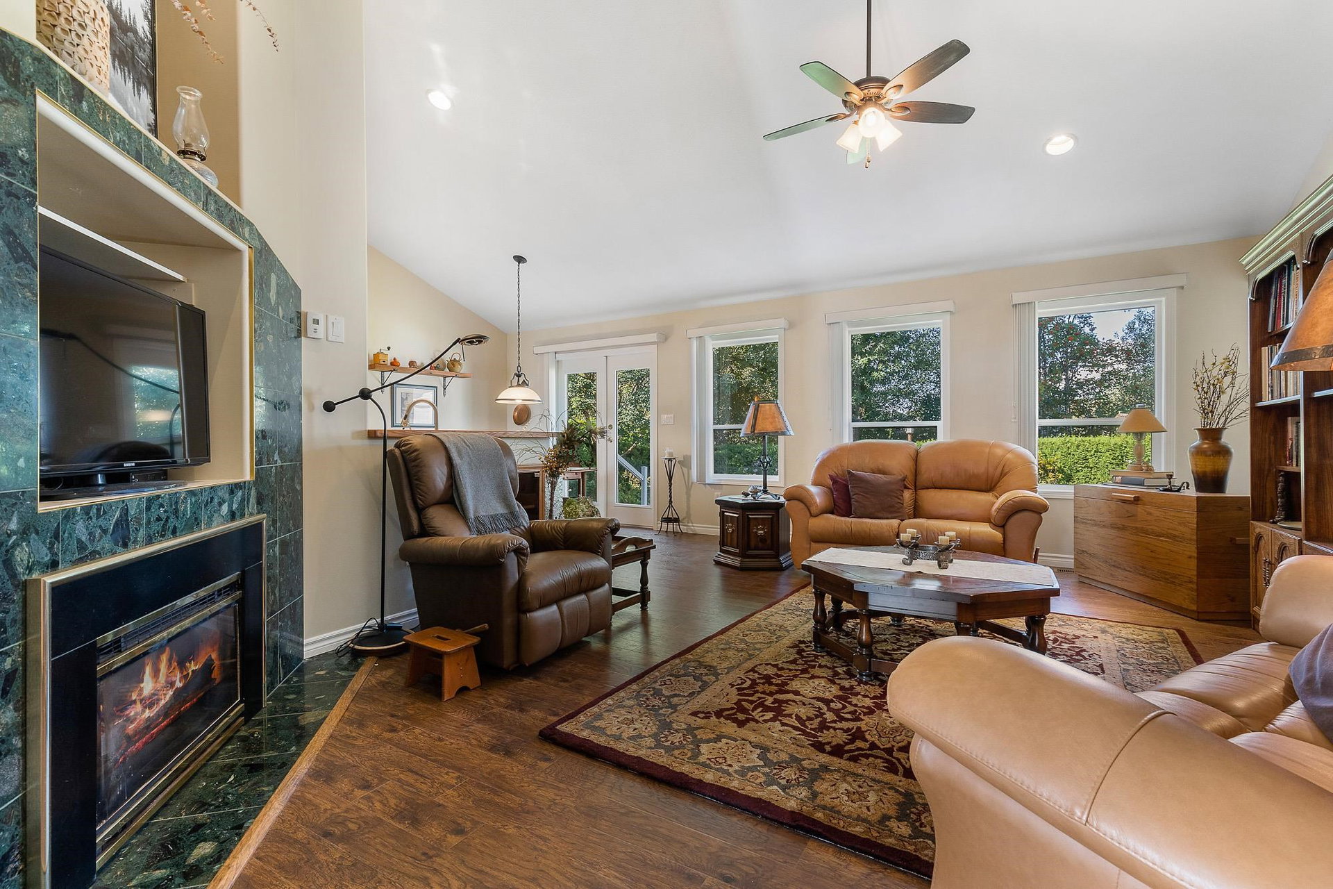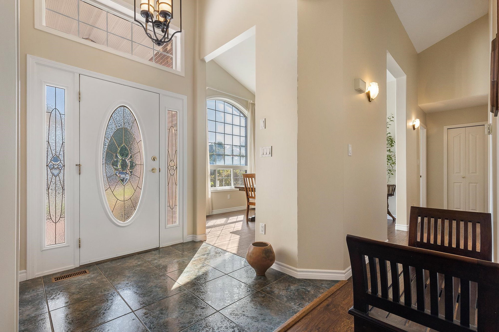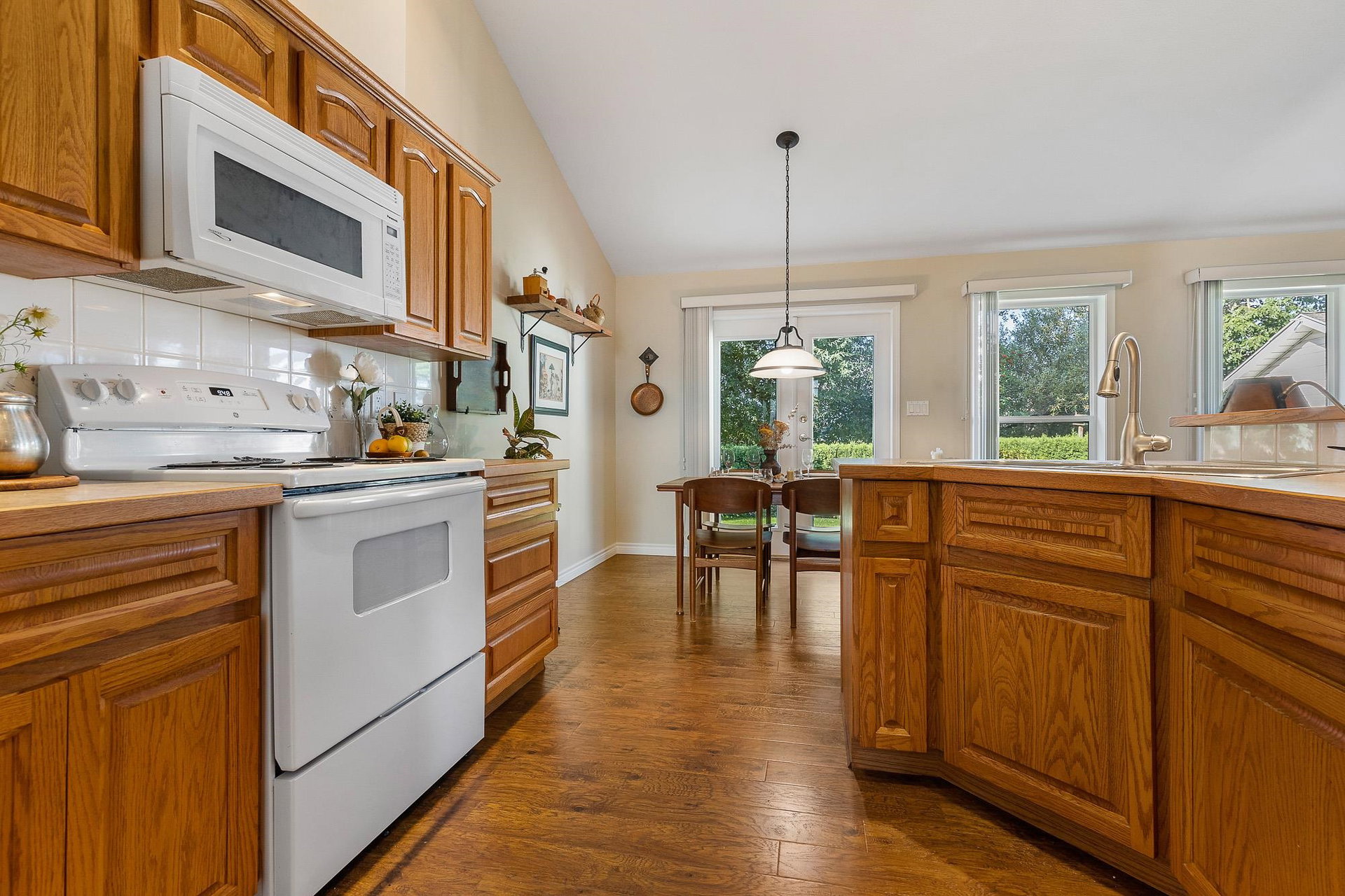 IMMACULATE RANCHER in highly desirable location backing Luckakuck Trail on the quiet culdesac of Sapphire Crsnt! Steps to malls, drs, restaurants, public transpo- this is the MOST convenient Sardis location! Customed designed, this sprawling 1,624 sq ft home has amazing VAULTED CEILINGS throughout, giving it a grand feeling & allowing ample natural light. The tranquil setting w/ mature trees & greenspace behind allows for a PRIVATE yard w/ no neighbors visual. Enjoy a covered patio off primary suite, fenced yard for the pets & pwrd 12×10 shed! Incredible layout w/ open concept kitchen, spacious living room w/ feat. gas f/p, ample storage, modern paint & fixtures. Oasis primary suite w/ w.i.c & 4 pc ensuite w/ separate soaker tub & walk in shower. Oversized dbl Garage & RV Parking possible!