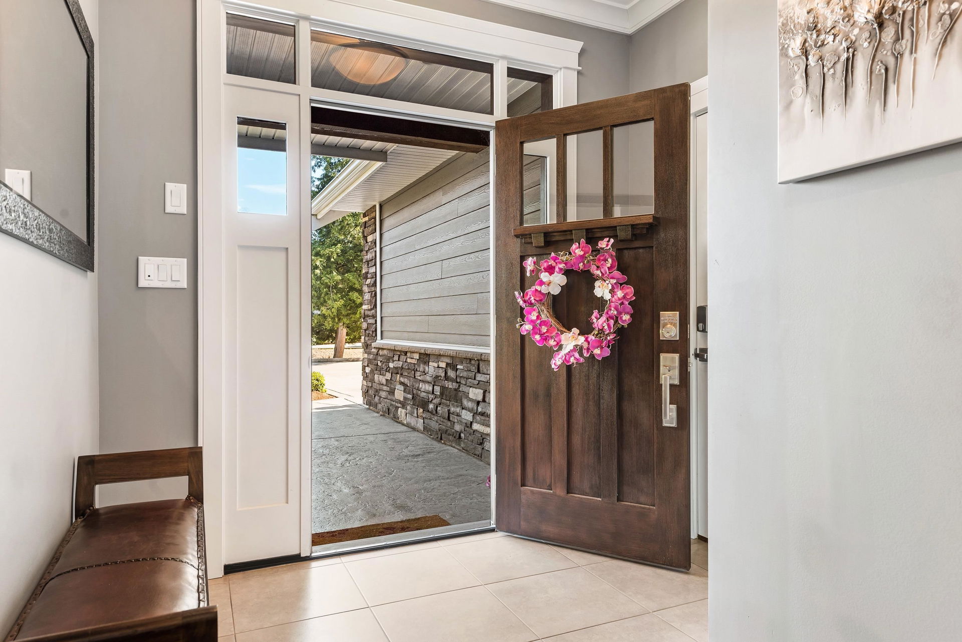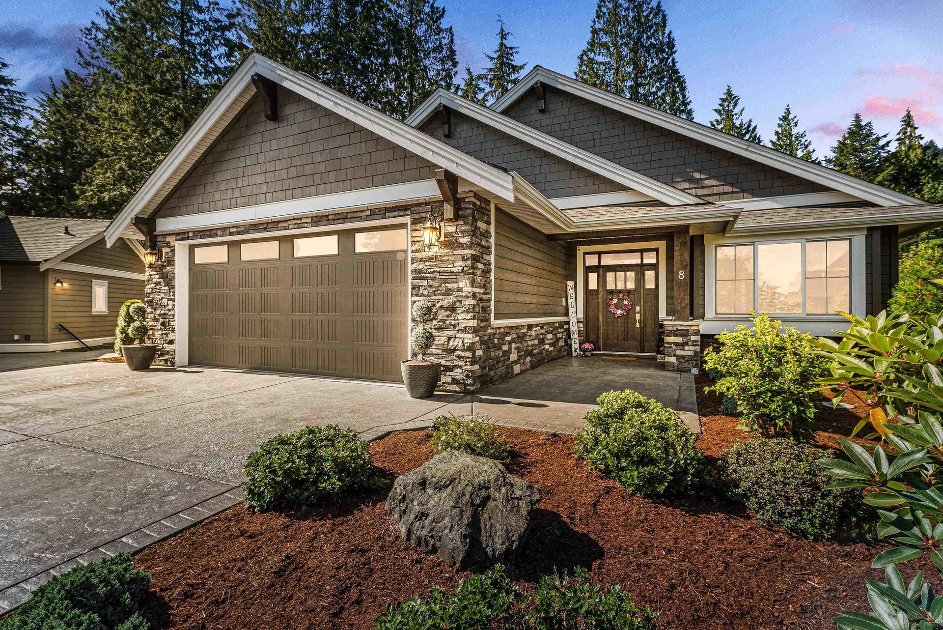 Cream of the CROP! Incredible 3,584 sq ft RANCHER w/ WALKOUT BSMT in prestigious Riverstone Estates on a 11,282 sq ft PRIVATE lot! Main floor feat. hardwood flooring, upgraded kitchen w/ granite & SS appliances, & beautiful living room w/ coffered beamed ceilings & floor to ceiling rock fireplace. Master suite w/ custom closet & 5 piece ensuite & deck access. Escape downstairs to 2 LARGE bdrms & den, massive rec room (great teen space!), & fully equipped 584 sq ft GYM. Extra long dbl garage for a truck, parking for 9, fire pit in backyard, generator hook up, AC, security- this home is LOADED. EXCLUSIVE gated development of 12 homes only 5 mins to Garrison Crossing, Cultus Lake, & Yarrow.