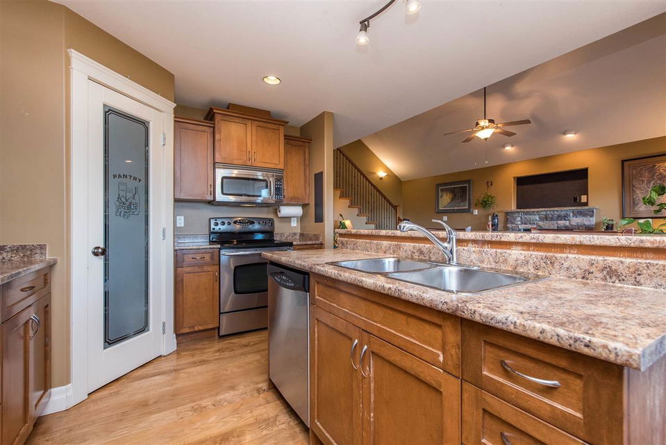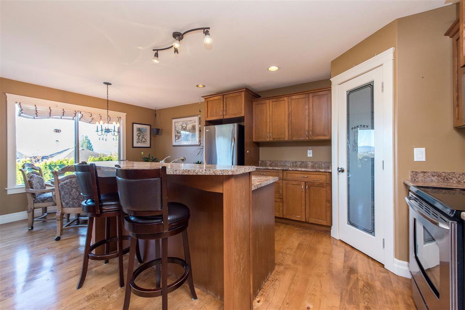 BEAUTIFUL 3241sq ft FAMILY HOME w/ spacious 1 bdrm IN-LAW SUITE! Amazing layout w/ MASTER ON THE MAIN FLOOR, vaulted living room ceilings, large den/office, & open concept kitchen w/ SS appliances & tiered eating bar. Quality finishes including hardwood flooring & maple cabinetry. Nice partially covered patio w/ western sunset views to the valley. The upper floor consists of 2 LARGE bedrooms plus a full bathroom- great for giving the kids some space! Added bonus- MEDIA ROOM/ rec room in bsmt accessible for the main home ONLY. The BRIGHT fully SELF-CONTAINED suite has a full kitchen, eating bar, MASSIVE living room, oversized bdrm, & laundry facilities. Dbl garage & triple wide driveway. Built in vac & CENTRAL AIR CONDITIONING! Call today for the showing schedule to book your viewing!