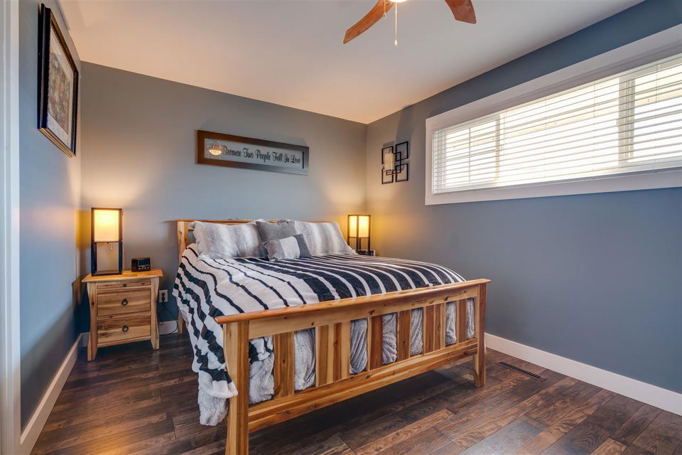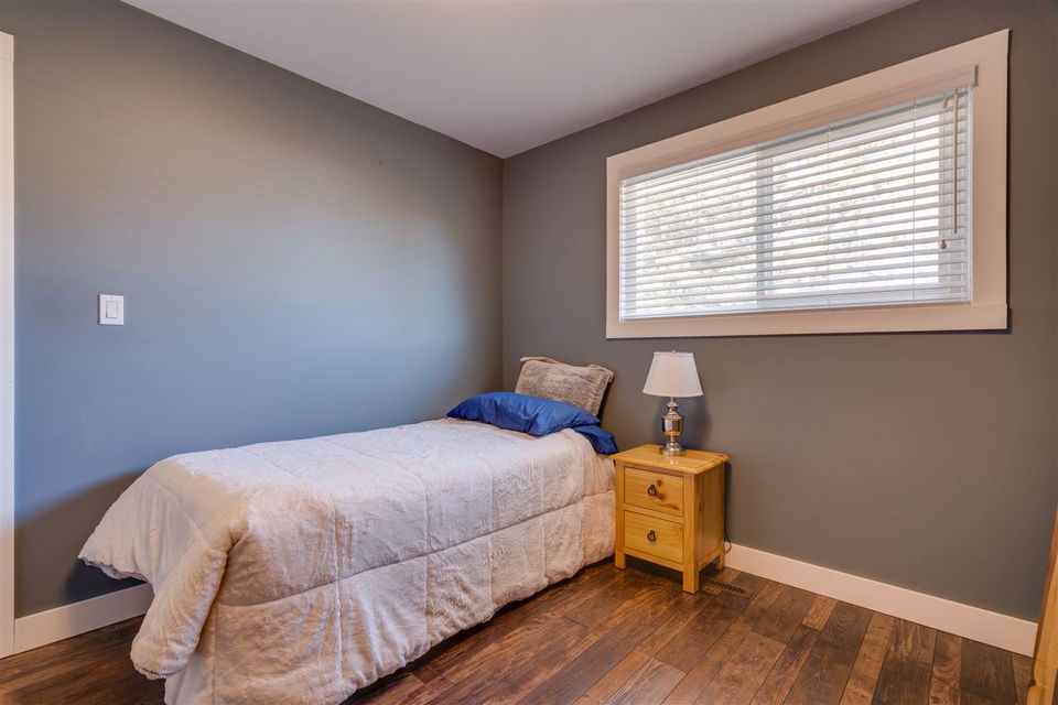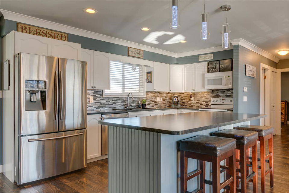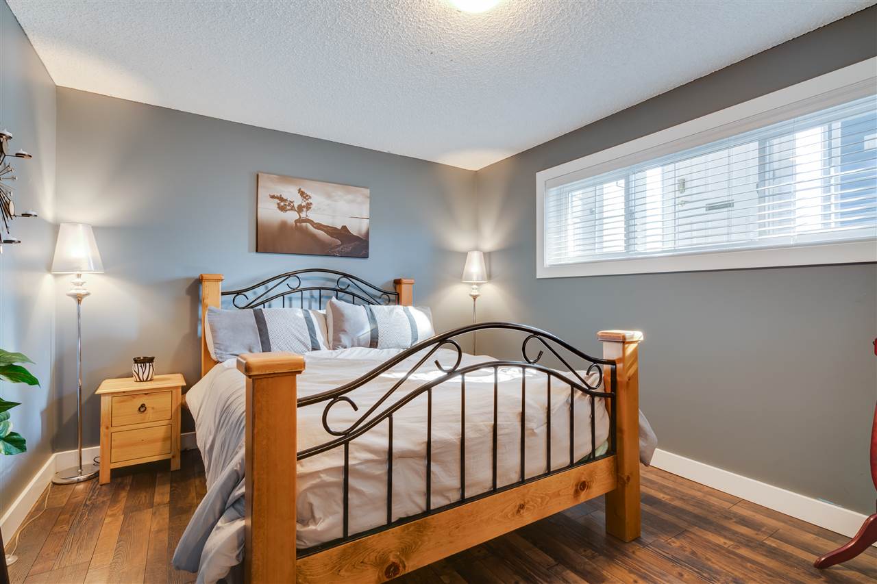 RENOVATED 4 bedroom family home w/ GATED RV PARKING! Sitting on a large 6930 sq ft manicured corner lot w/ mountain views, this home is move-in-ready! Main floor features updated flooring, paint, a gorgeous open concept kitchen w/ island, new counters, tiled backsplash, SS appliances, & a spacious living room w/ stylish electric fireplace. Step from your dining room to the nice enclosed solarium which has steps down to the nice lower patio w/ hot tub. Basement level w/ 2 bedrooms, full bathroom, laundry room w/ storage, & a great rec room for the kids or “man cave”. Attached single car garage, side RV parking, PLUS room for 6 in the driveway. Walking distance to schools, parks, & shopping, & only 5 mins to HWY #1 and the new Molson Brewery. Great investment & great house- come by and see!