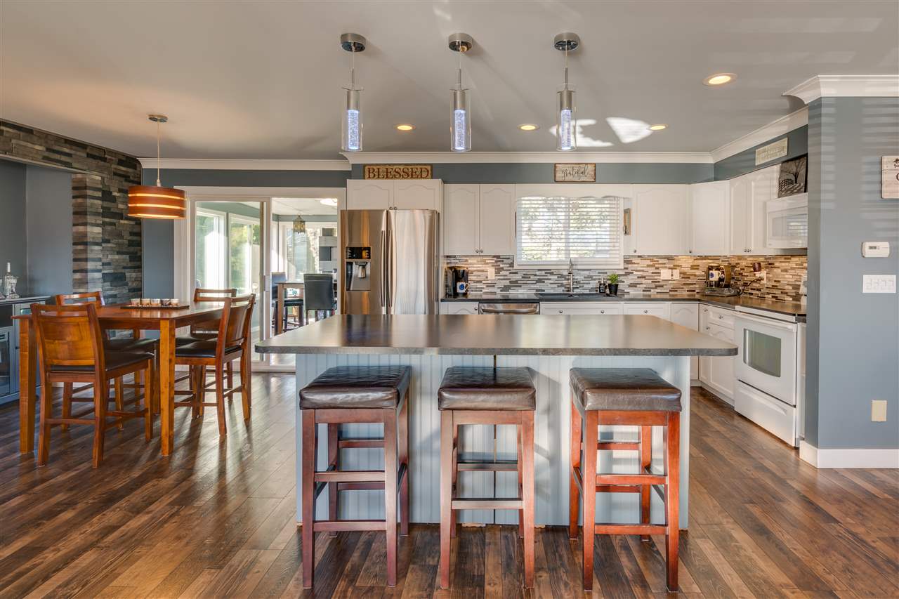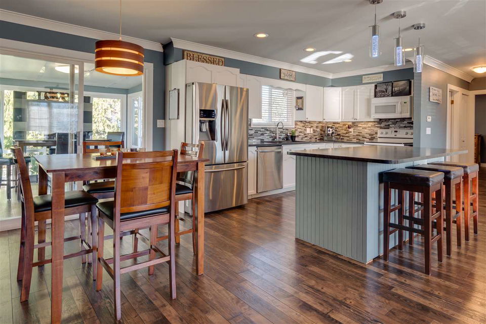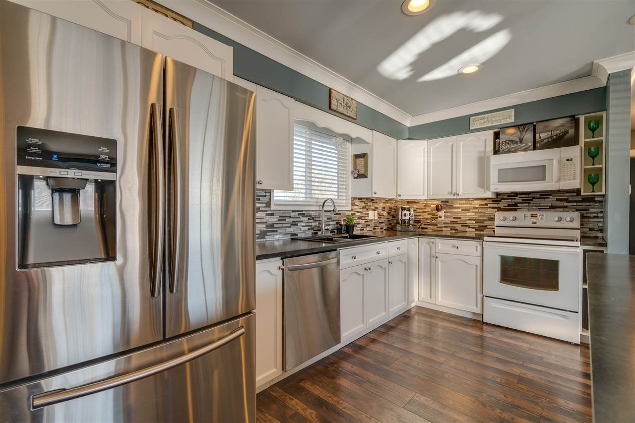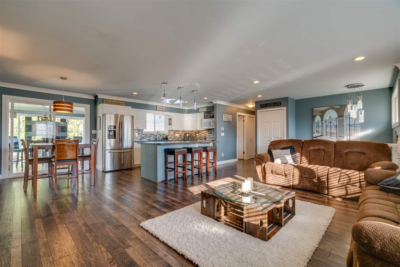 RENOVATED 4 bedroom family home w/ GATED RV PARKING! Sitting on a large 6930 sq ft manicured corner lot w/ mountain views, this home is move-in-ready! Main floor features updated flooring, paint, a gorgeous open concept kitchen w/ island, new counters, tiled backsplash, SS appliances, & a spacious living room w/ stylish electric fireplace. Step from your dining room to the nice enclosed solarium which has steps down to the nice lower patio w/ hot tub. Basement level w/ 2 bedrooms, full bathroom, laundry room w/ storage, & a great rec room for the kids or “man cave”. Attached single car garage, side RV parking, PLUS room for 6 in the driveway. Walking distance to schools, parks, & shopping, & only 5 mins to HWY #1 and the new Molson Brewery. Great investment & great house- come by and see!