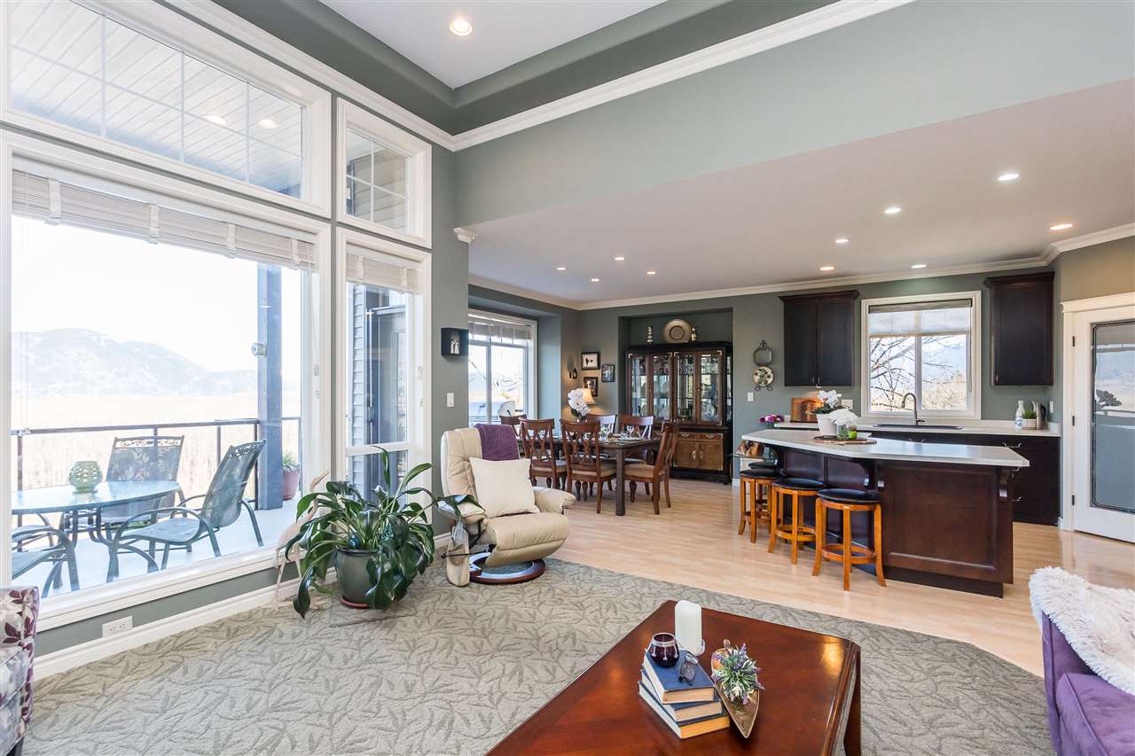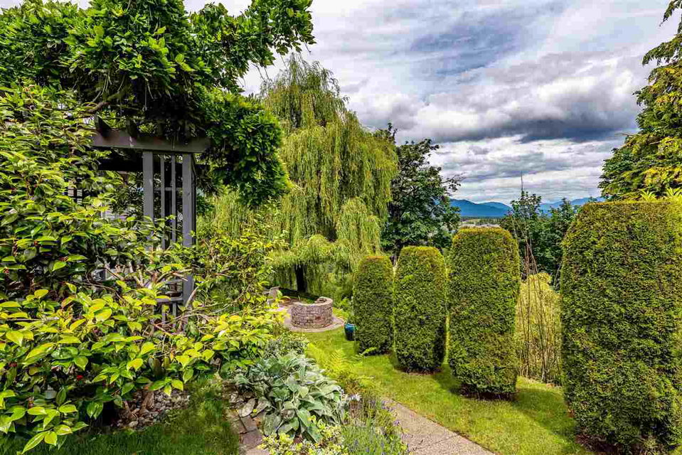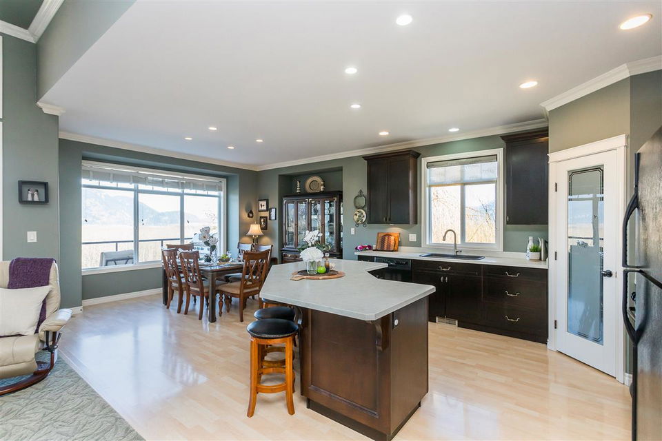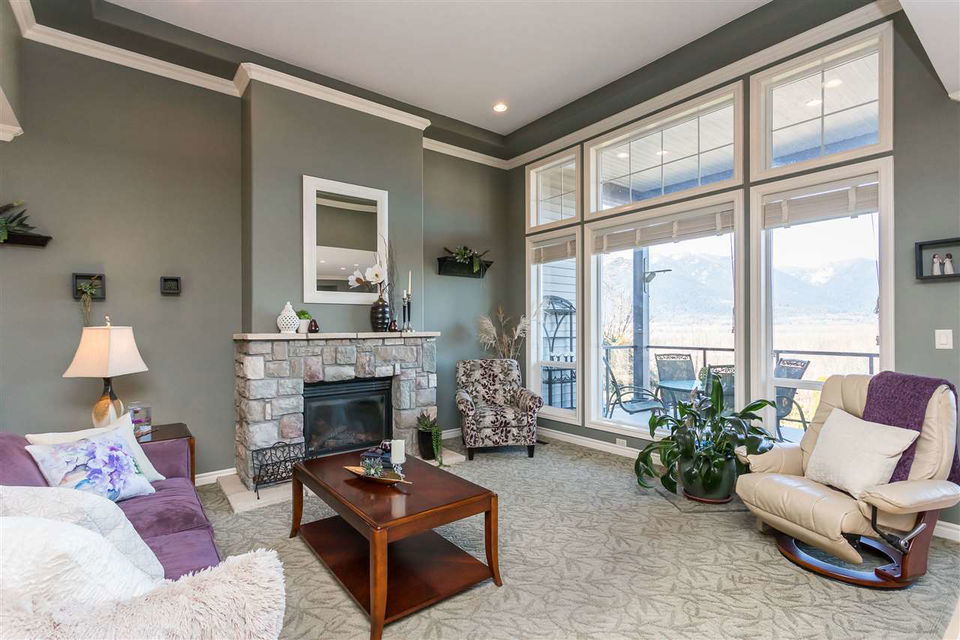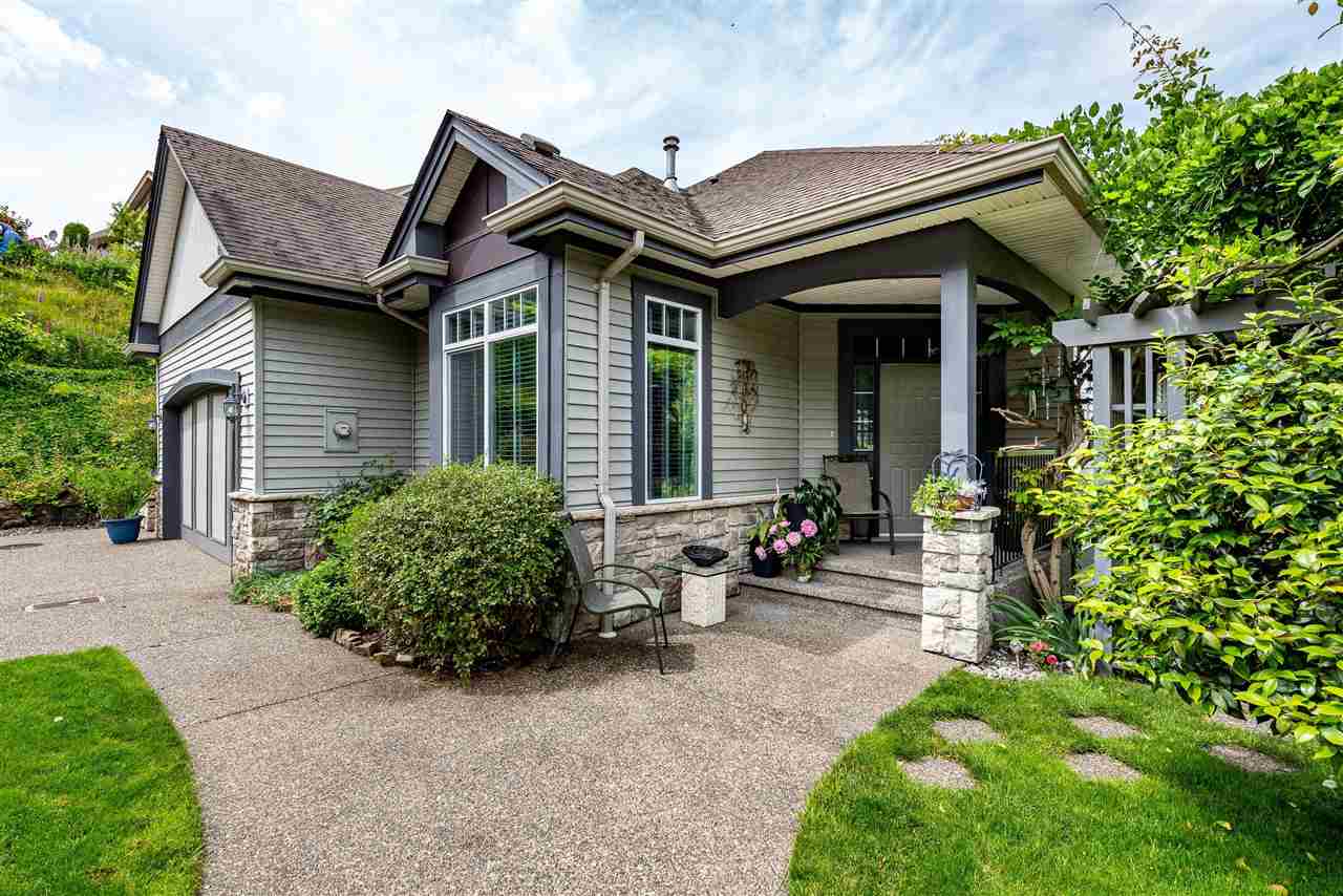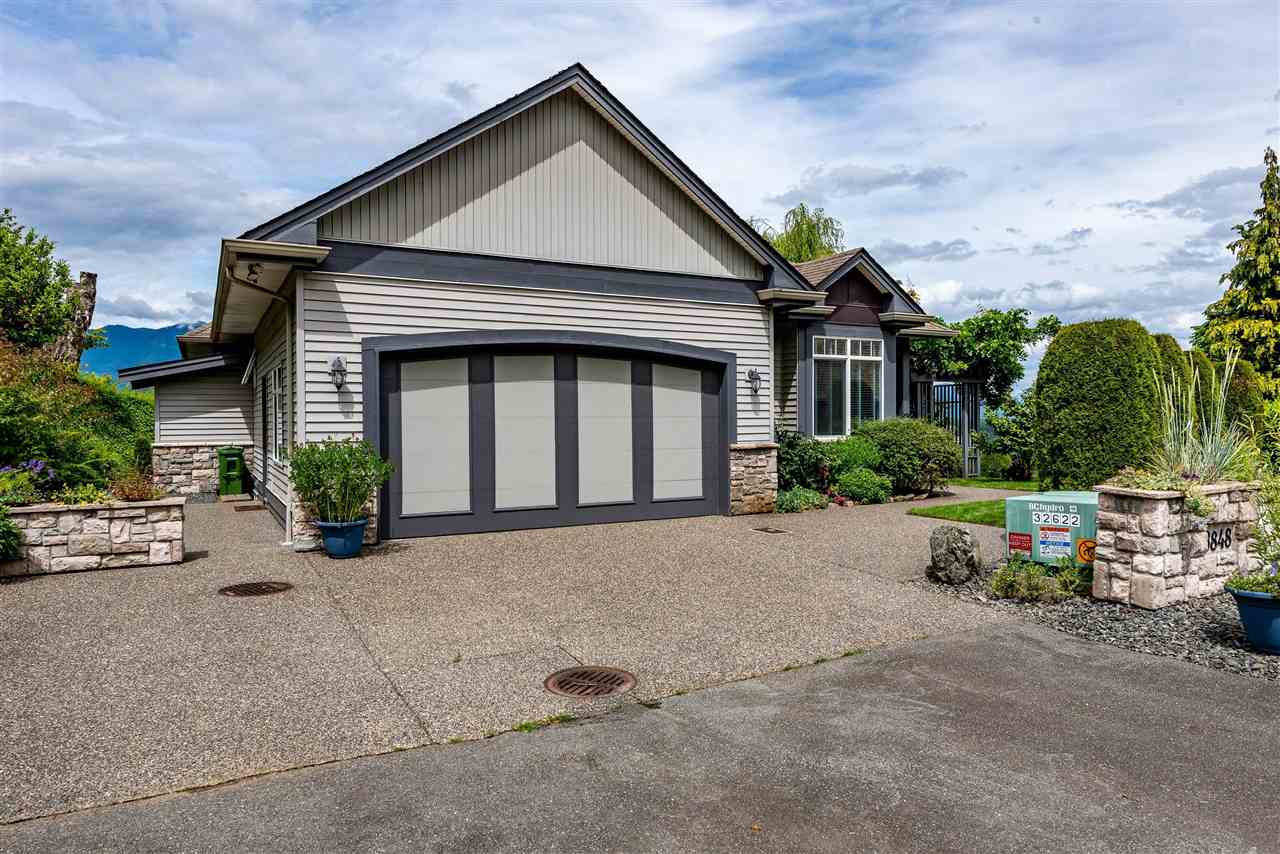 RIVER VIEW PROPERTY on a 1 ACRE LOT! Nestled down a private driveway on beautiful Chilliwack Mountain, this 3157 sq ft RANCHER W/ DAYLIGHT WALKOUT BASEMENT has been lovingly maintained & updated by the original owners. Grand living room w/ vaulted ceilings, gas fireplace, and floor to ceiling WINDOWS to take in the BREATHTAKING scenery. Open concept kitchen w/ maple cabinets, gas range, & oversized entertainment island. Large master bedroom on main w/ private ensuite & walk in closet. Basement w/ 3 guest bedrooms, full bathroom, family room, and a roughed in wet bar area- excellent space for a man cave, teen hangout, or potential INLAW SUITE! Immaculately kept grounds w/ privacy hedging, perennials, wisteria, & willow trees to enjoy. This is truly a gem- a unique oasis!