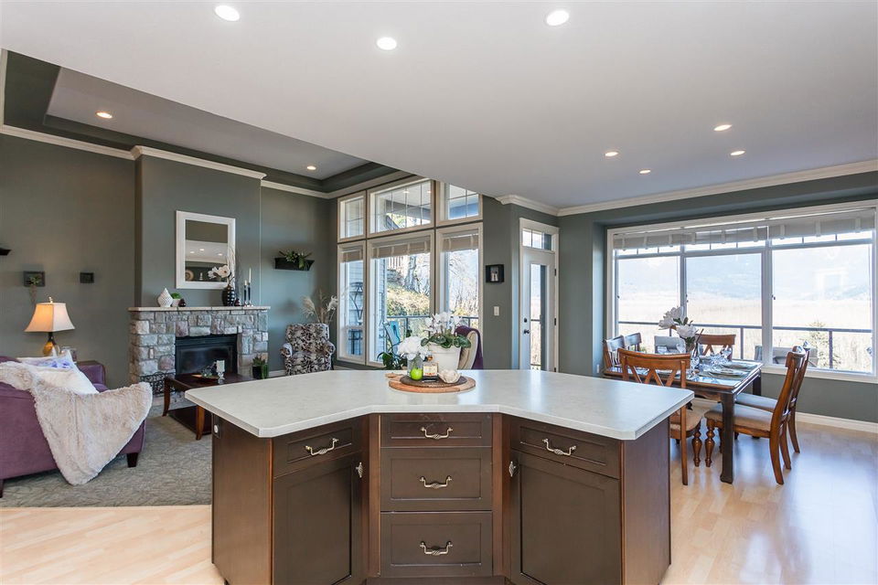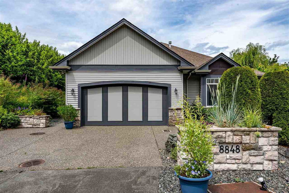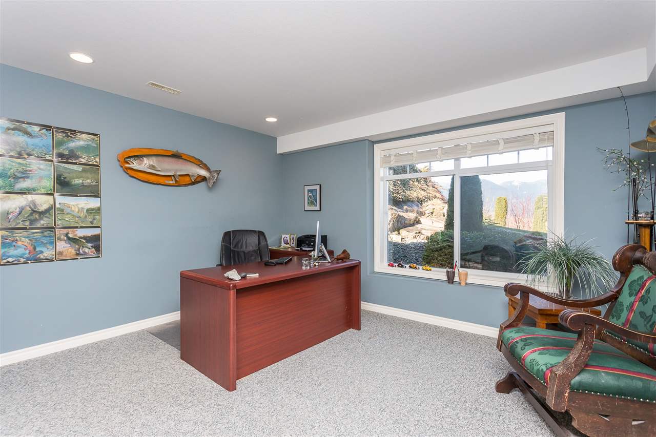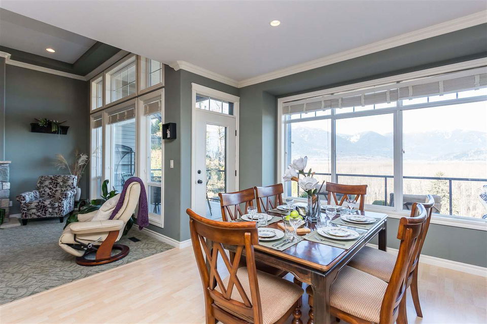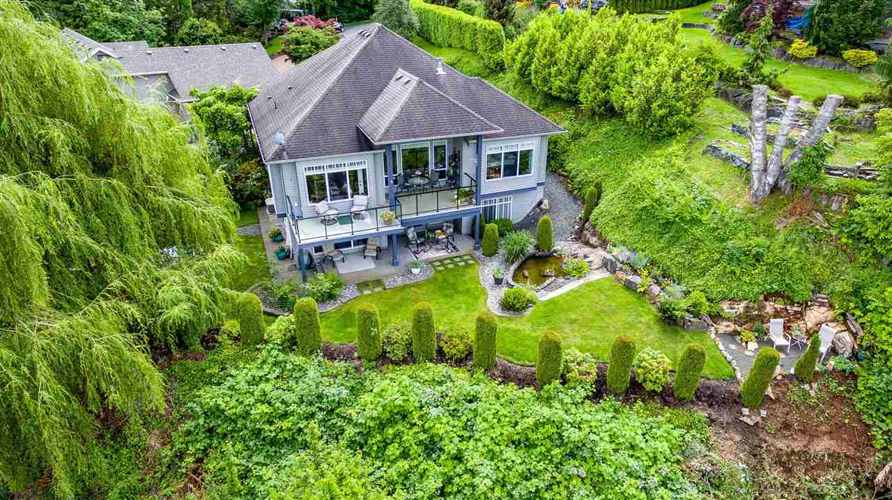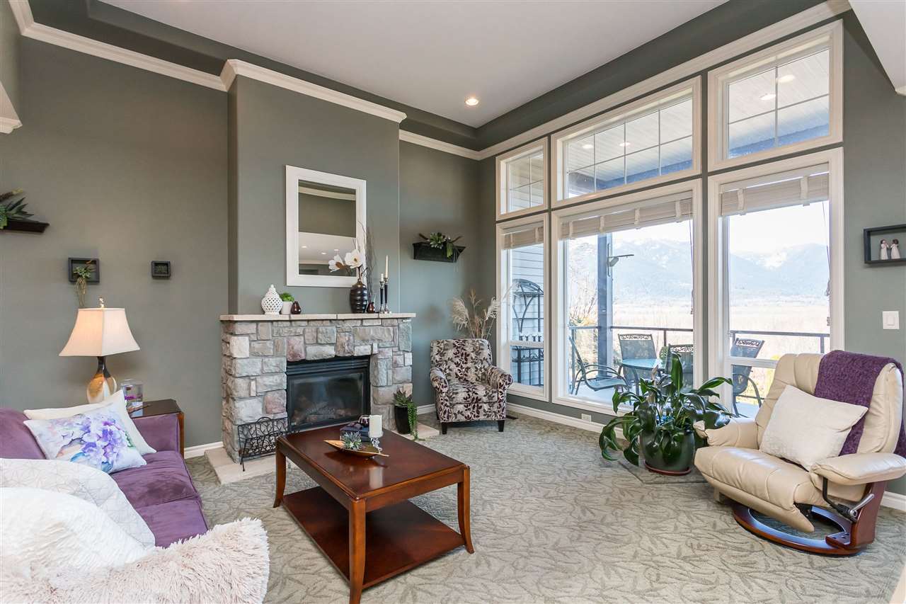 RIVER VIEW PROPERTY on a 1 ACRE LOT! Nestled down a private driveway on beautiful Chilliwack Mountain, this 3157 sq ft RANCHER W/ DAYLIGHT WALKOUT BASEMENT has been lovingly maintained & updated by the original owners. Grand living room w/ vaulted ceilings, gas fireplace, and floor to ceiling WINDOWS to take in the BREATHTAKING scenery. Open concept kitchen w/ maple cabinets, gas range, & oversized entertainment island. Large master bedroom on main w/ private ensuite & walk in closet. Basement w/ 3 guest bedrooms, full bathroom, family room, and a roughed in wet bar area- excellent space for a man cave, teen hangout, or potential INLAW SUITE! Immaculately kept grounds w/ privacy hedging, perennials, wisteria, & willow trees to enjoy. This is truly a gem- a unique oasis!