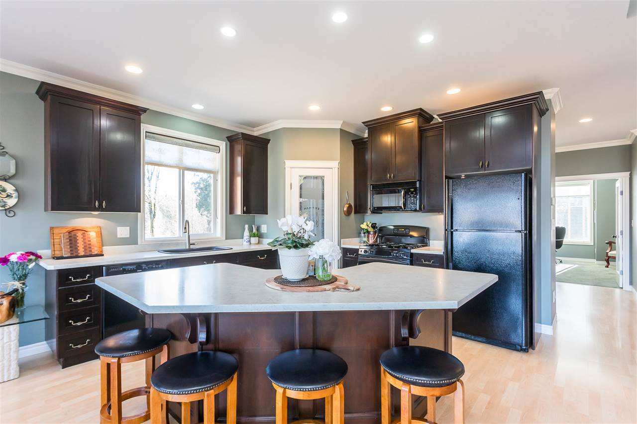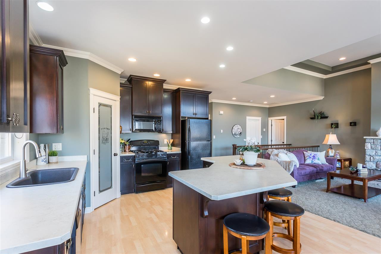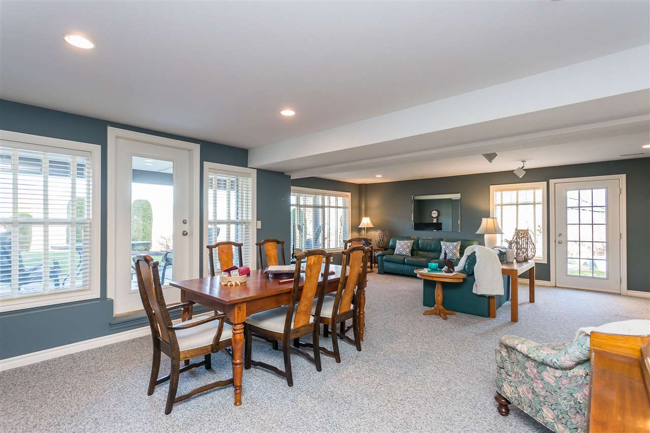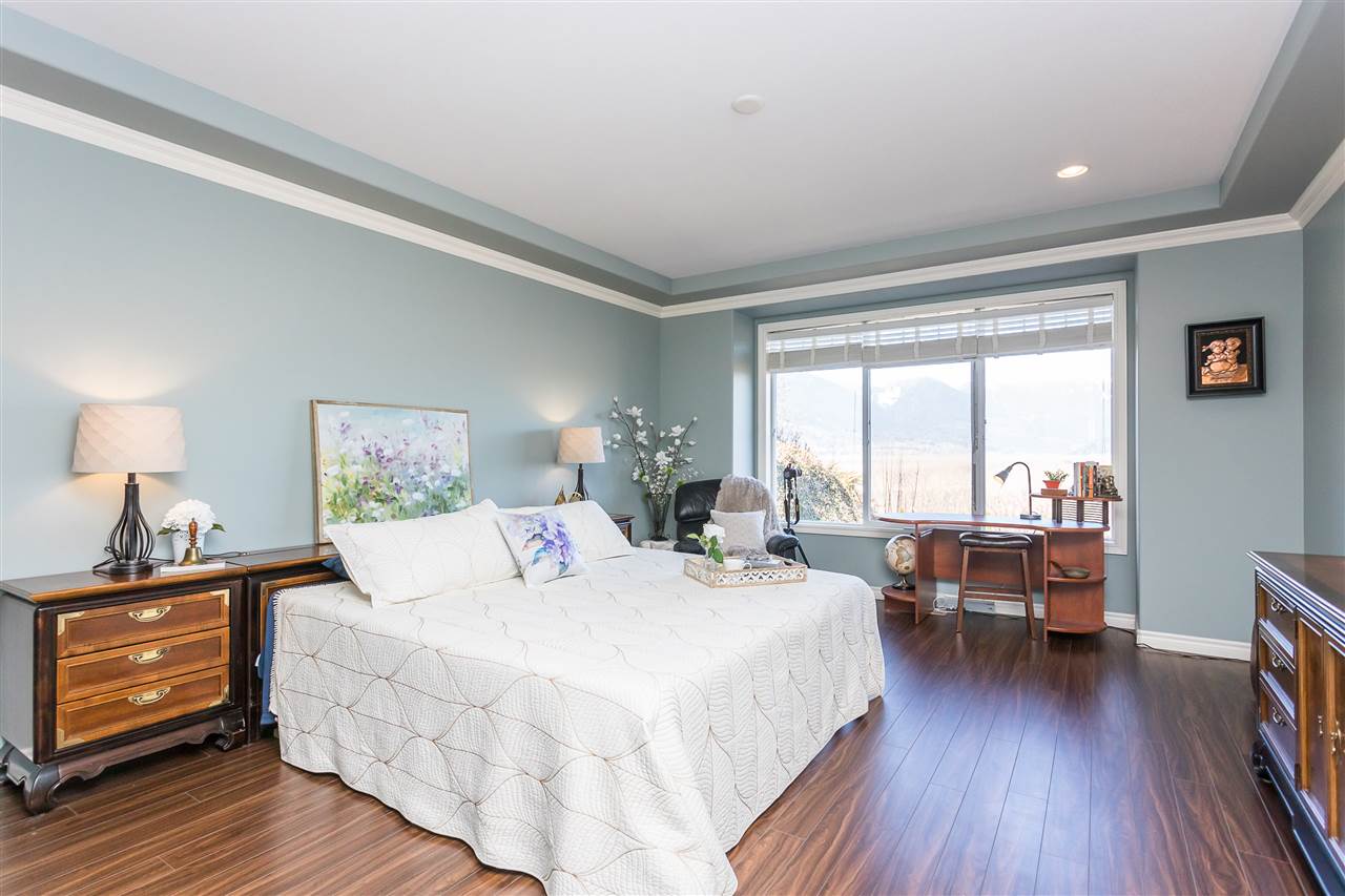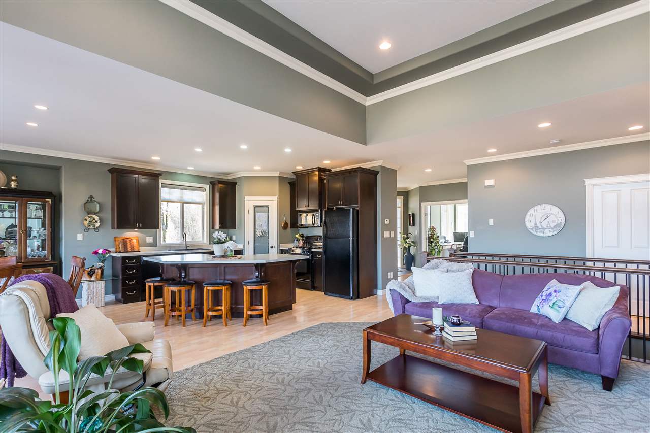 RIVER VIEW PROPERTY on a 1 ACRE LOT! Nestled down a private driveway on beautiful Chilliwack Mountain, this 3157 sq ft RANCHER W/ DAYLIGHT WALKOUT BASEMENT has been lovingly maintained & updated by the original owners. Grand living room w/ vaulted ceilings, gas fireplace, and floor to ceiling WINDOWS to take in the BREATHTAKING scenery. Open concept kitchen w/ maple cabinets, gas range, & oversized entertainment island. Large master bedroom on main w/ private ensuite & walk in closet. Basement w/ 3 guest bedrooms, full bathroom, family room, and a roughed in wet bar area- excellent space for a man cave, teen hangout, or potential INLAW SUITE! Immaculately kept grounds w/ privacy hedging, perennials, wisteria, & willow trees to enjoy. This is truly a gem- a unique oasis!