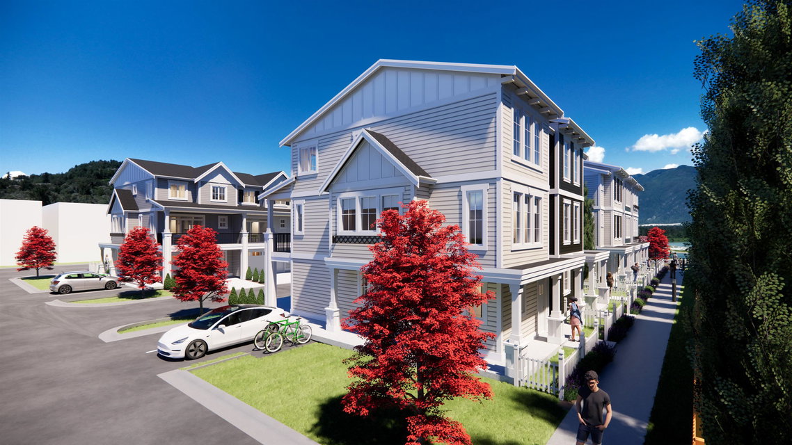 NOW RELEASED! This is your chance to live at SANDSTONE @ Webster Crossing- an exclusive 10 unit TH development blocks to the Vedder River, parks, UFV, Stitos School, & 8 mins to Cultus Lake! This 3 bedroom & den home is MODERN & BRIGHT w/ ample windows to capture the MTN VIEWS & a stunning kitchen w/ white shaker cabinets, feature island, quartz counters, & SS appliance package. Fabulous finishes incl. luxury VINYL PLANK flooring, LED lighting, elc. fireplace, forced air natural gas heating, & AC! DOUBLE CAR GARAGE, double wide driveway, den/office on entry level, & 3 bdrms up. Primary suite feat walk-in closet & ensuite w/ dual vanity + walk-in shower. Price + GST (PTT exemptions can apply-Great value!) Est completion Jan 2024. Call your agent to learn about this EXCITING OPPORTUNITY!