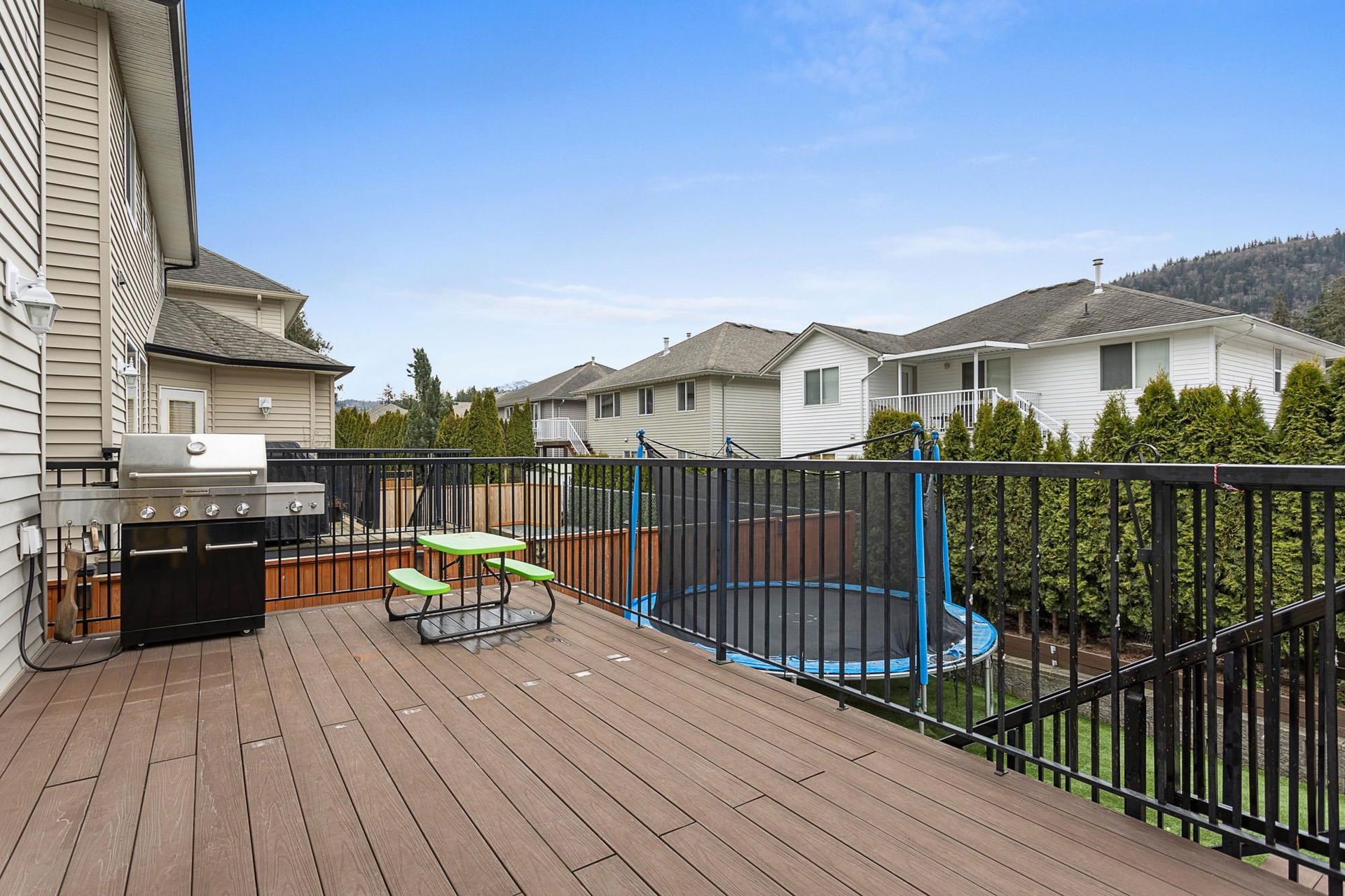 SARDIS FAMILY HOME only 2 blocks to the Vedder River w/ a RENTAL SUITE! Beautiful and very well maintained, this 6 bdrm & 4 bathroom home is THE place to raise your family. Excellent school catchments, steps to parks & recreation, 5 mins to shopping & 10 mins to Cultus Lake. Main floor w/ open concept kitchen featuring updated SS appliances, large eating bar, spacious living room w/ gas fireplace, hardwood flooring, & nice sized den/office. Access to the MANICURED FENCED backyard w/ expanded patio & gorgeous southern mtn views. Upper floor features 3 bdrms (1 that can be converted back into 2 rooms), master w/ large ensuite w/ soaker tub. FINISHED BSMT w/ 1 (or 2) bdrm soundproofed SUITE w/ sep access & laundry. So many opportunities with this fantastic home in a quiet bareland strata!