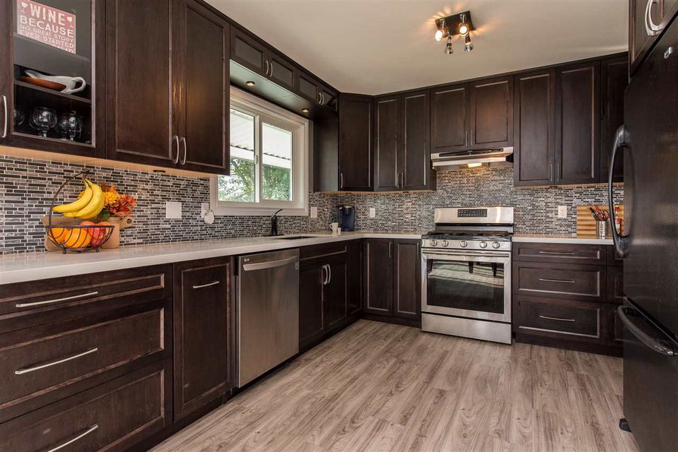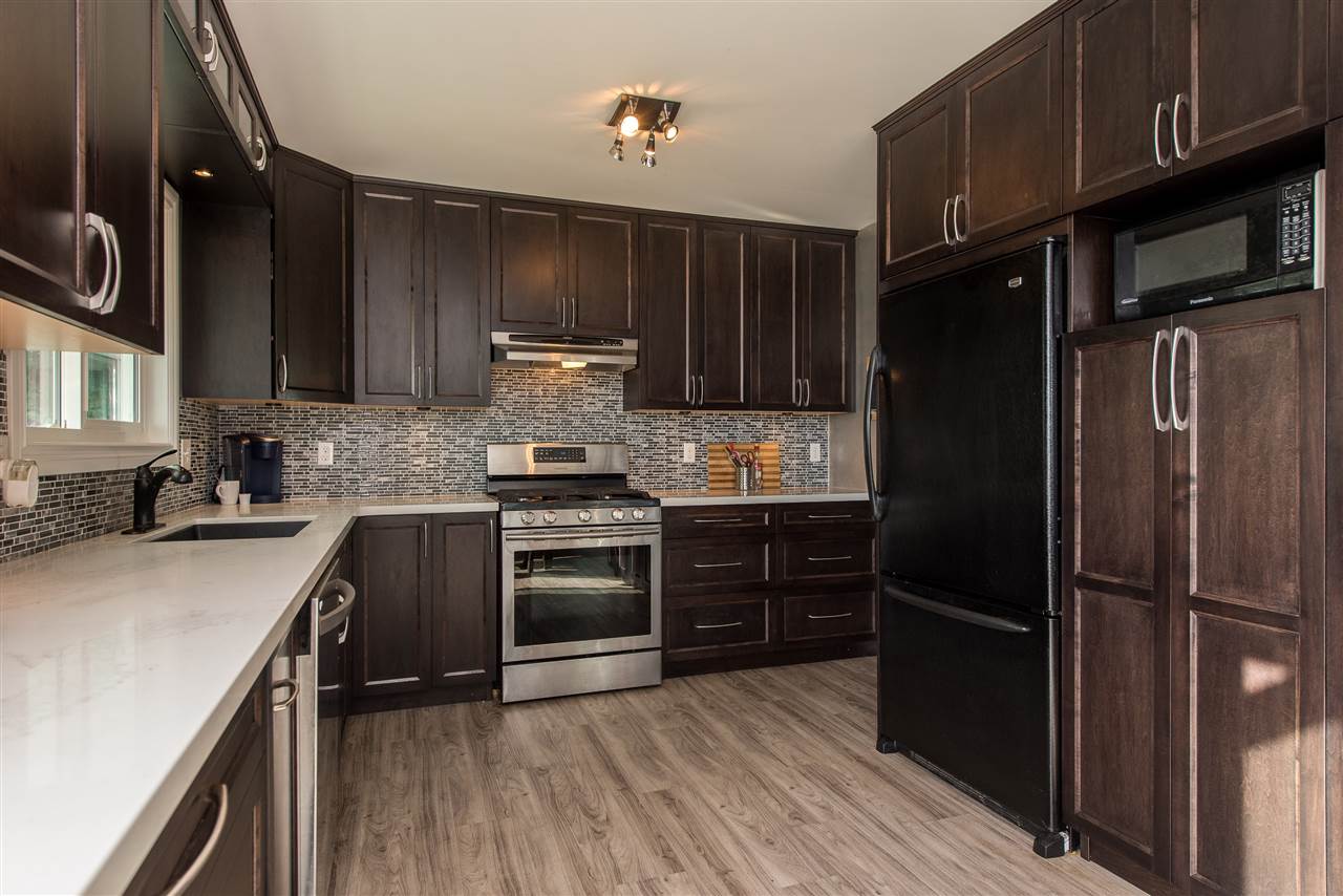 Amazing 5 BEDROOM FAMILY HOME on a PRIVATE 9583 sq ft lot w/ epic MOUNTAIN VIEWS! Main floor w/ 3 bdrms, living room w/ certified woodstove, BRIGHT solarium (great office/playroom), dinign room w/ built in custom sideboard, & a FULLY RENOVATED KITCHEN! SS Appliances, shaker cabinets, undermount lights, b.i. pantry w/ pullouts, & QUARTZ counters. Master w/ cheater ensuite & patio acccess. Fully finished bsmt w/ large family room, 2 bedrooms, bathroom, & a spacious laundry/mud room w/ garage access. Single car garage w/ room for 3 in the main driveway PLUS trailer/boat parking. HUGE FENCED BACKYARD w/ large upper sundeck & covered deck below. Mature trees for added privacy & endless views. Enoy cul-de-sac living on this private street and walk to all levels of schools, shopping, & parks.
