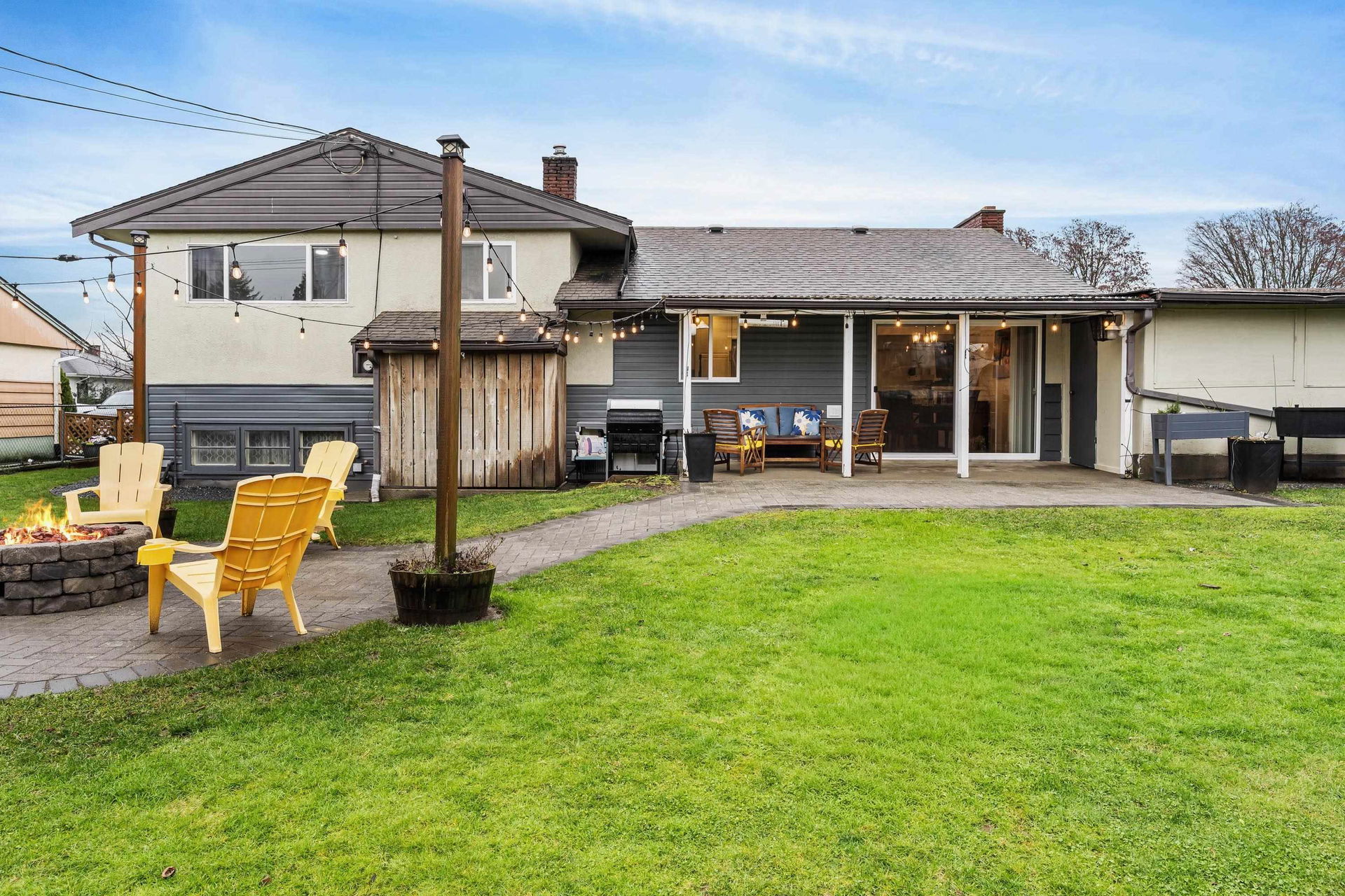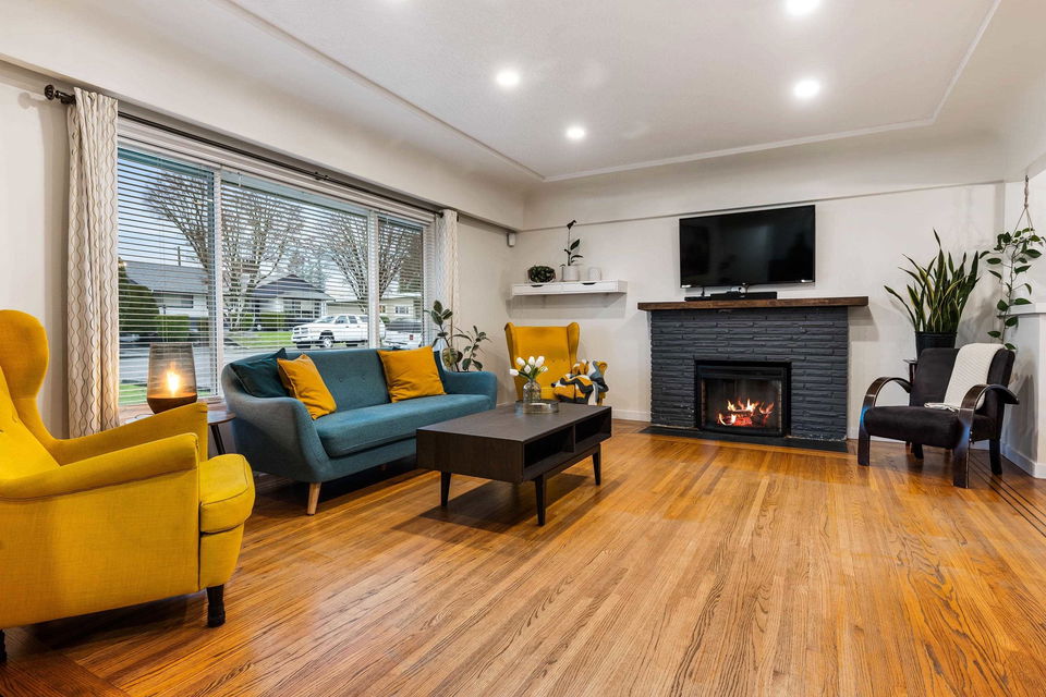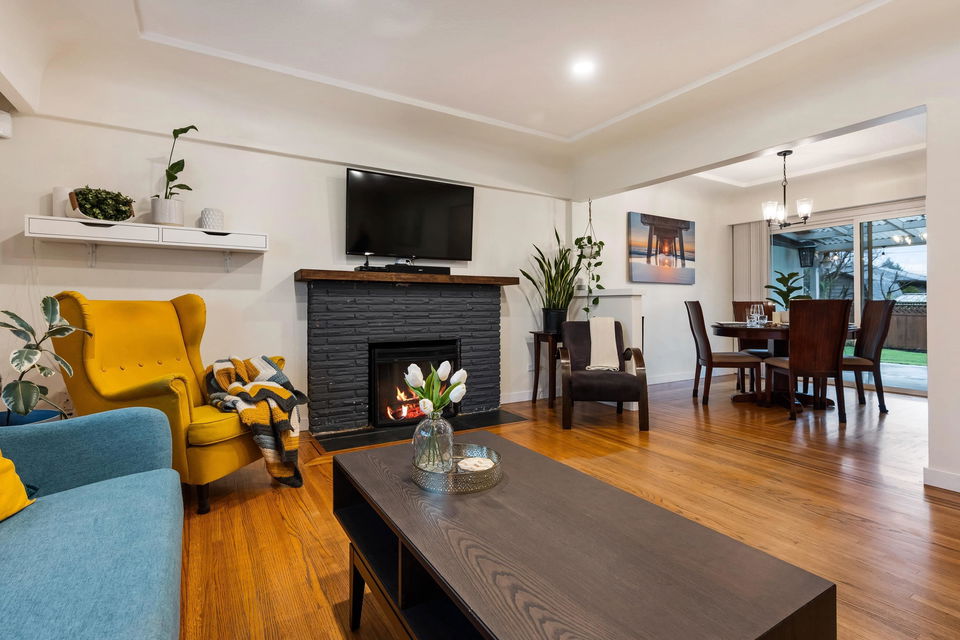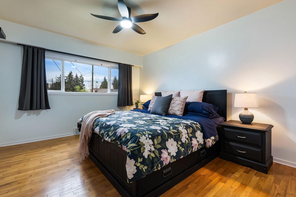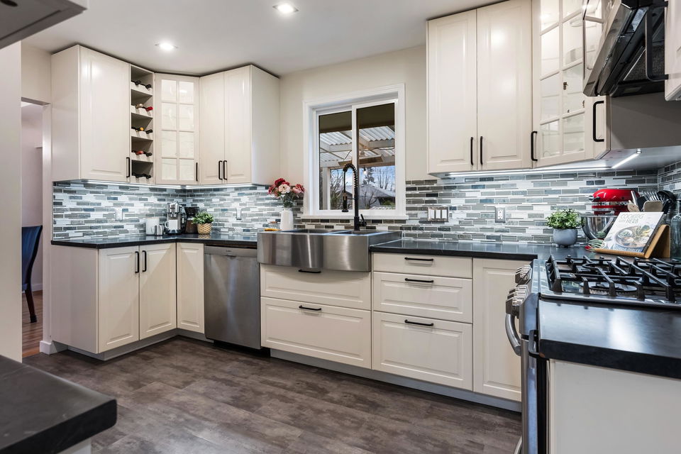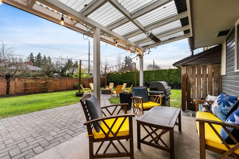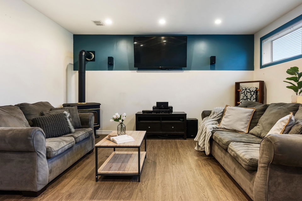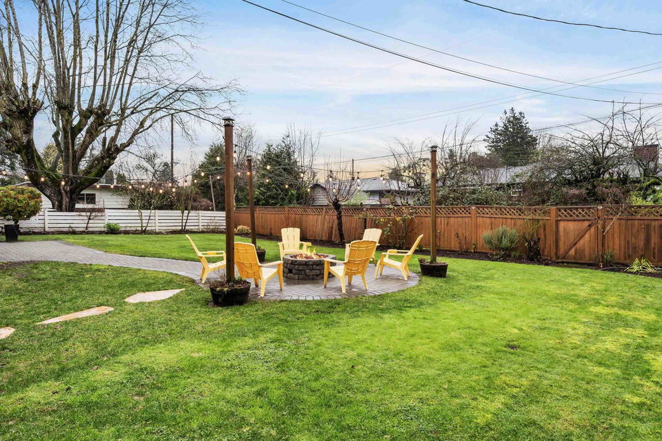 TURN KEY FAMILY HOME in a walkable friendly location near CSS and Kinsmen Park! This renovated 3 bed, 1 bath, plus rec room home has a SPECTACULAR family layout with ample living spaces for everyone to have SPACE. Level entry floor with updated kitchen w/ white cabinets, custom pullouts, SS appliances, SS afrm sink, glass tile backsplash- all looking out over your MANICURED FENCED BACKYARD complete with built in gas firepit. Easy access off the dining area, this is a convenient layout for those with kids and pets! 2022 furnace, 2016 AC, and 2022 Hot Water on Demand. 71′ frontage with 2 DRIVEWAYS for added parking PLUS lane access for added future possibilities for shop/carriage suite. Modern renovations with the 50’s charm of coved ceilings and inlay hardwood floors- the best!