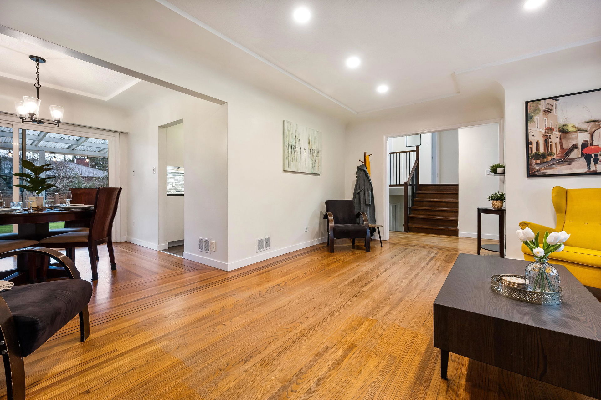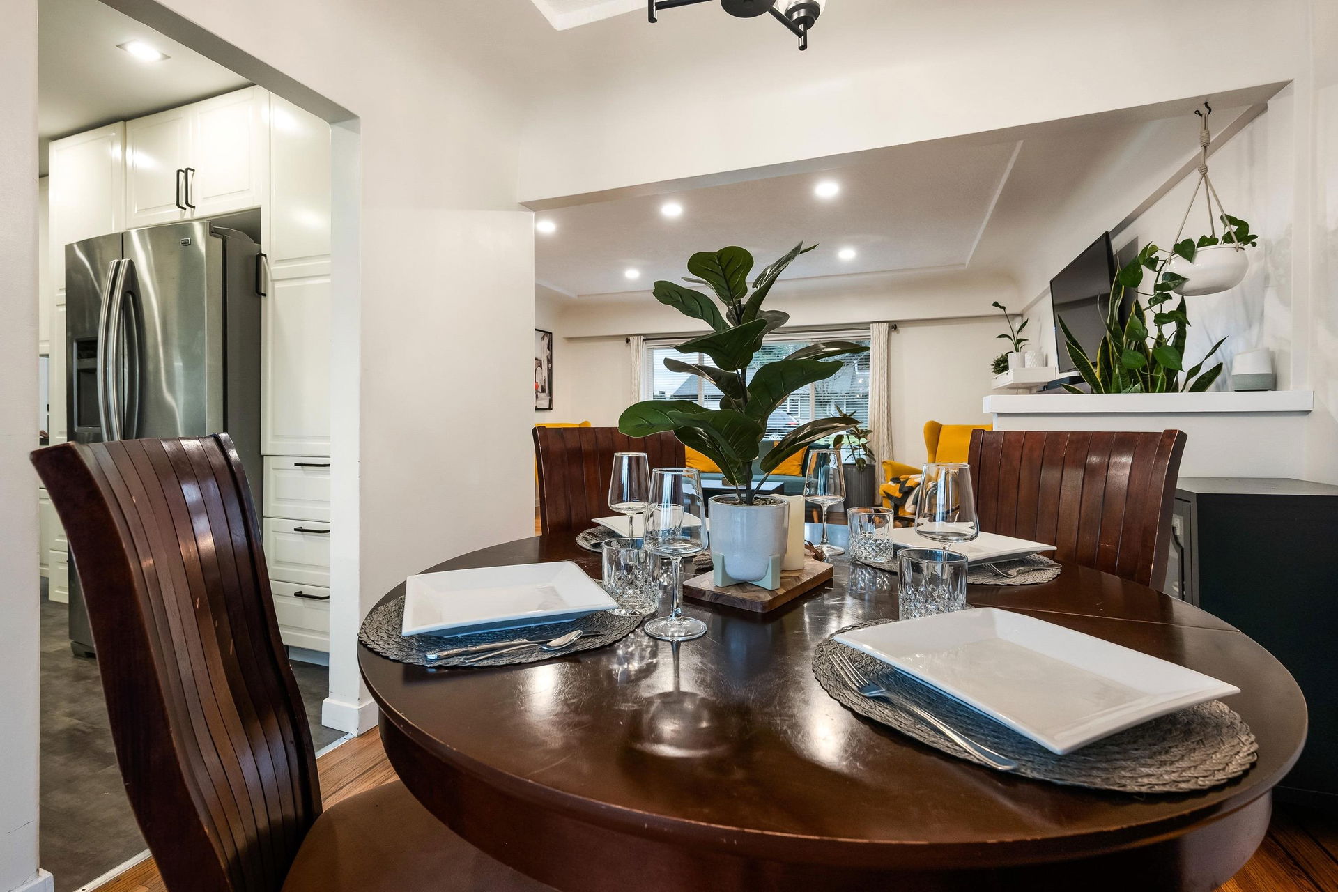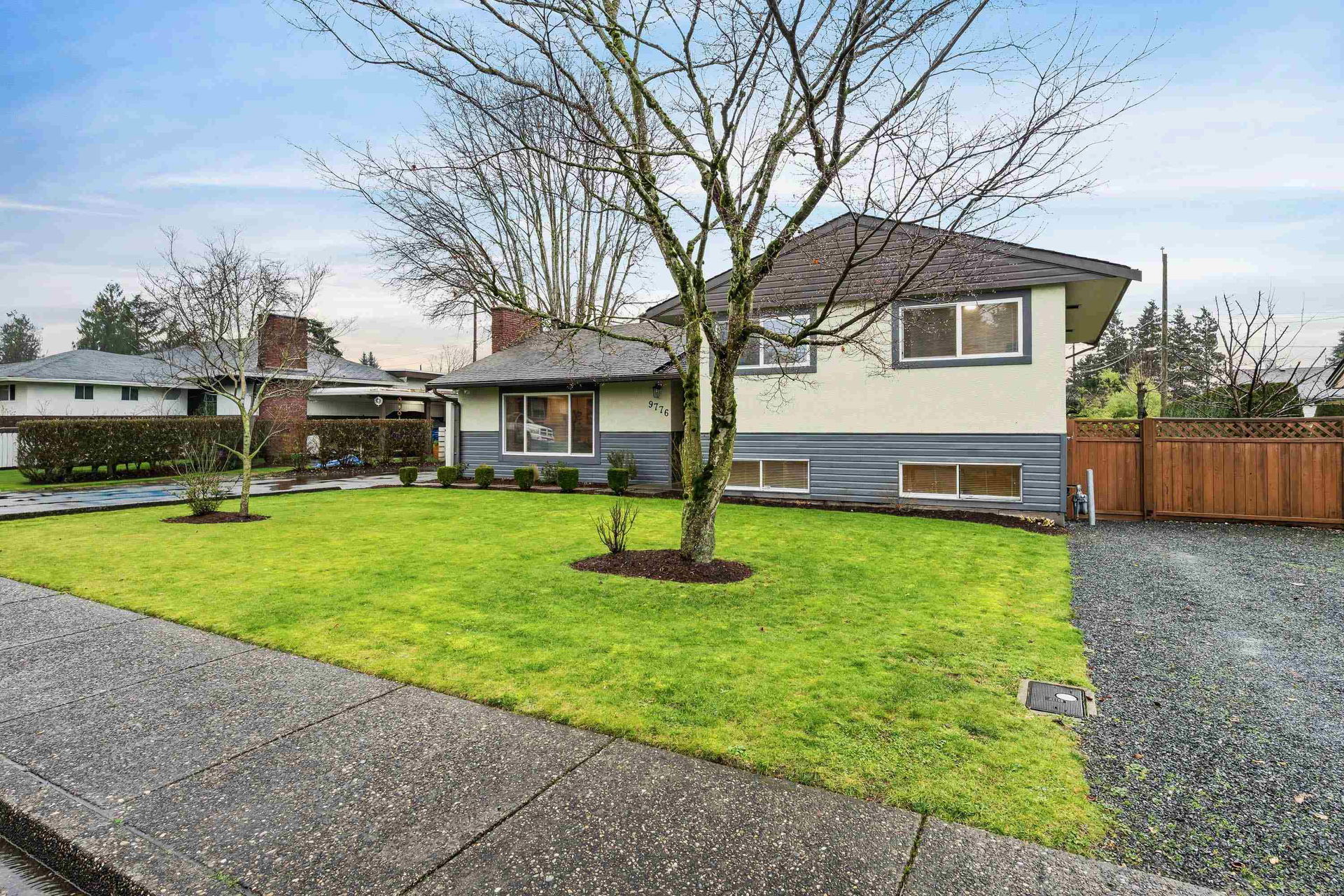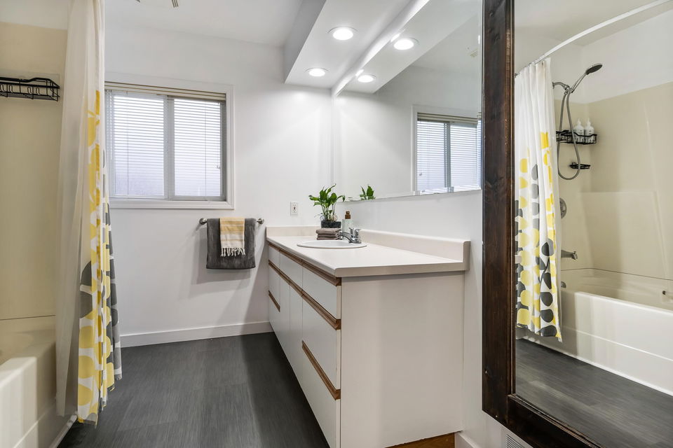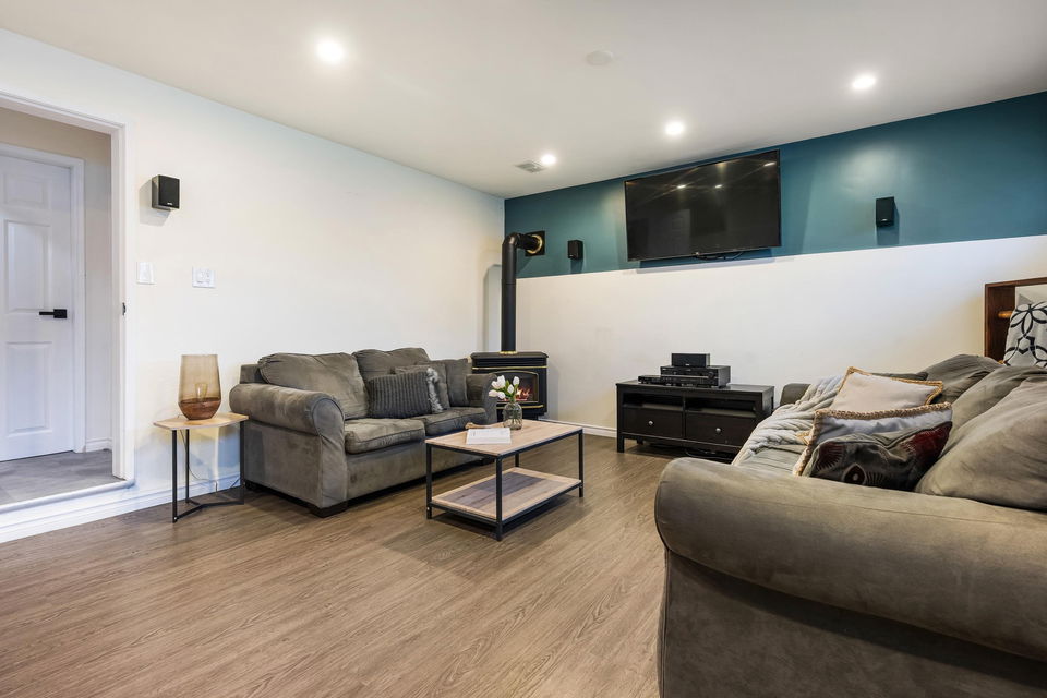 TURN KEY FAMILY HOME in a walkable friendly location near CSS and Kinsmen Park! This renovated 3 bed, 1 bath, plus rec room home has a SPECTACULAR family layout with ample living spaces for everyone to have SPACE. Level entry floor with updated kitchen w/ white cabinets, custom pullouts, SS appliances, SS afrm sink, glass tile backsplash- all looking out over your MANICURED FENCED BACKYARD complete with built in gas firepit. Easy access off the dining area, this is a convenient layout for those with kids and pets! 2022 furnace, 2016 AC, and 2022 Hot Water on Demand. 71′ frontage with 2 DRIVEWAYS for added parking PLUS lane access for added future possibilities for shop/carriage suite. Modern renovations with the 50’s charm of coved ceilings and inlay hardwood floors- the best!